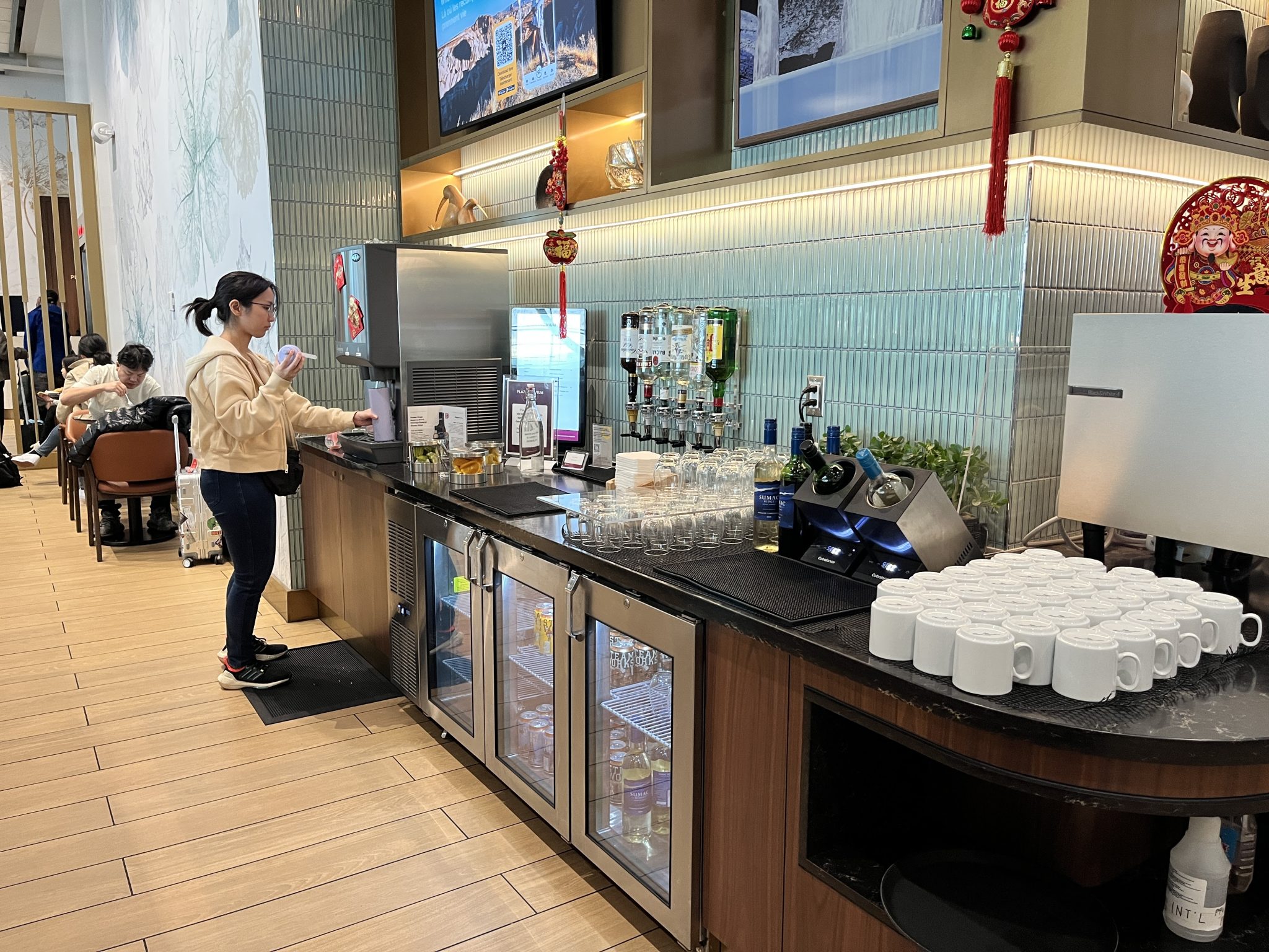 Again, due to my status, the Sister and I head to another lounge in the International departures terminal: The Cathay Pacific Lounge. This is one of the few lounges in Vancouver I had yet to check off my list. Mainly due to it being open mainly to service Cathay Pacific flights. However, because our Japan Airlines flight takes off at around the same time as a Cathay Pacific flight, its fortunately open this time! The Sister and I head in and find that it’s a nice quiet respite from the other busier lounges in the Airport.