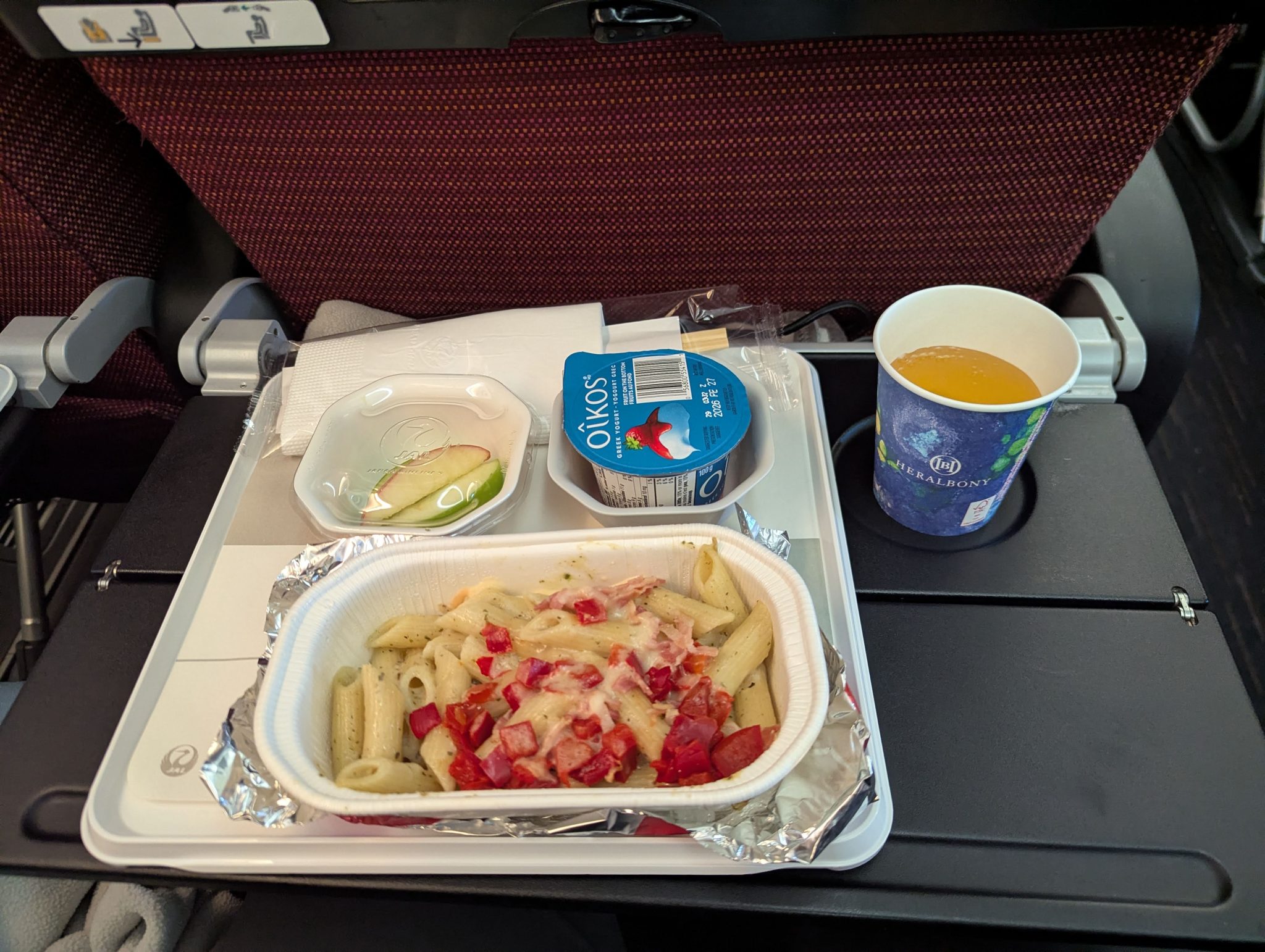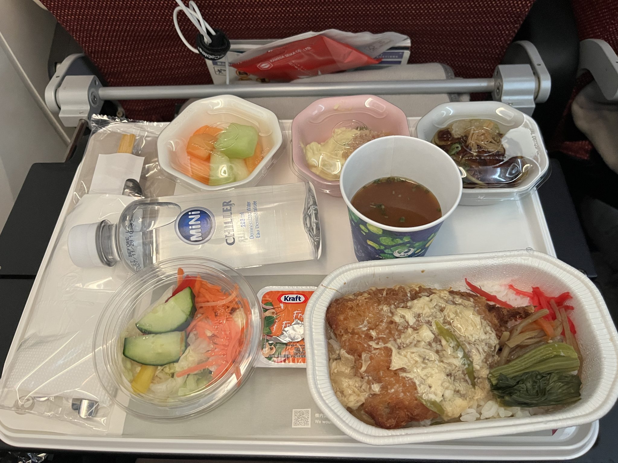 One of the reasons our family decide to fly Japan airlines for our flights to Asia is their seat configuration. With most carriers on this plane the seat configuration would be a 3-4-3 seating arrangement in economy. However, with JAL they have a nice 2-4-2 configuration which leads to a much wider seat and a bit more comfort onboard! We settle into our seats for the 10 hour flight across the Ocean to Asia! Along with the more comfortable seat setup, JAL also serves a very tasty meal upon take off and also a hot pasta dish right before landing.