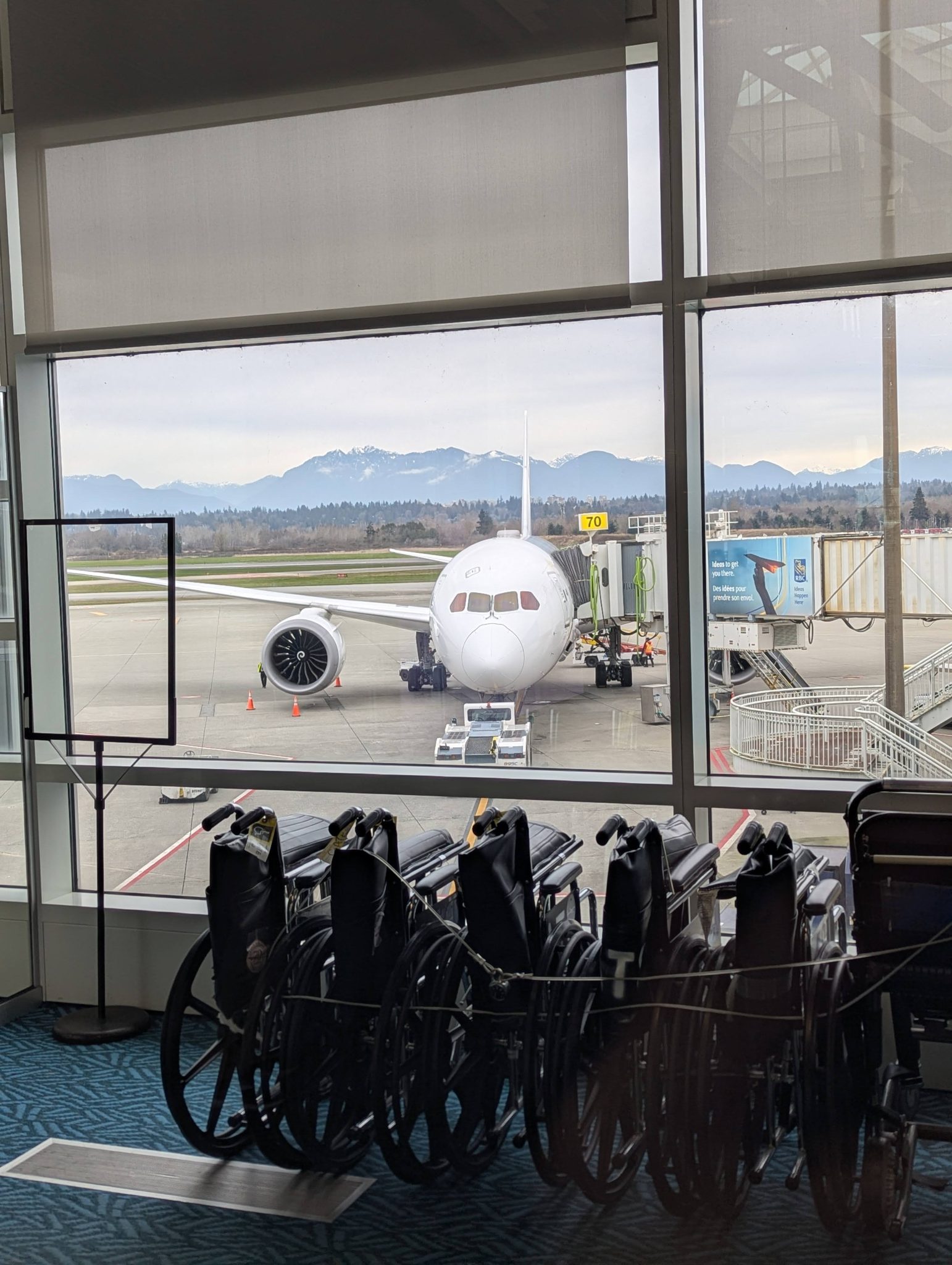 We head to our gate to catch this lovely Boeing 787 ready to take us to Asia! We wait for our boarding group to be called and make our way onboard. While the boarding process is pretty straight forward, I do want to note the YVR ground crew that took the time to wave us on our trip. I’ve really mainly seen this at Asian airports so it’s nice to see from my home airport!