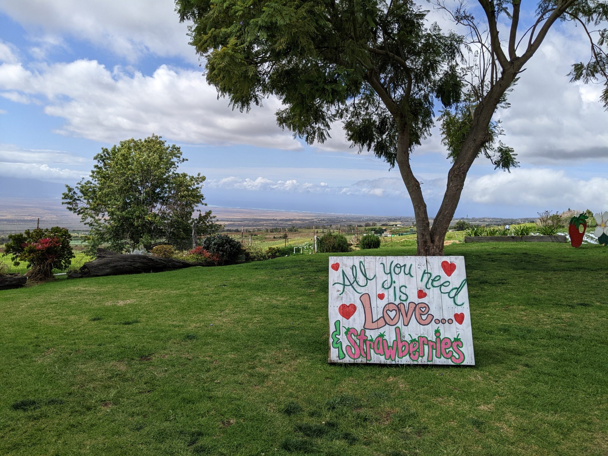 After walking around target for a little, we hop back into the car and start driving up towards the volcano. After a little bit of driving we stop off at Kula Country Farms. It’s like a small road side fruit stand with some amazing views of Maui.