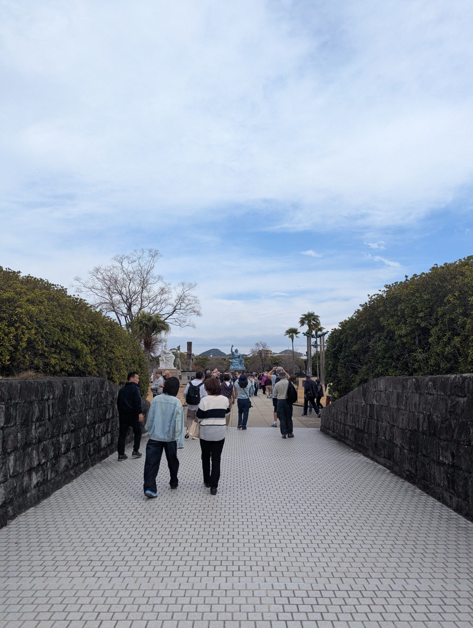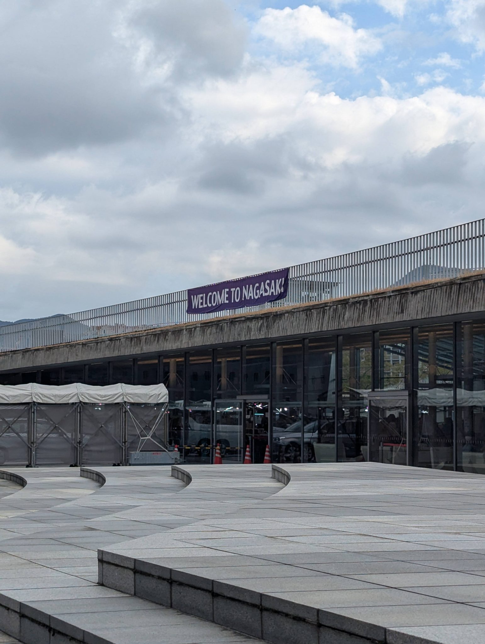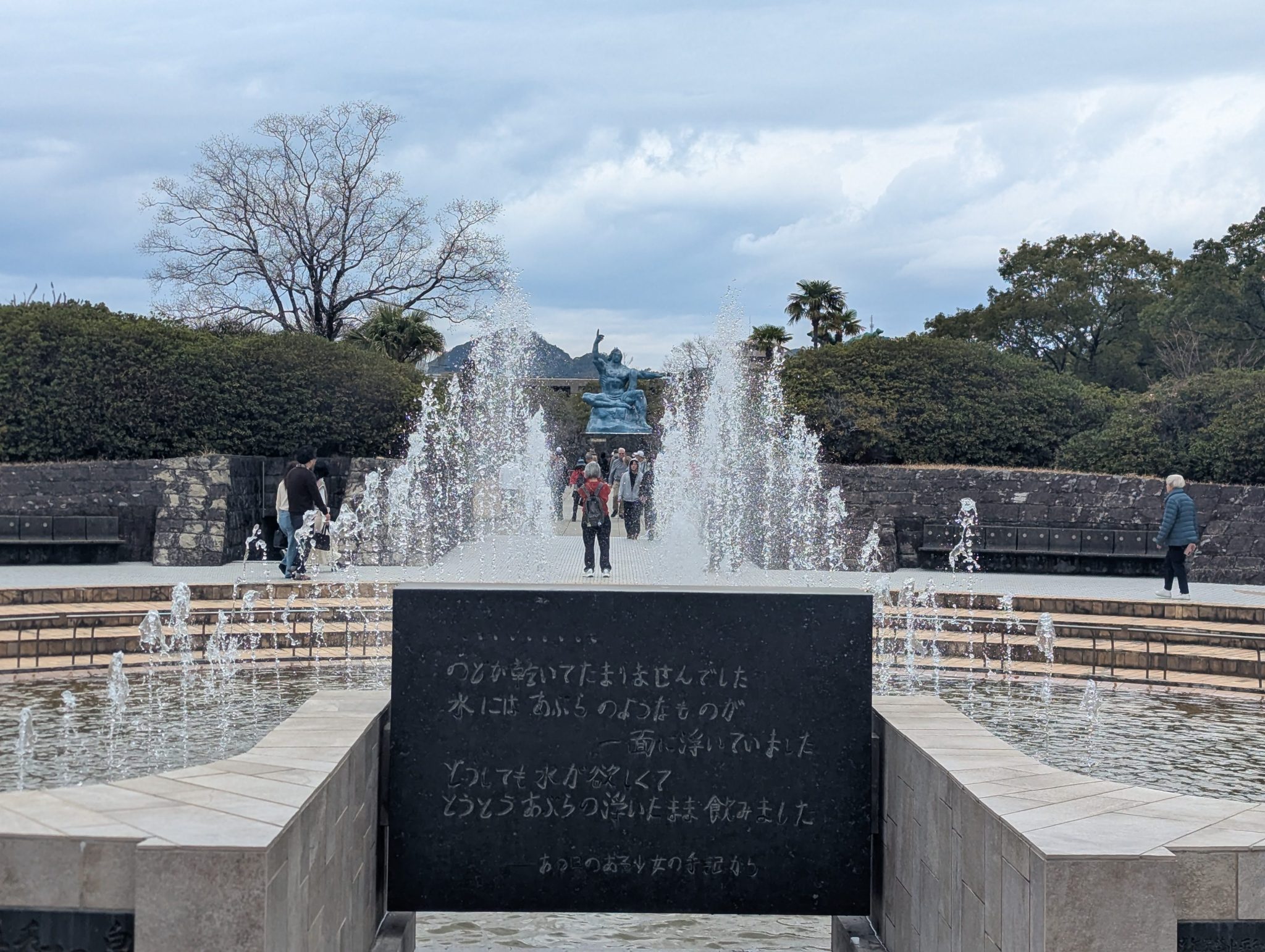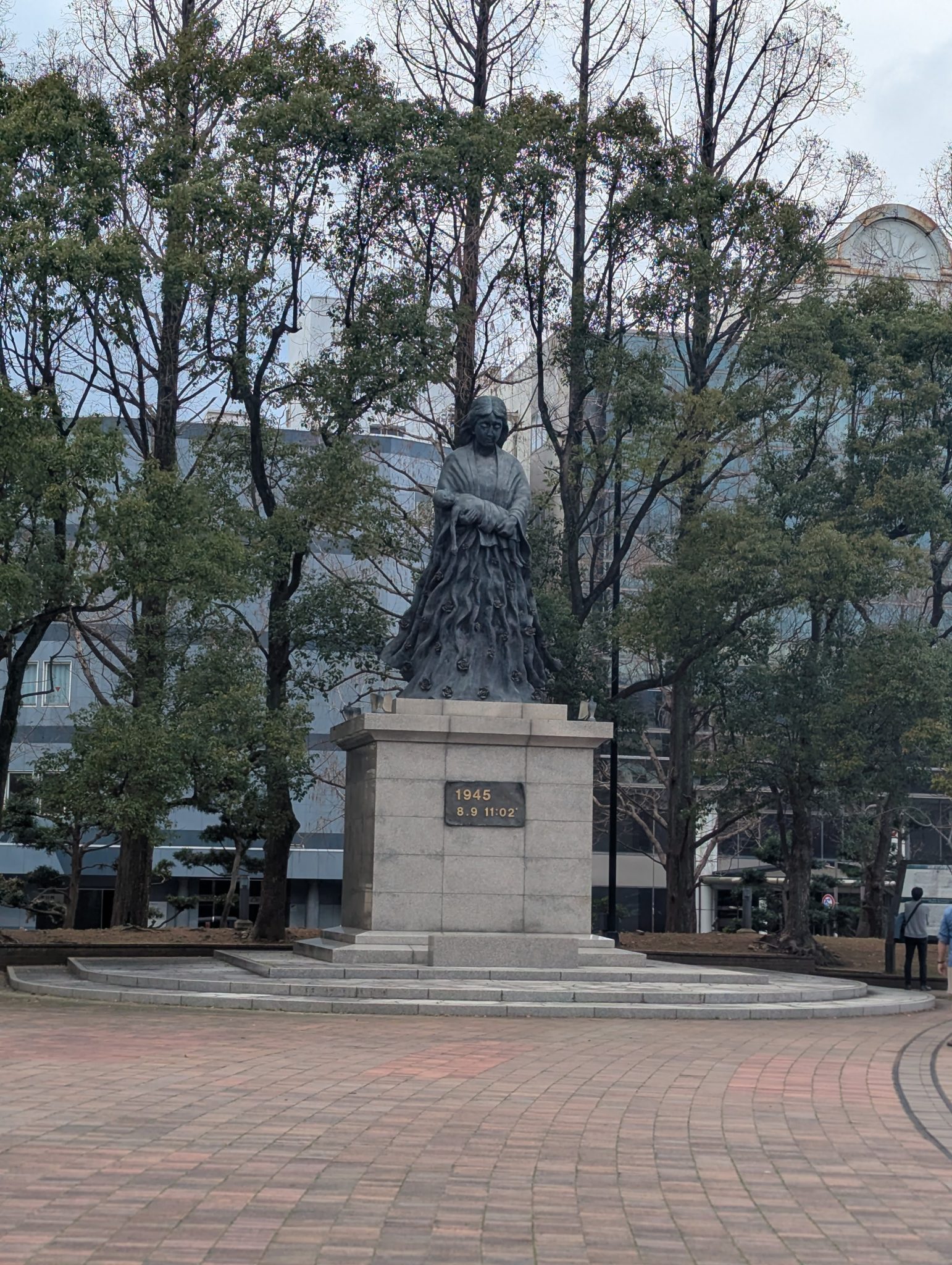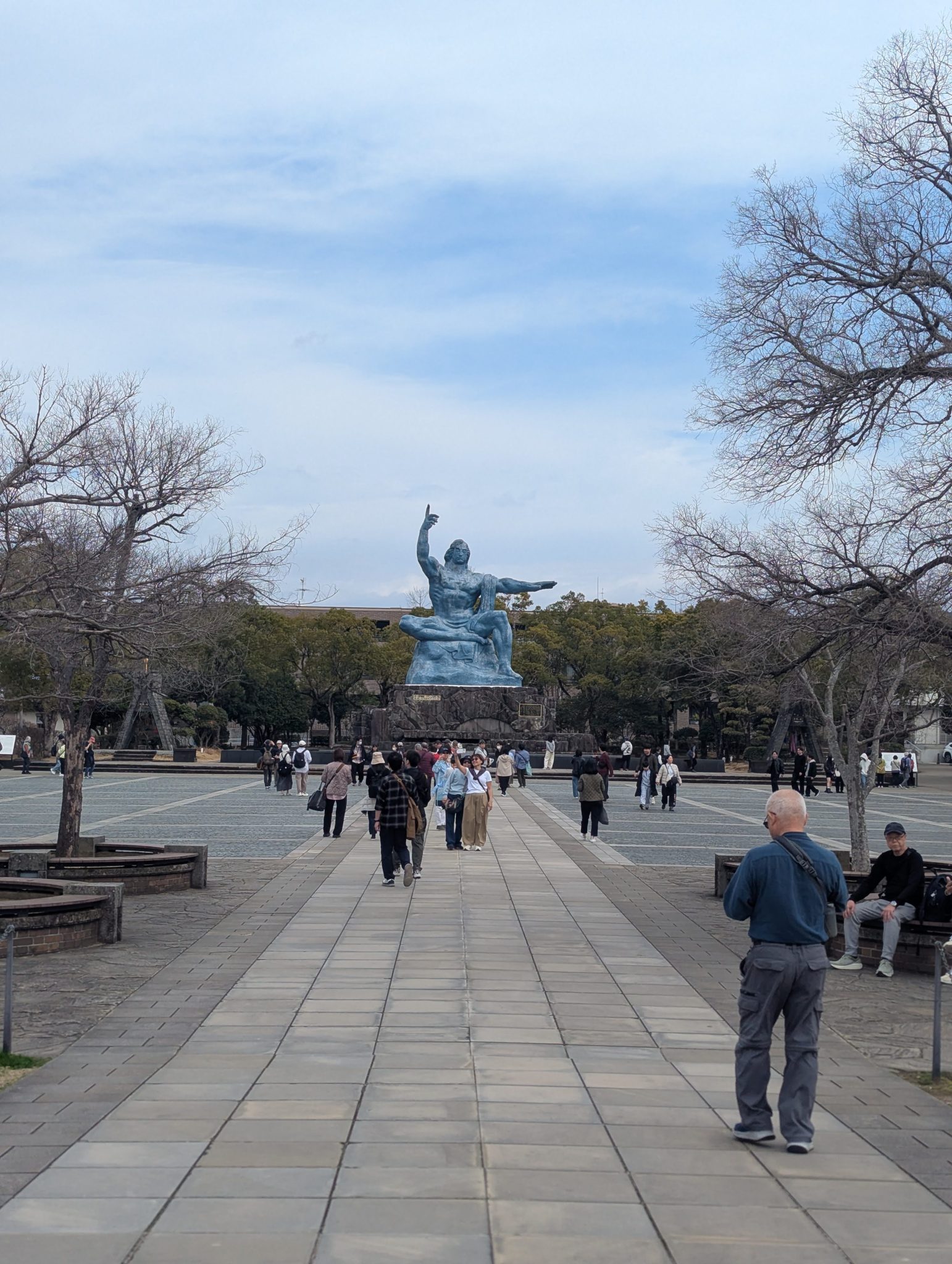 Today our cruise takes us to Nagasaki. It’s a place none of us have to before, so we are all looking forward to the visit. After our now-routine breakfast on board we disembark the boat and make our way through the pretty port of Nagasaki. As Nagasaki is the other nuclear bombing site, our family is curious to see how the event is memorialized here. We hop onboard one of the city trams and make our way to the Peace Park.