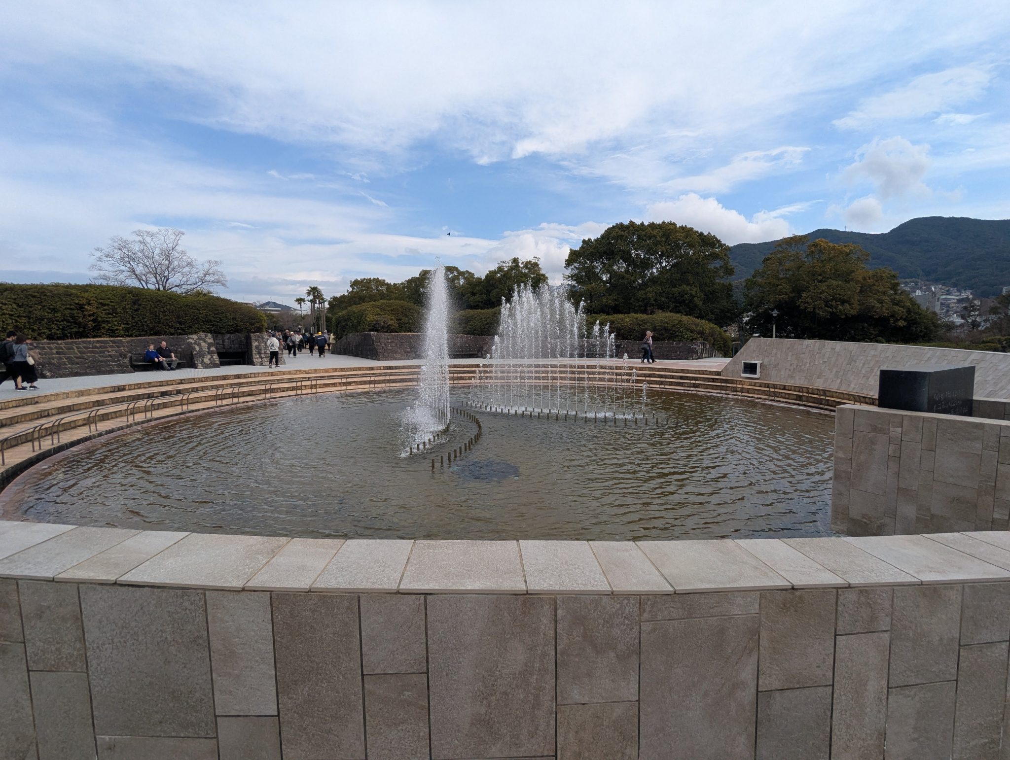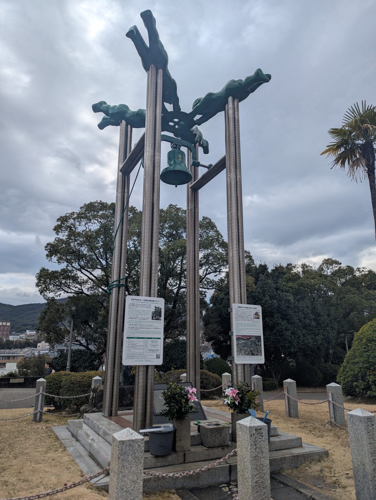 The Nagasaki Peace Park sits atop a hill and there is a series of escalators that you need to reach the top. Once at the top you arrive at an area called the Zone of Wishes. It houses a number of monuments from around the world with a theme of a wish for peace. The monuments include the Fountain of Peace, the Bells of Nagasaki and the Site of the Nagasaki Prison Urakami Branch Office.