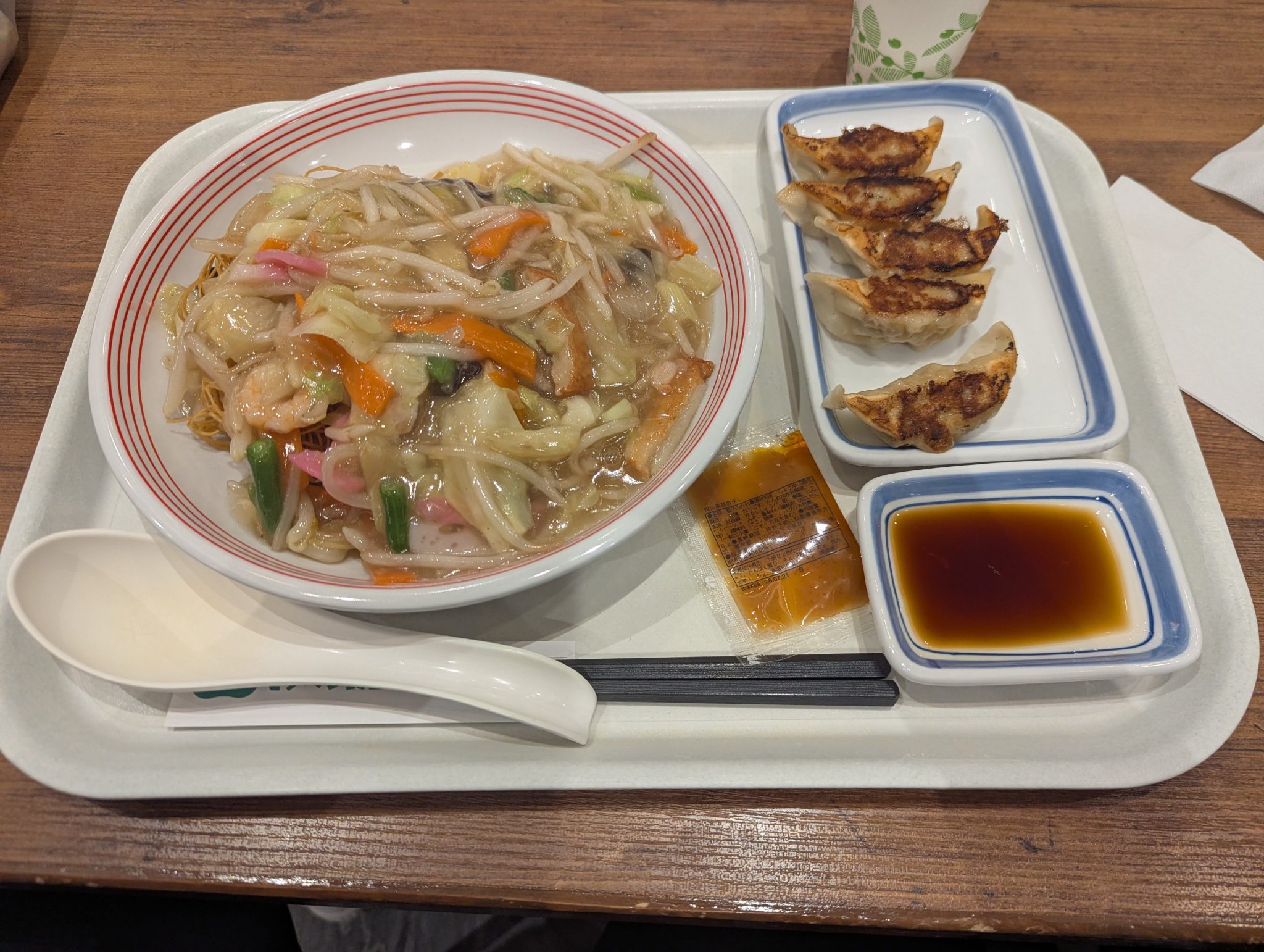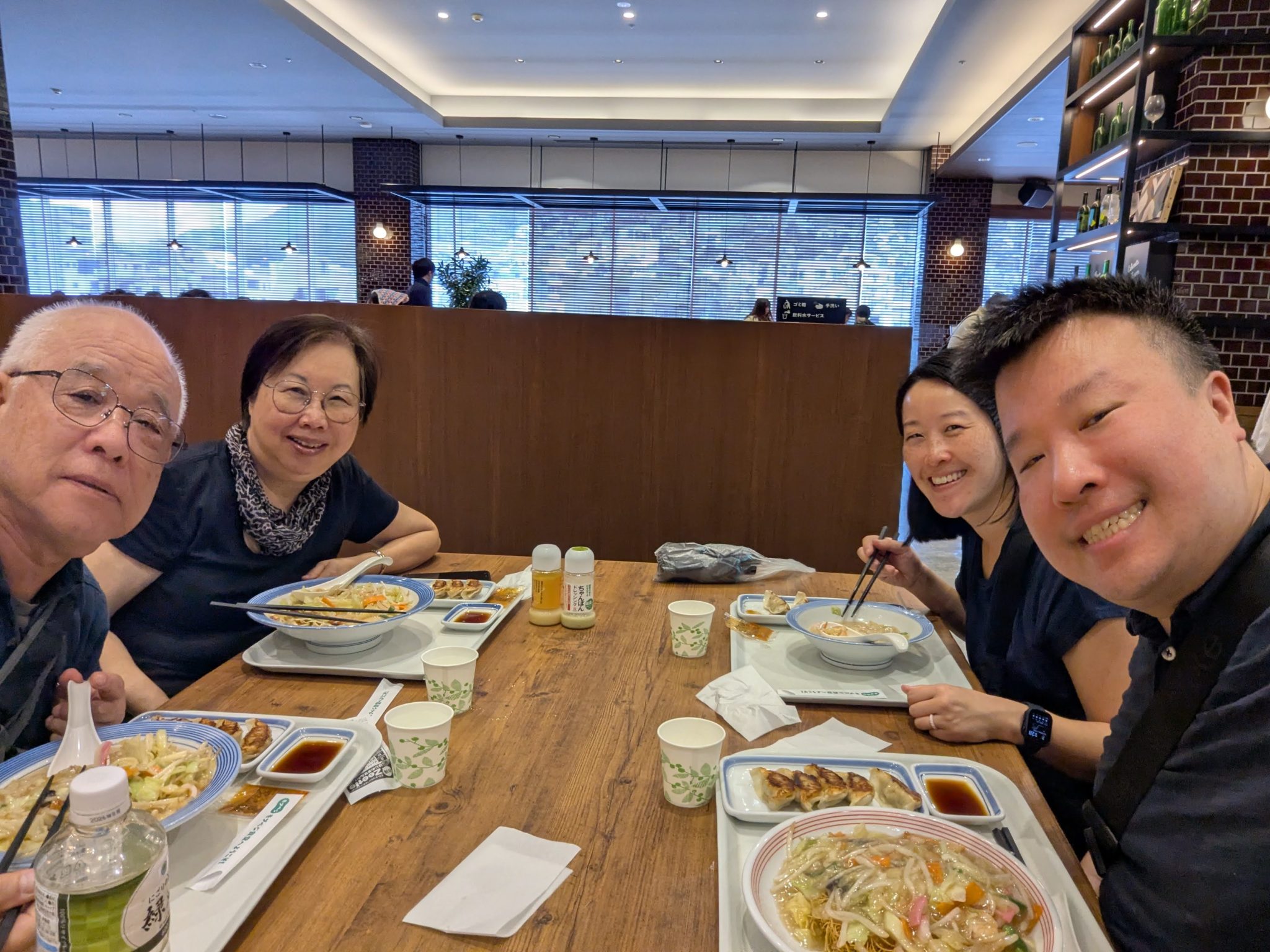 After visiting the atomic bomb sites, we decide to get some lunch. One of the signature dishes of Nagasaki is Nagasaki Champon. Champon is a version of ramen where the pork and vegetables are stir fried, then soup is added and finally the noodles are added. It’s unique as everything is cooked in a single pan/pot. A popular chain that serves this is Ringer Hut and we visit a nearby mall to try it. We all order Champon along with gyozas. Ringer hut also has a non-soup version and for variety I decide to try it. I really like Champon in both forms! It feels like a lovely comfort food and I would very much like to have this again. Hopefully I can find something like this at home in the near future!