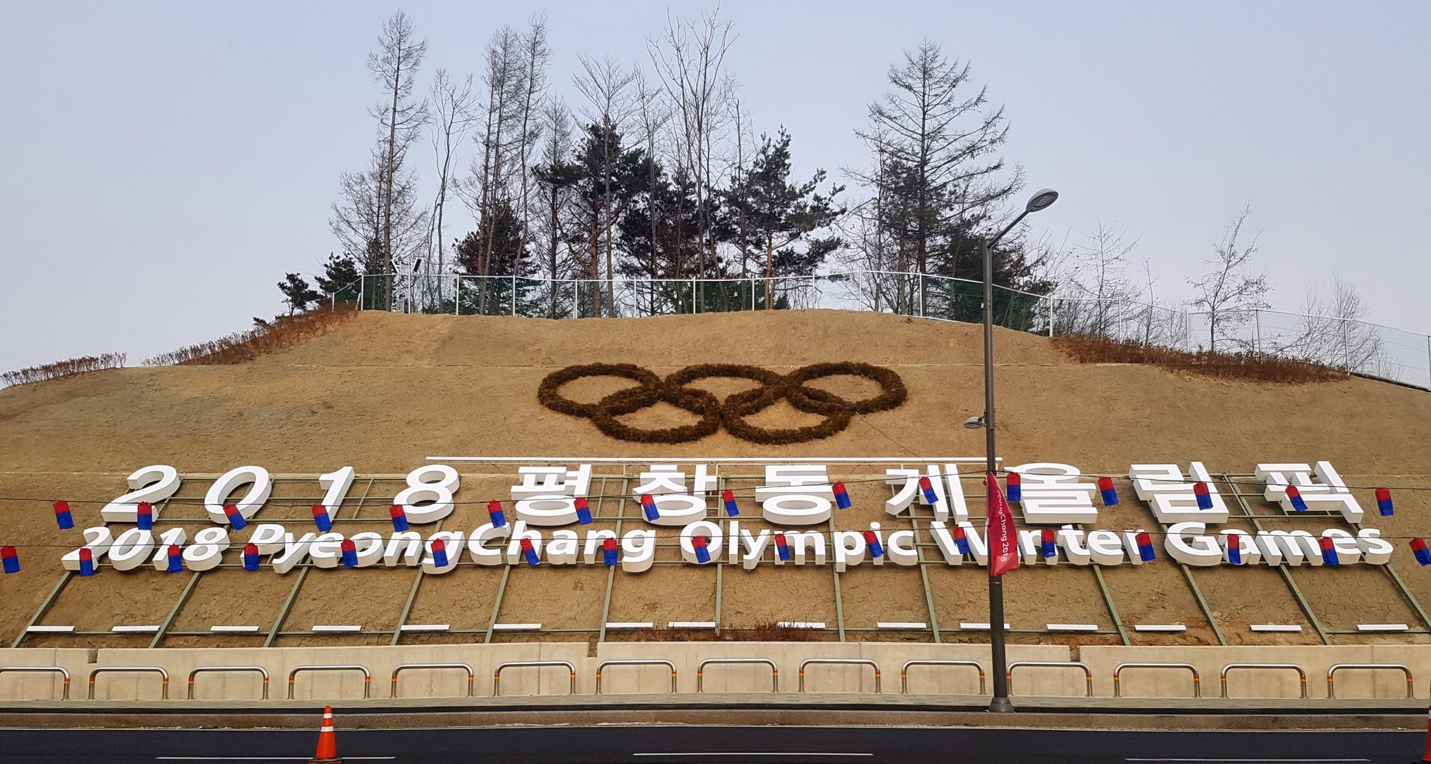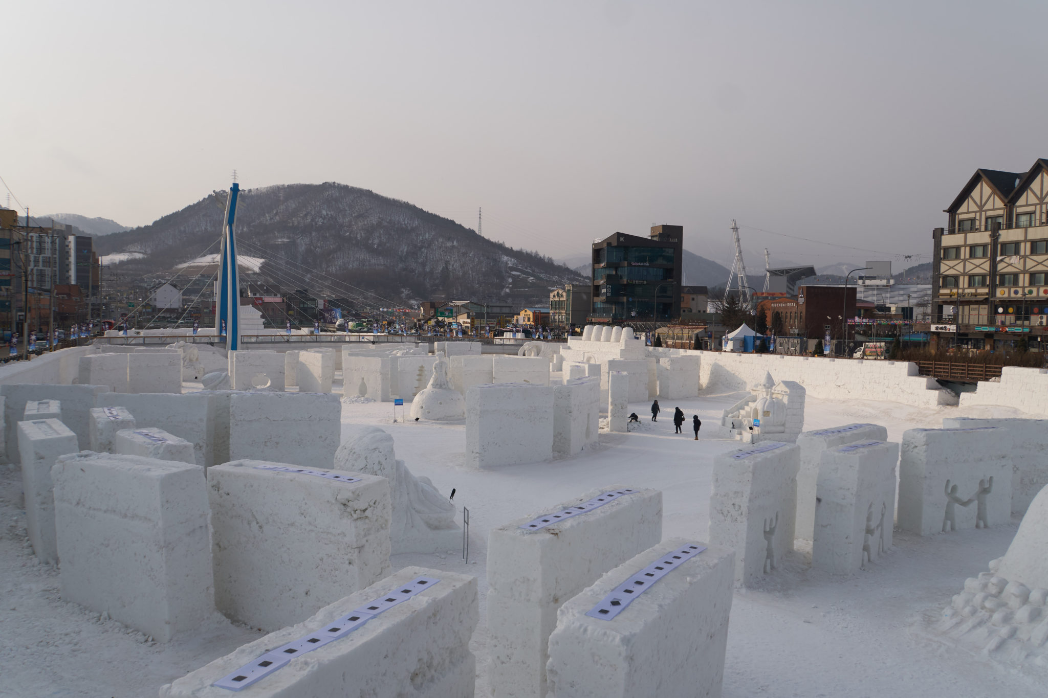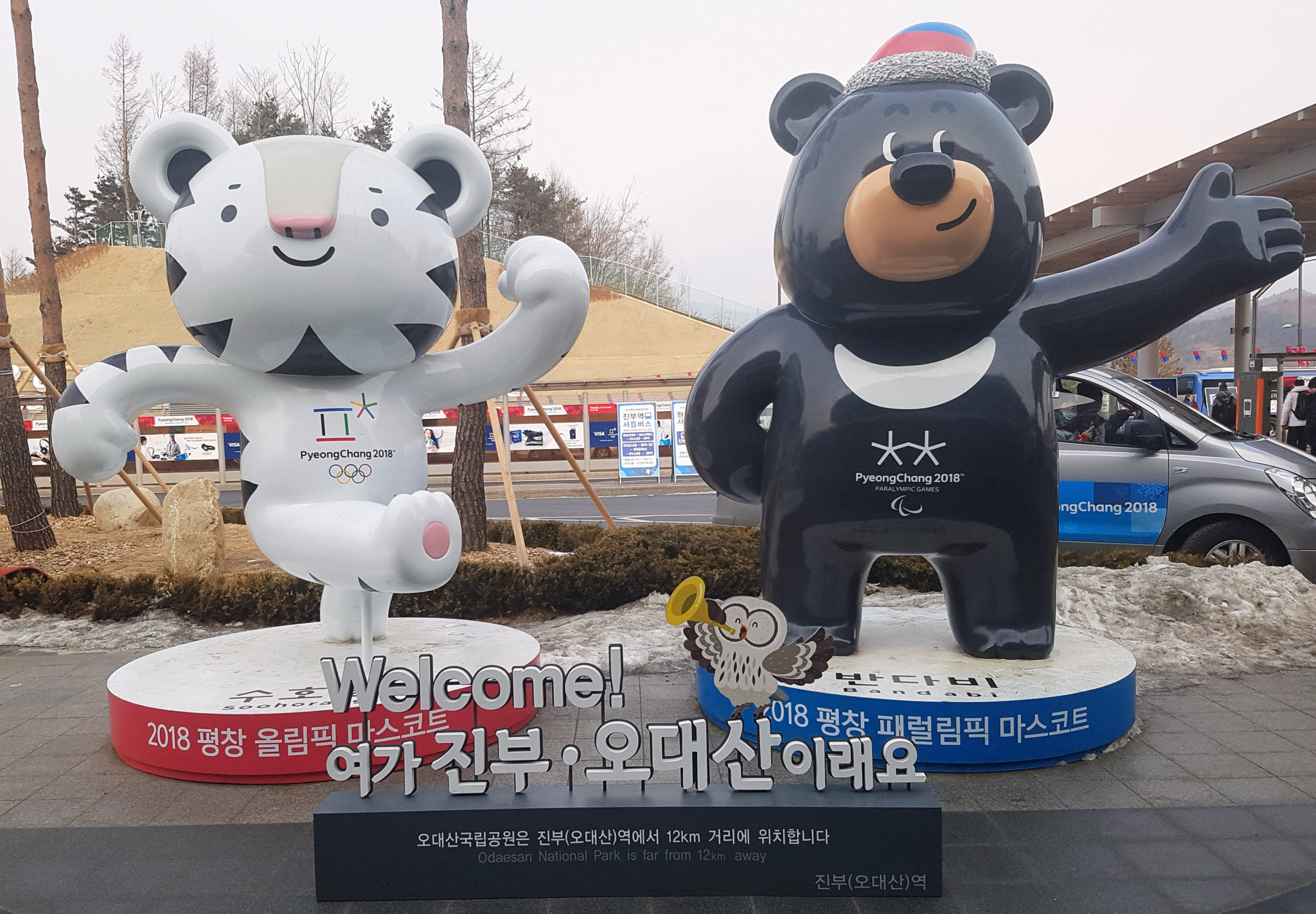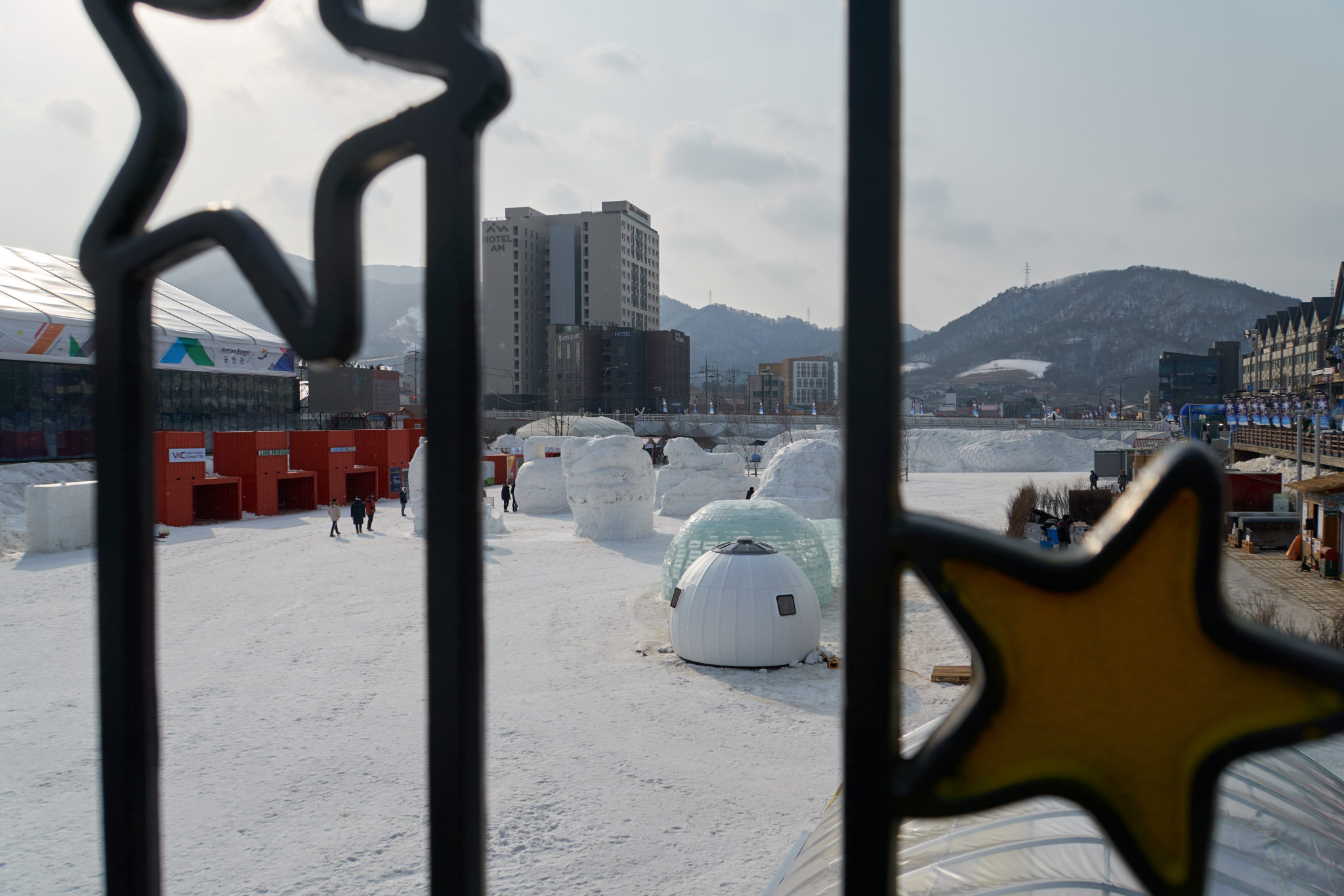 From Gangneung, we hopped on a KTX train to Jinbu which took 20 minutes. We then hopped aboard a free Olympic shuttle for another 20 minute ride to Pyeongchang. Even as we were driving in, you could tell that the entire town had been caught up by the Olympics.