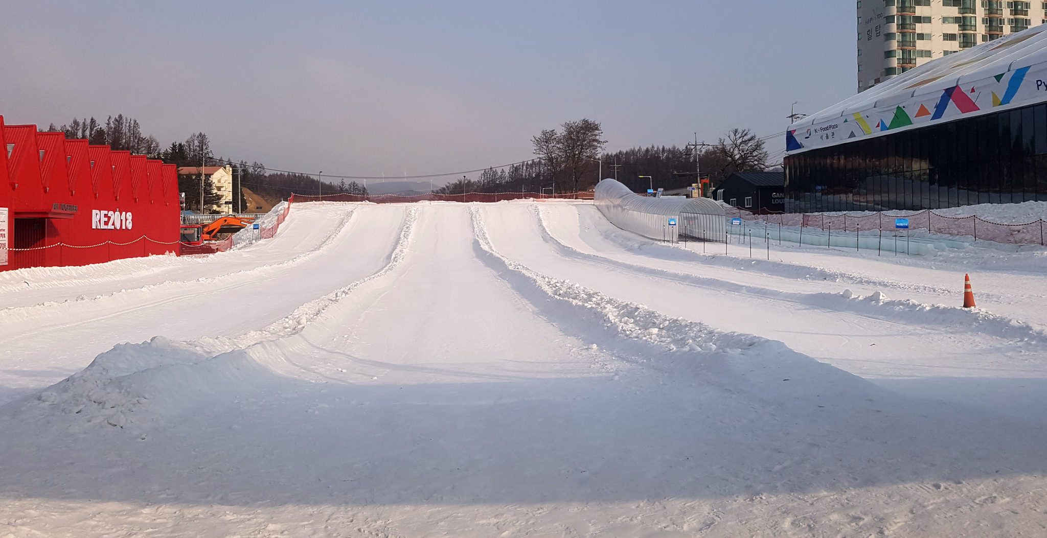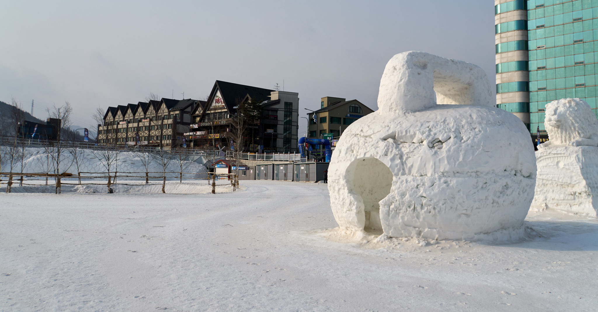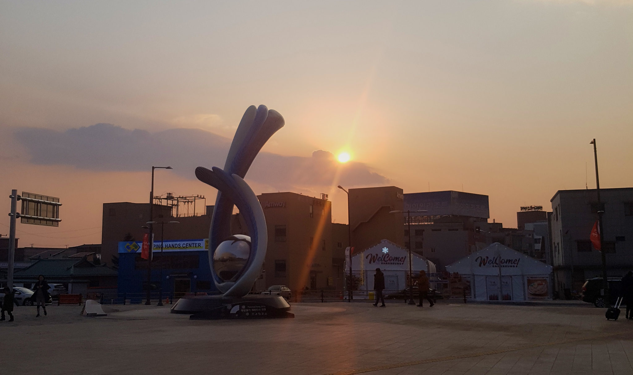 From Gangneung, we hopped on a KTX train to Jinbu which took 20 minutes. We then hopped aboard a free Olympic shuttle for another 20 minute ride to Pyeongchang. Even as we were driving in, you could tell that the entire town had been caught up by the Olympics.