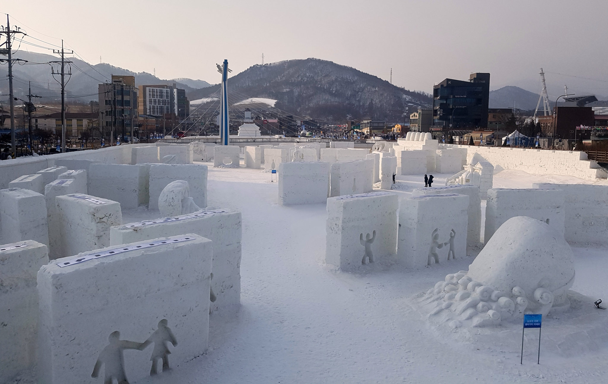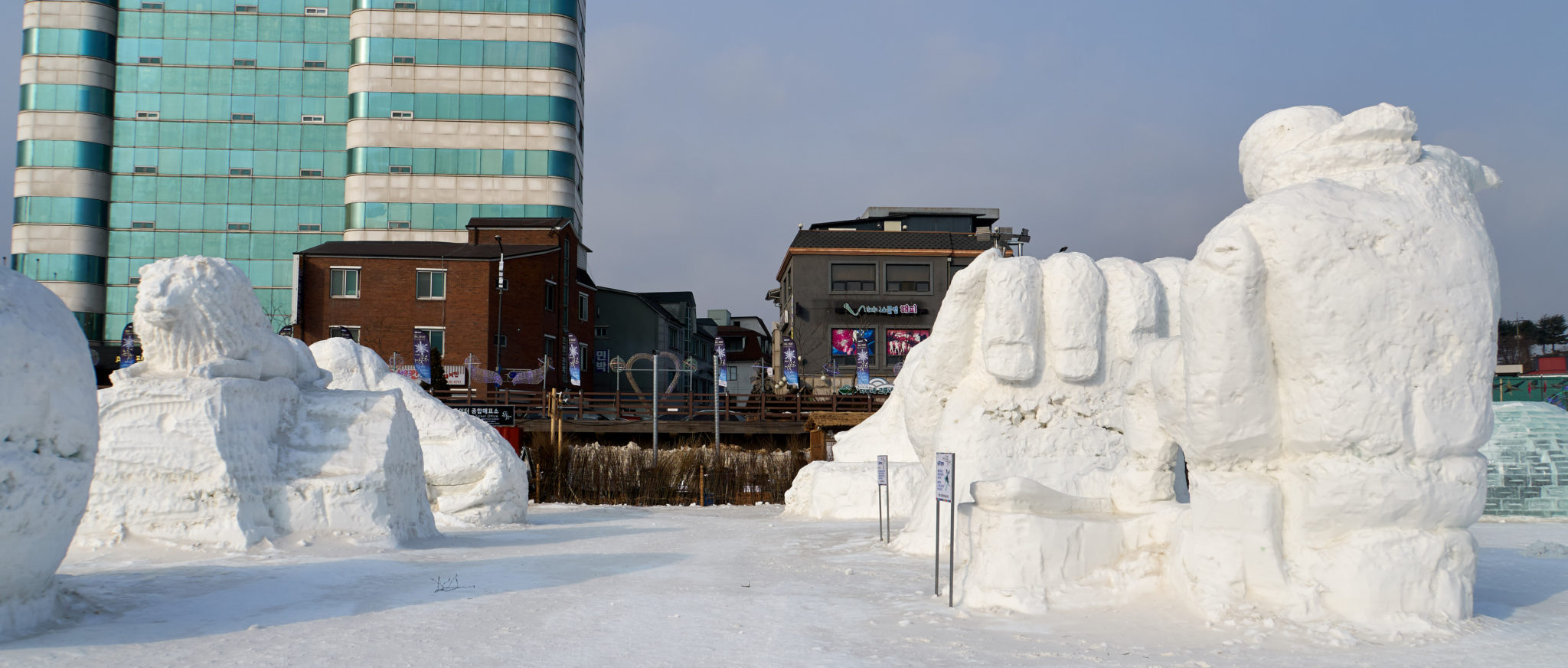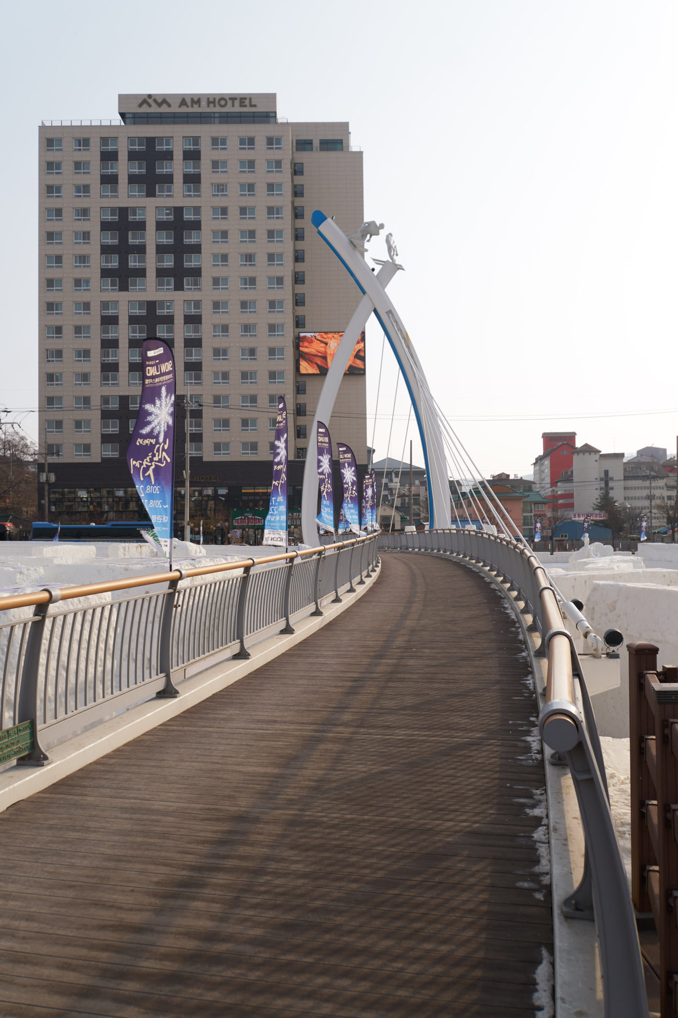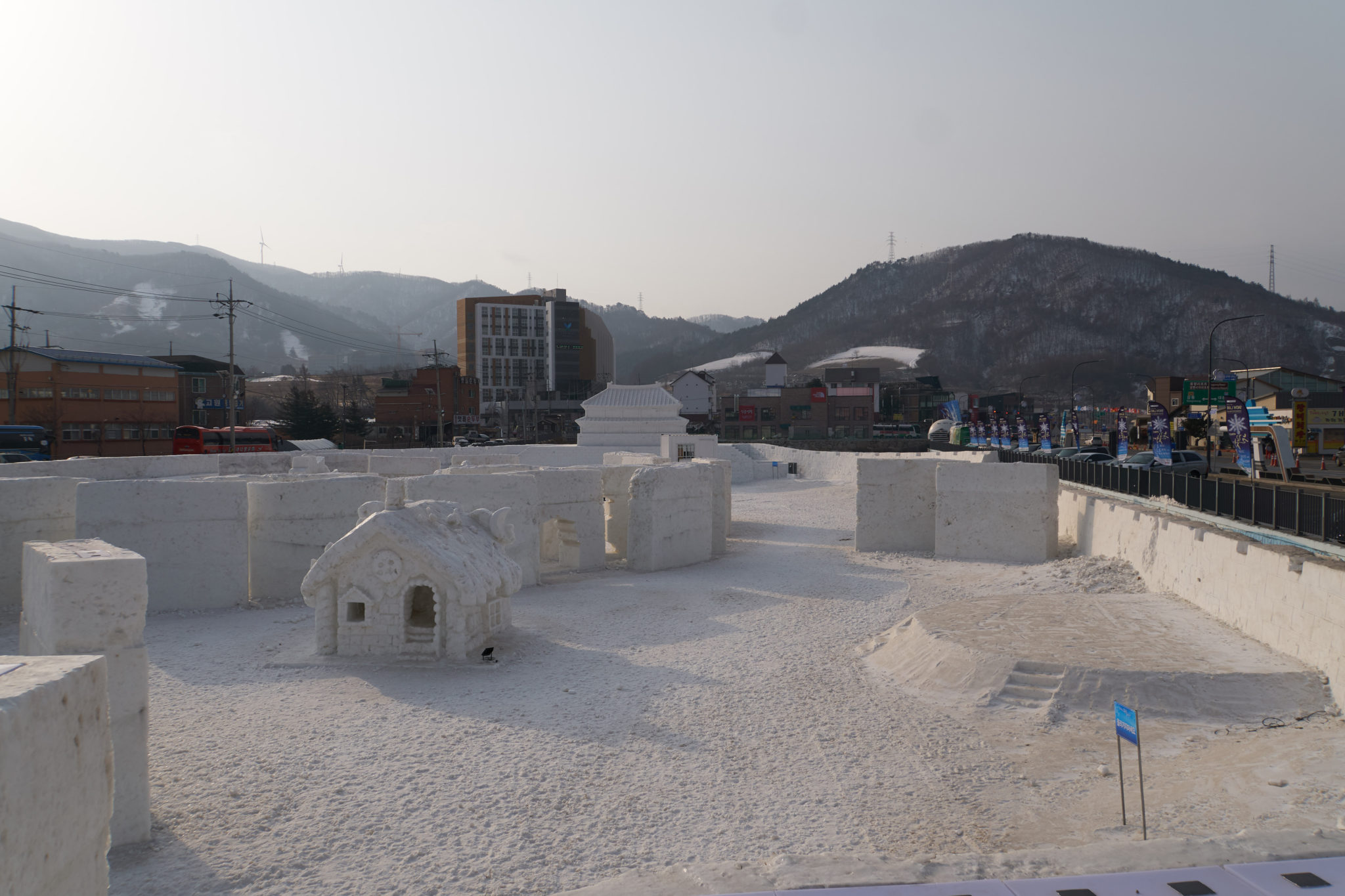 From Gangneung, we hopped on a KTX train to Jinbu which took 20 minutes. We then hopped aboard a free Olympic shuttle for another 20 minute ride to Pyeongchang. Even as we were driving in, you could tell that the entire town had been caught up by the Olympics.