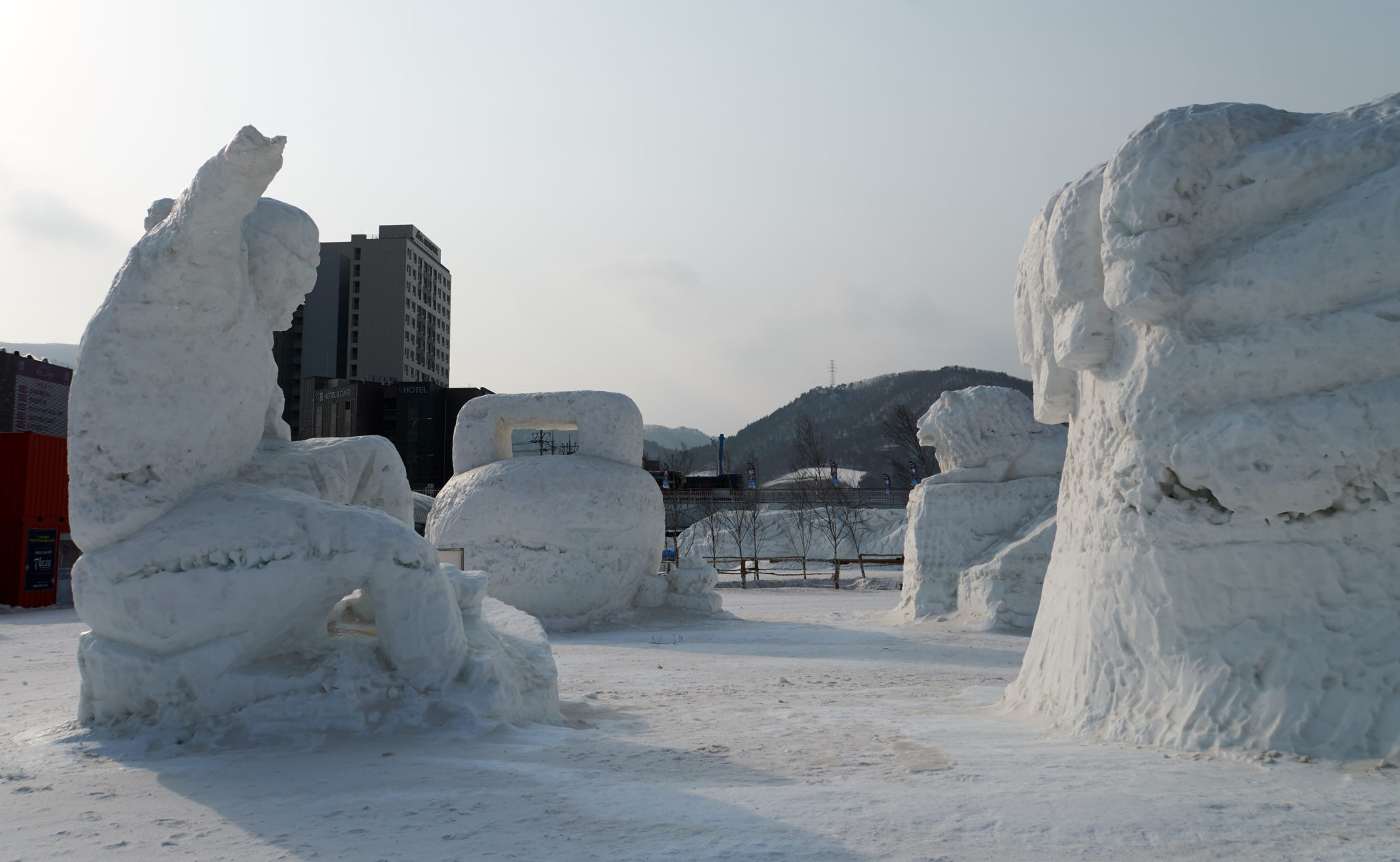 There were decorations everywhere, and even exhibits that weren’t directly related to the Olympics. We made our way to the Olympic plaza entrance, only to find that it didn’t open until 10. This was problematic because it would great reduce our time in the village, but there was so much going on around the city that it was almost a blessing in disguise. We ended up spending a bit of time in this frozen canal which had very elaborate ice sculptures.
