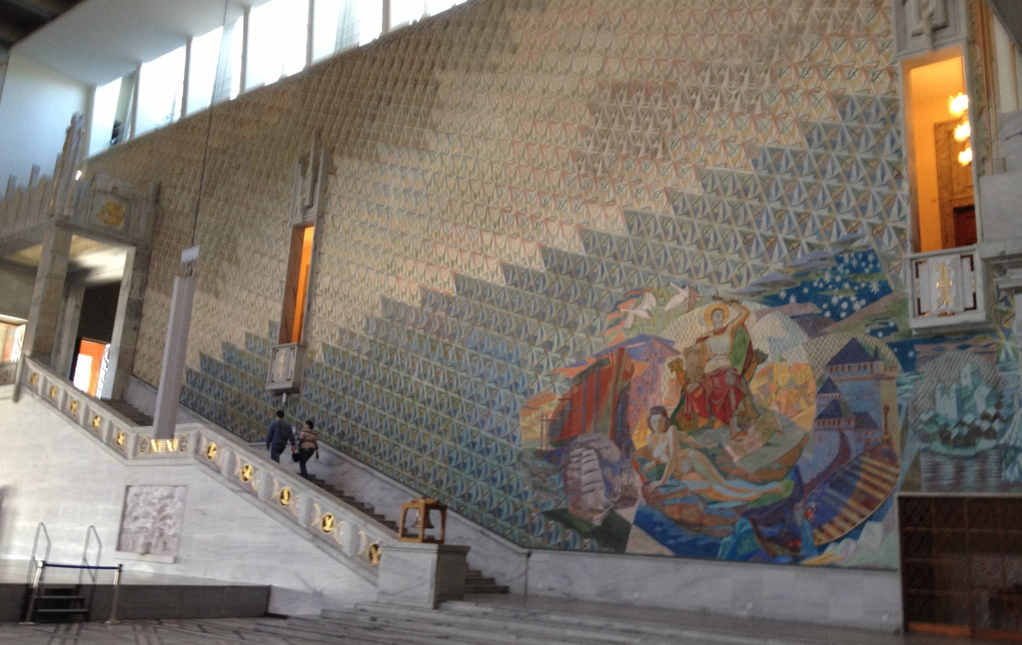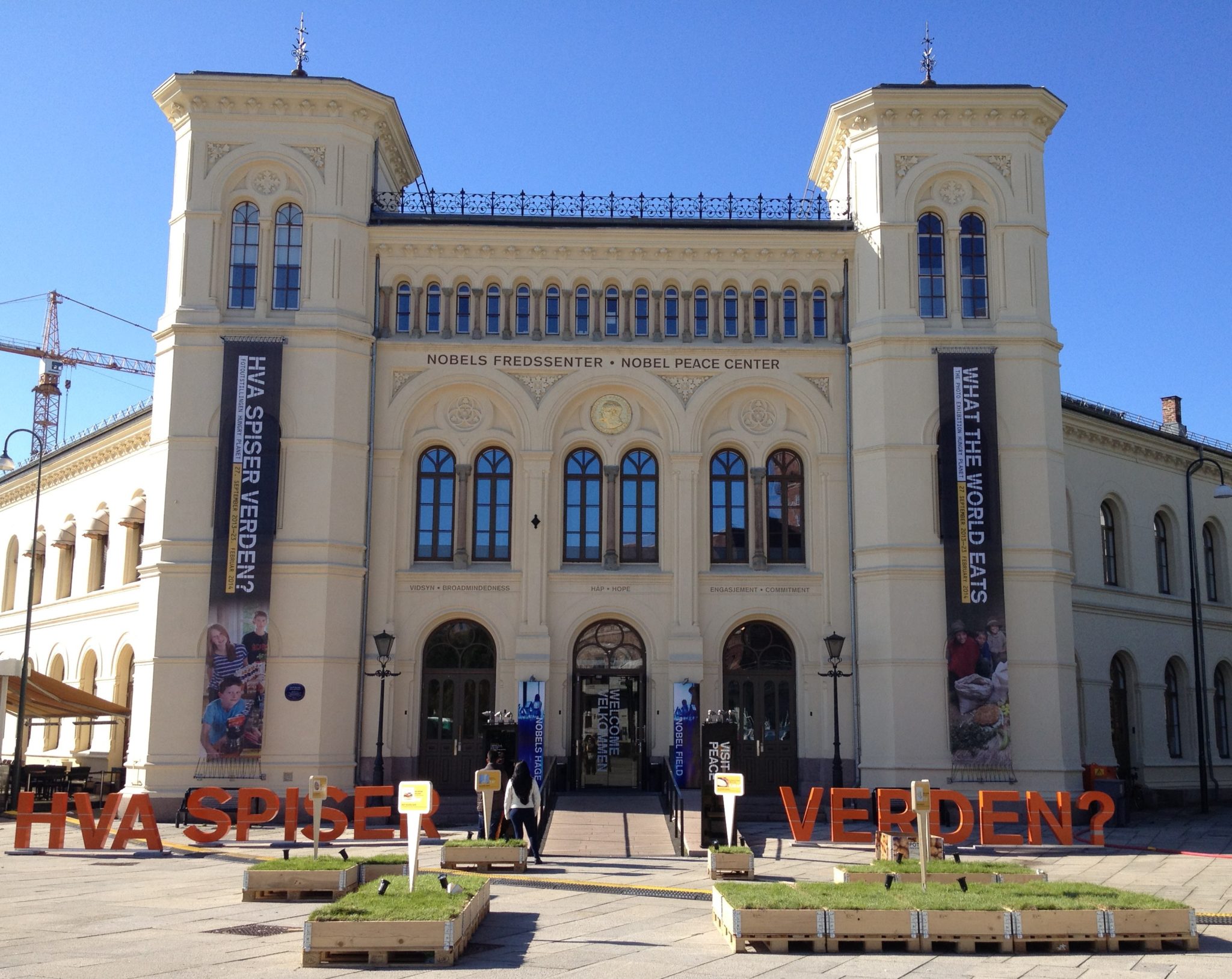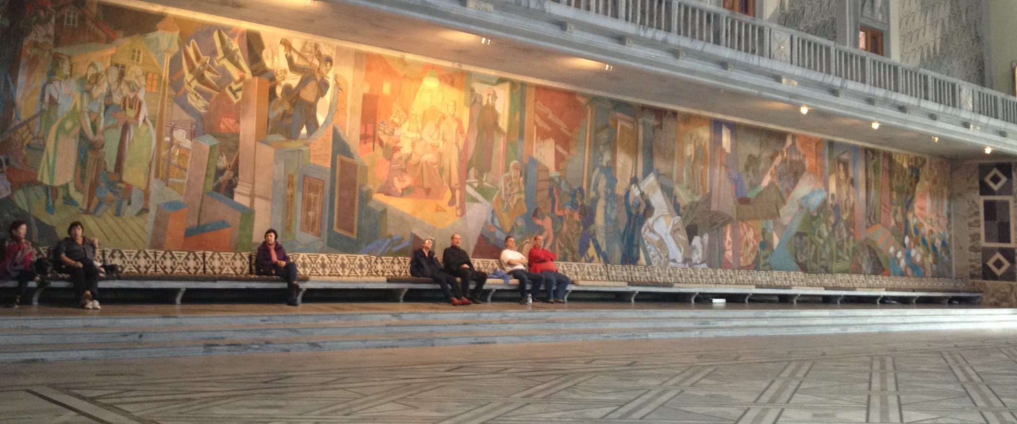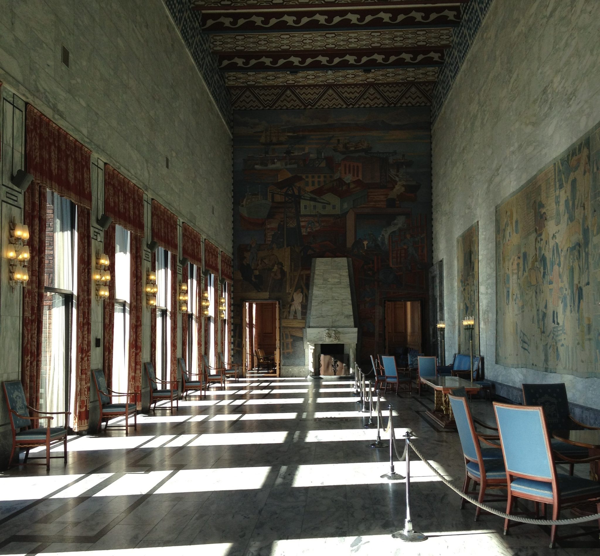 We continued along the water until we found ourselves in front of Oslo City Hall. This building is beautifully decorated inside, and rightfully so! Every year the Nobel Peace Prize ceremony is held here in the main hall. We enjoyed a quick tour of the Hall where we briefly learned of its history and functions. Conveniently, right across the street from City Hall is the Nobel Peace Center, a museum about the Nobel Peace prize. So afterwards we popped across and toured that museum as well.