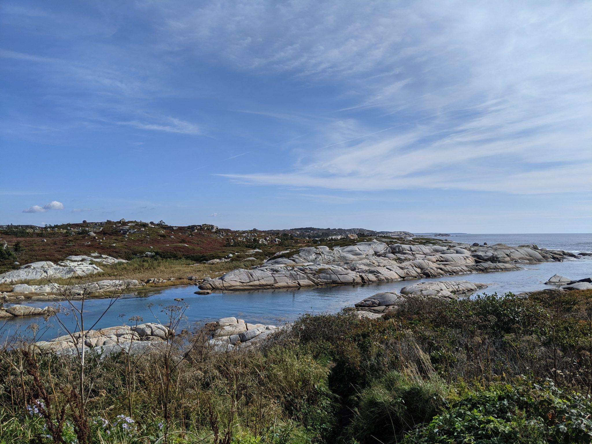 After getting all the paperwork done, we are on our way towards Peggy’s Cove. After leaving the city, the drive along the highway is really pretty. The fall colours mixed with the small lakes makes for a beautiful autumn scene. Sadly, being the driver for our trip, I didn’t get a chance to take any photos of it. The closest I have is only after arriving at Peggy’s Cove, I snapped a photo of the coast line. Even this, doesn’t show some of the vibrant reds and oranges we witnessed while driving here.