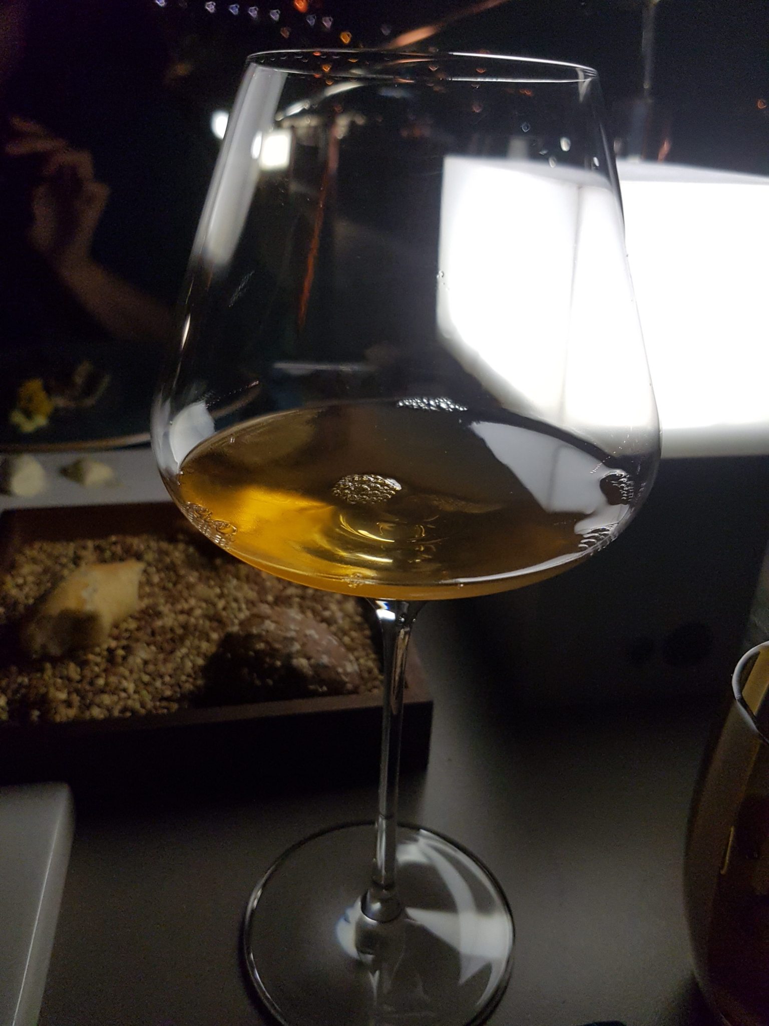 I don’t remember what the dish was called, but I’m just going to call it a “beet bomb”. It was spherification of beet juice. Once you put it in your mouth, there was a beet juice flavour explosion! Another dish was the a mackerel dish paired with an orange wine. I was amazed with the change in flavour of the entire dish with the wine pairing. It was the first time that I had orange wine. Orange wine is not wine made from oranges. Instead it is made from crushed white grapes and fermented in a ceramic or cement vessel with grape skin and seeds intact. The final product is an orangey colour; hence, orange wine.
