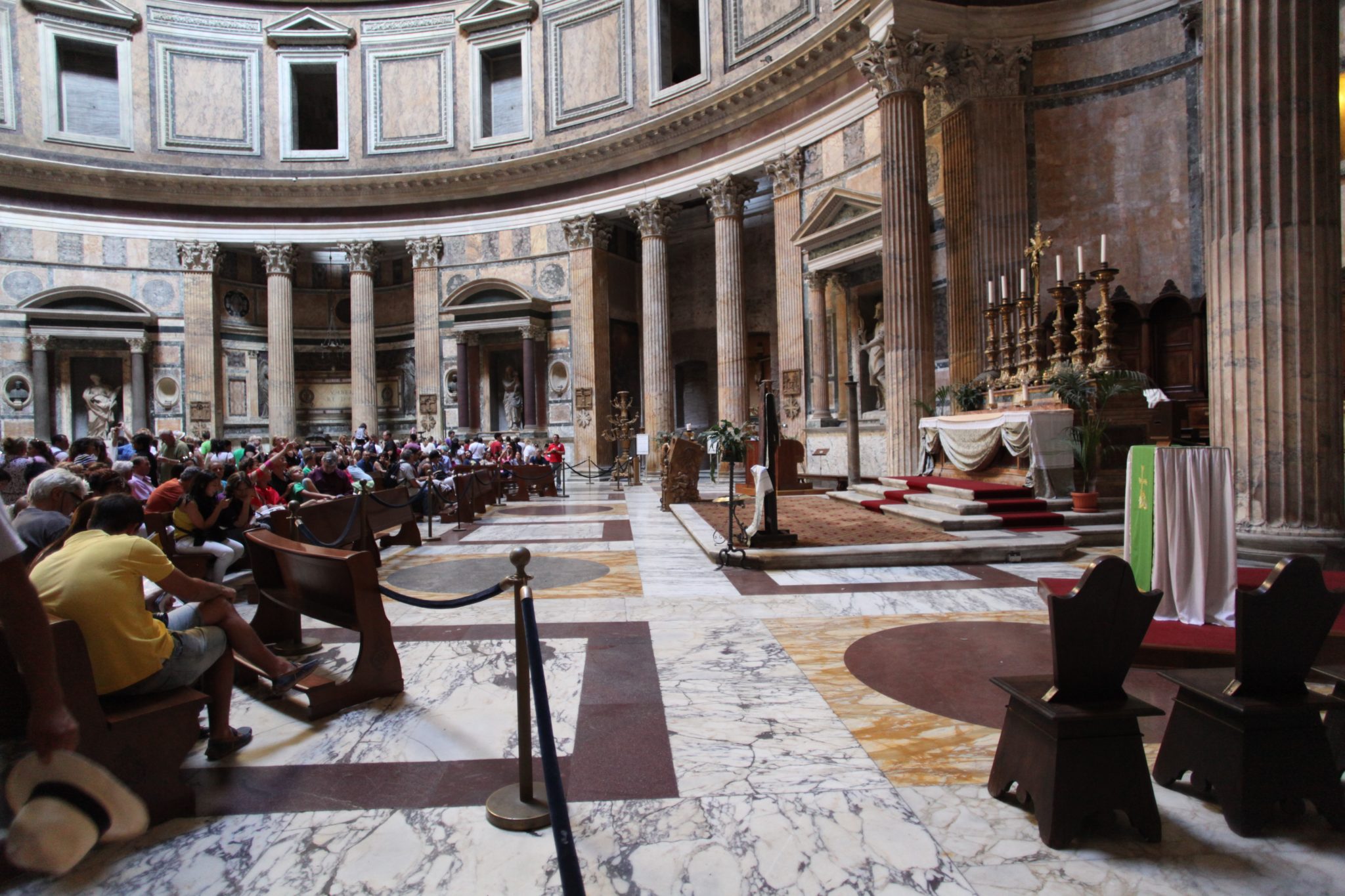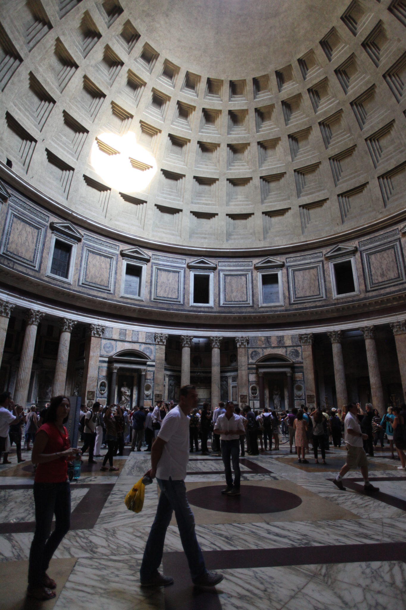 The Pantheon stands out as something I would highly suggest visiting if you ever visit. From the outside it seems unassuming and similar to many monolithic buildings in the city. However, when you get inside you immediately appreciate how intricately this was put together. There is a beautiful dome with a hole in the centre that lets in a single beam of light. On a sunny day (like the one we had) you’re able to watch as the spotlight from the sun moves across the dome with the Earth’s rotation. It is also a place of worship and thus there are a lot of religiously related art and objects around the perimeter of the building. Overall, spending some time inside the building and simply taking it all in, having a moment of silence and solitude was refreshing!