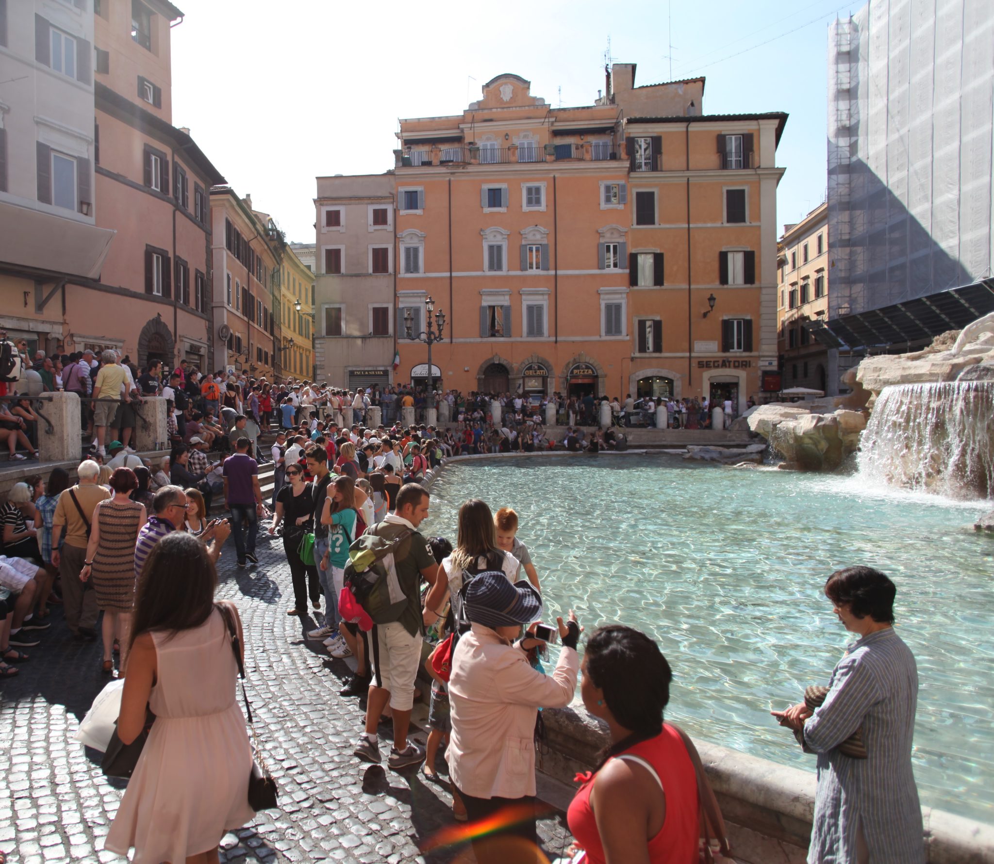 Our next stop was the equally popular Trevi Fountain. We had walked in from a smaller street and as the plaza for the fountain emerged we were a bit surprised how many people were crowded around the fountain. While the fountain is awesome, sadly one of the sides was being renovated at the time. Add to that how crowded it actually we, we spent enough time to snap some photos of it before moving on. Hopefully sometime in the future I’ll have a chance to return and visit it when its less busy and fully open.