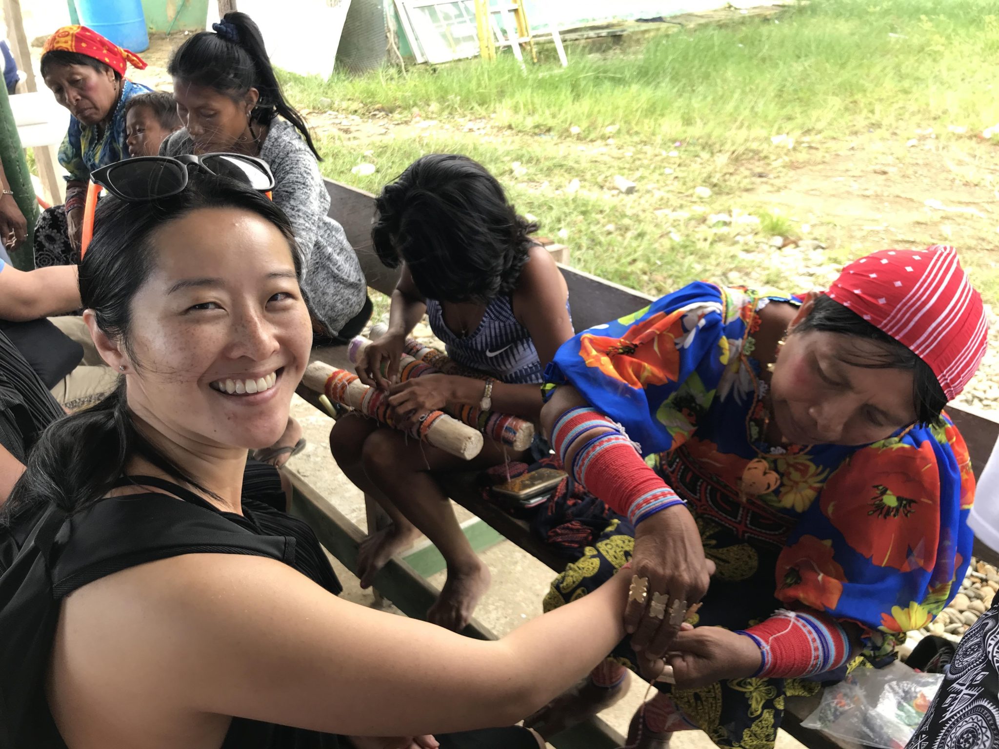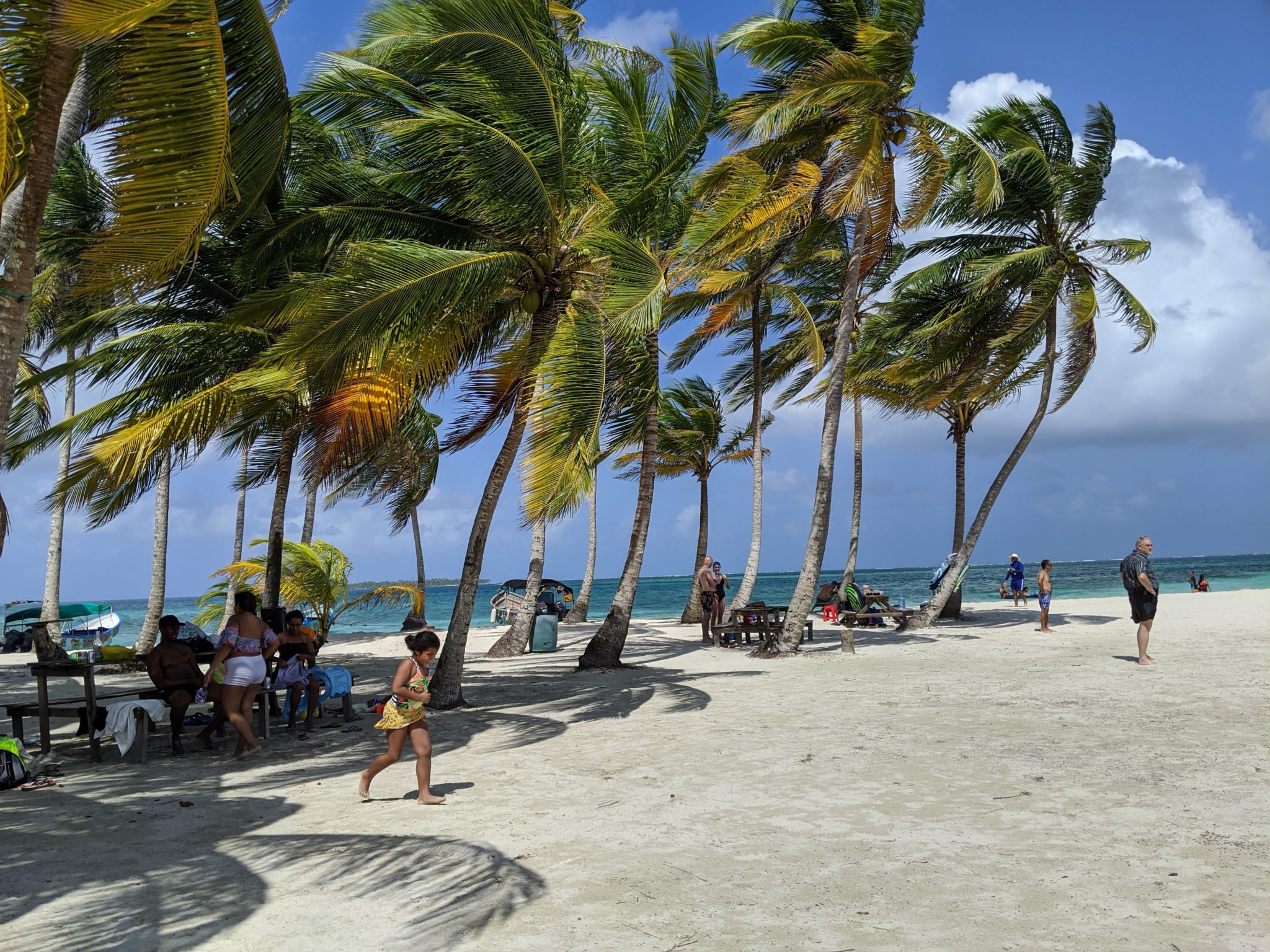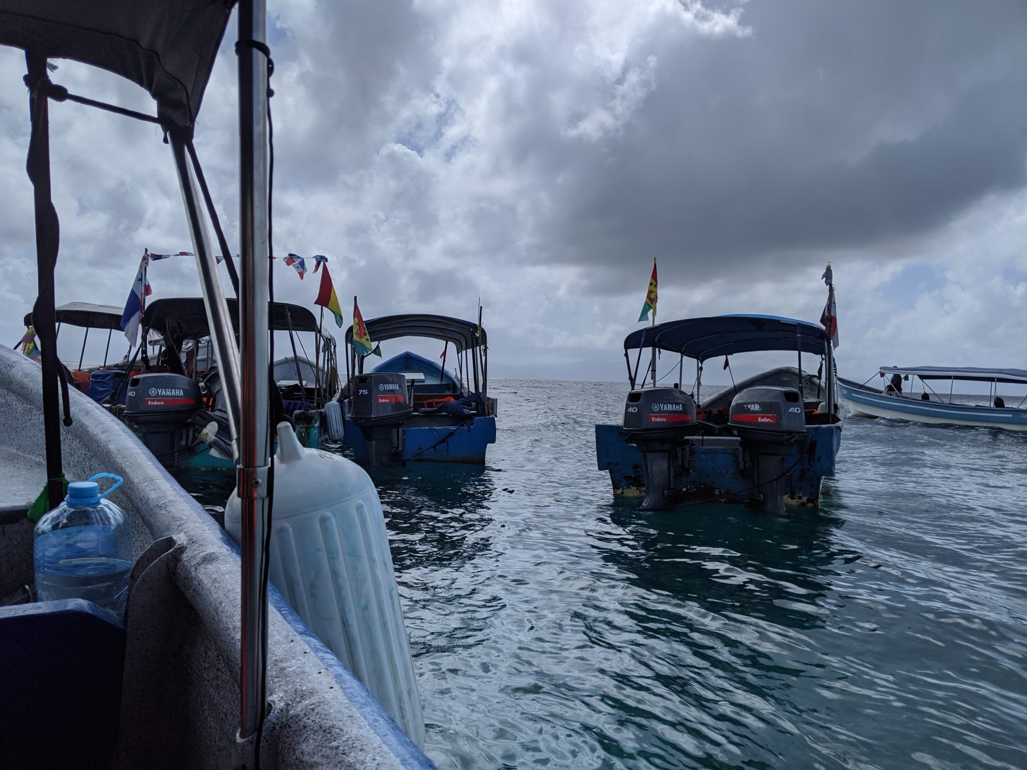Soon enough, we arrived at the port and were greeted by a large contingent of Guna women and children. They then proceeded to sit us down and tie a bead like bracelet on each of us. They are all homemade and described as traditional jewelry. And while I have no reason to suggest otherwise, I suspect that it is also a way for them to identify tourists out on the islands! Soon enough we all had our bracelets attached and were ushered onto the boat to take us to our first San Blas Island.