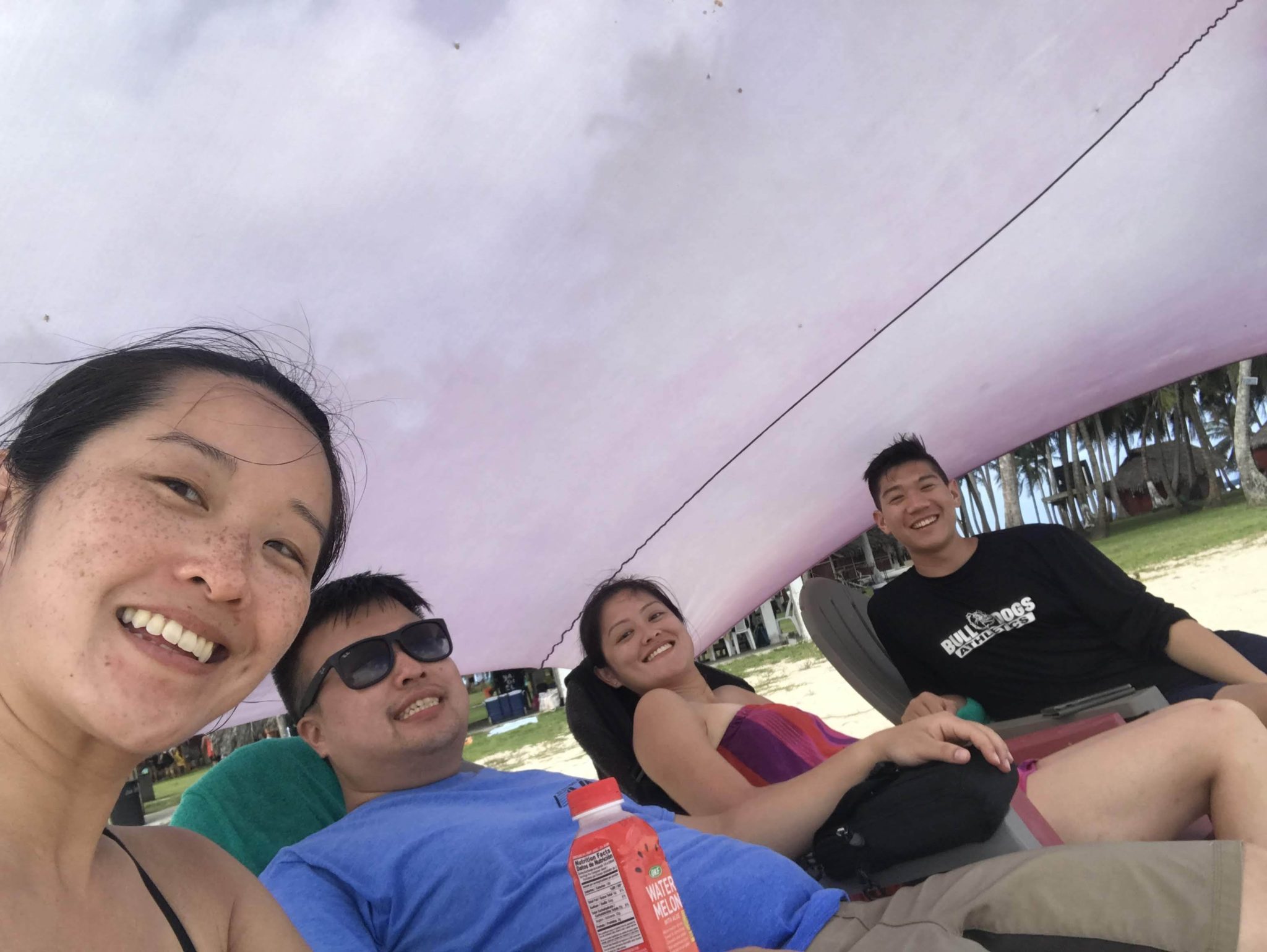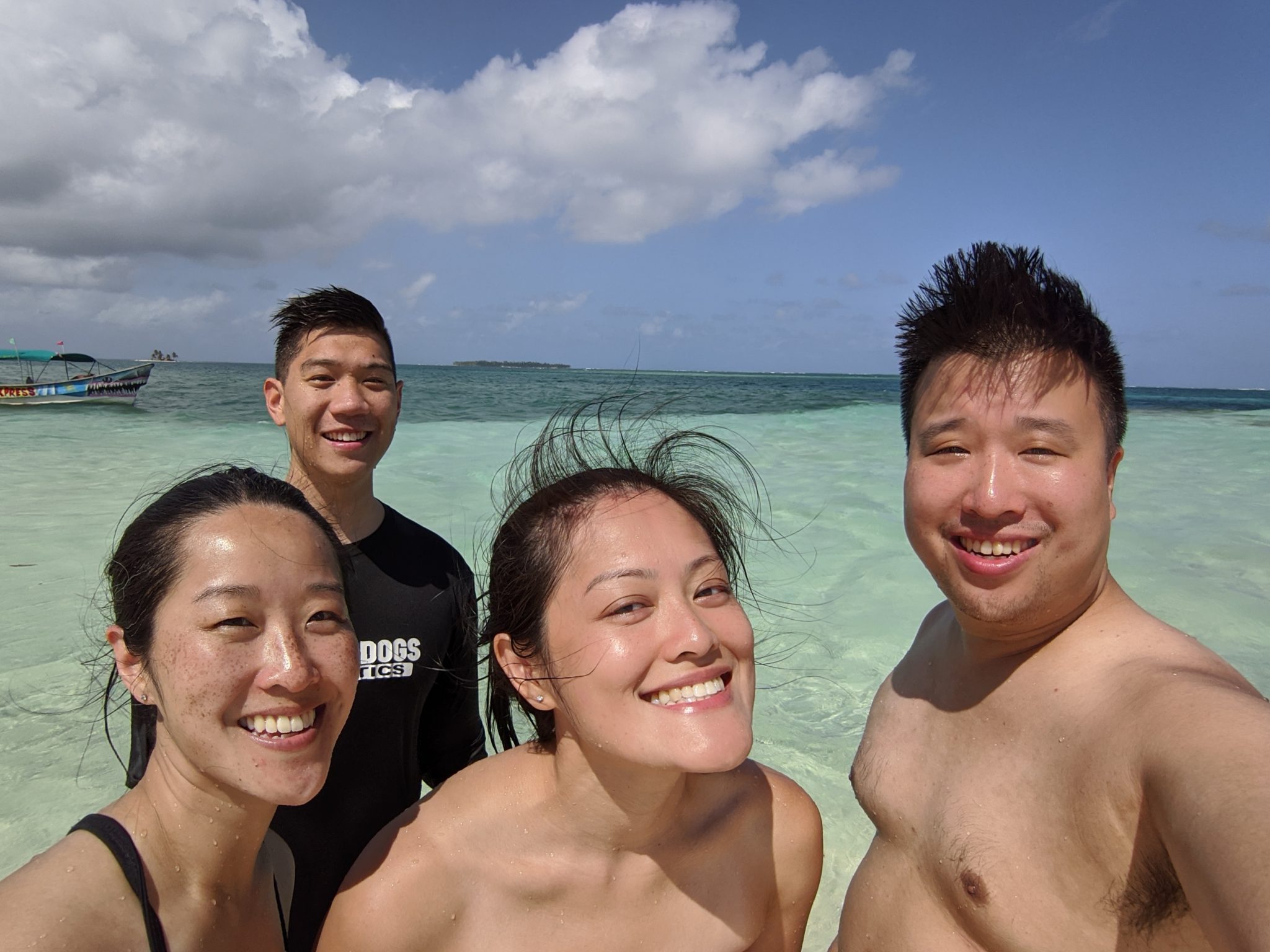 Our boat eventually arrives at the first Island which is beautiful! It really is like one of those post card type islands with white sandy beaches and clear blue water. It’s also small enough that you can walk the entire edge of the island in 5-10 minutes. So it’s super quaint but amazingly picturesque (which we learn, all the islands are like this). The four of us spend the next few hours swimming, snorkelling and generally enjoying the island vibe! It totally was an awesome time had by all!