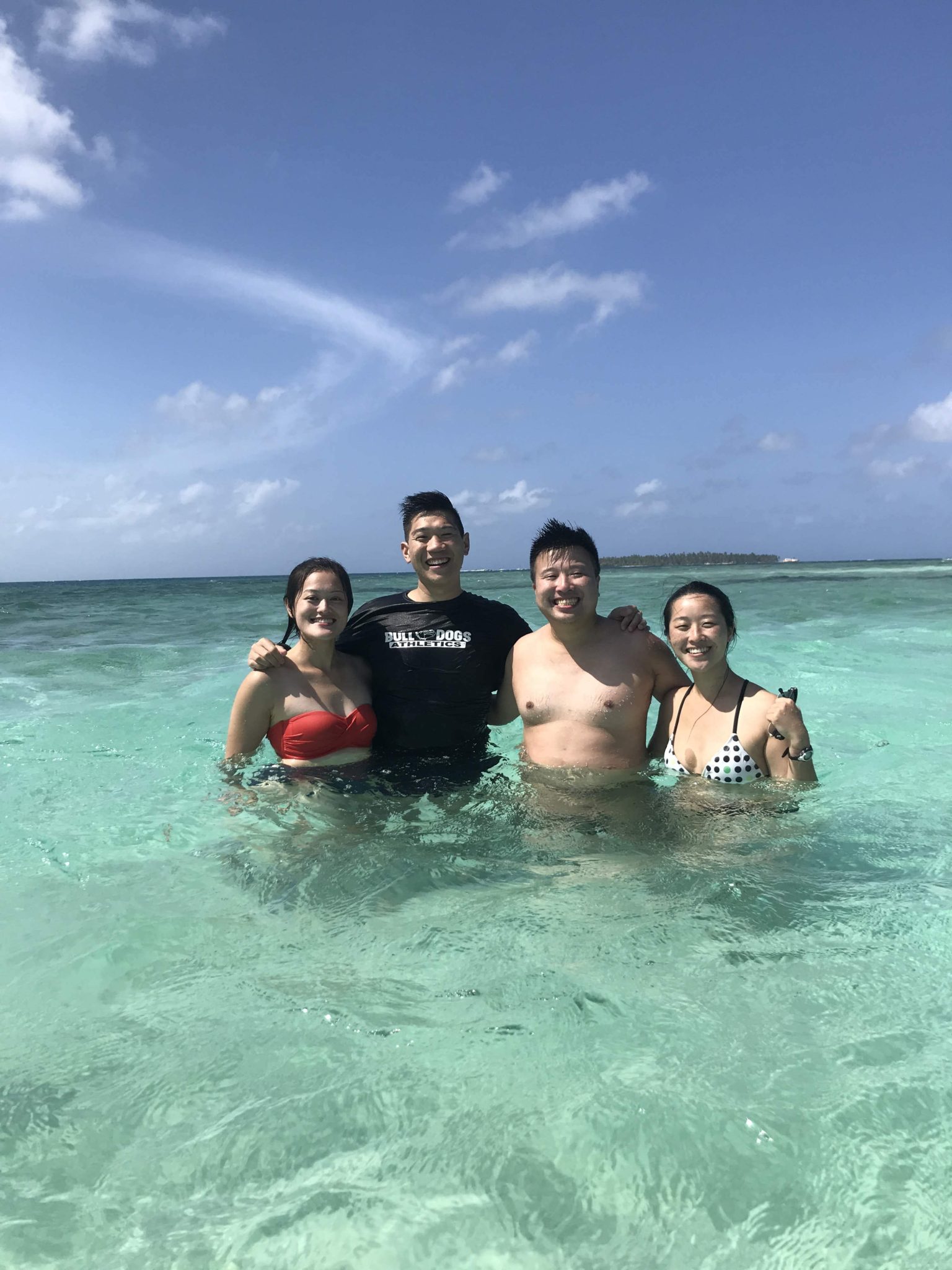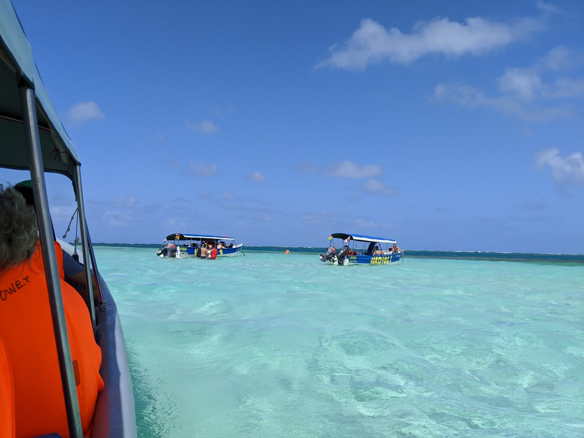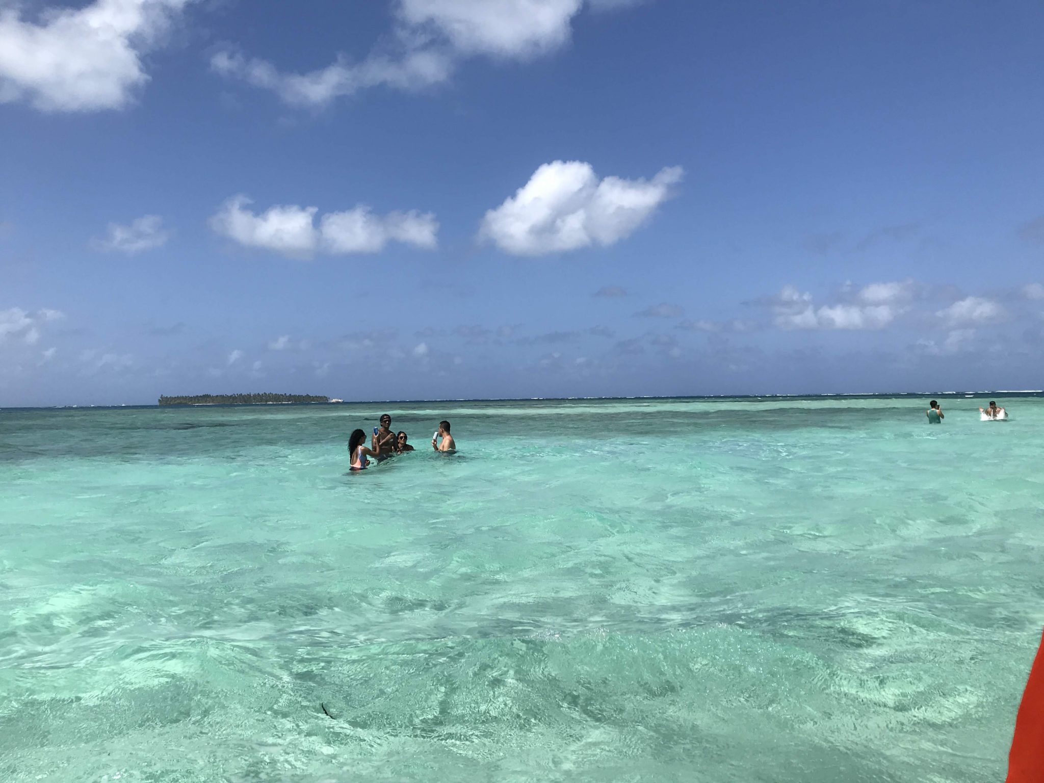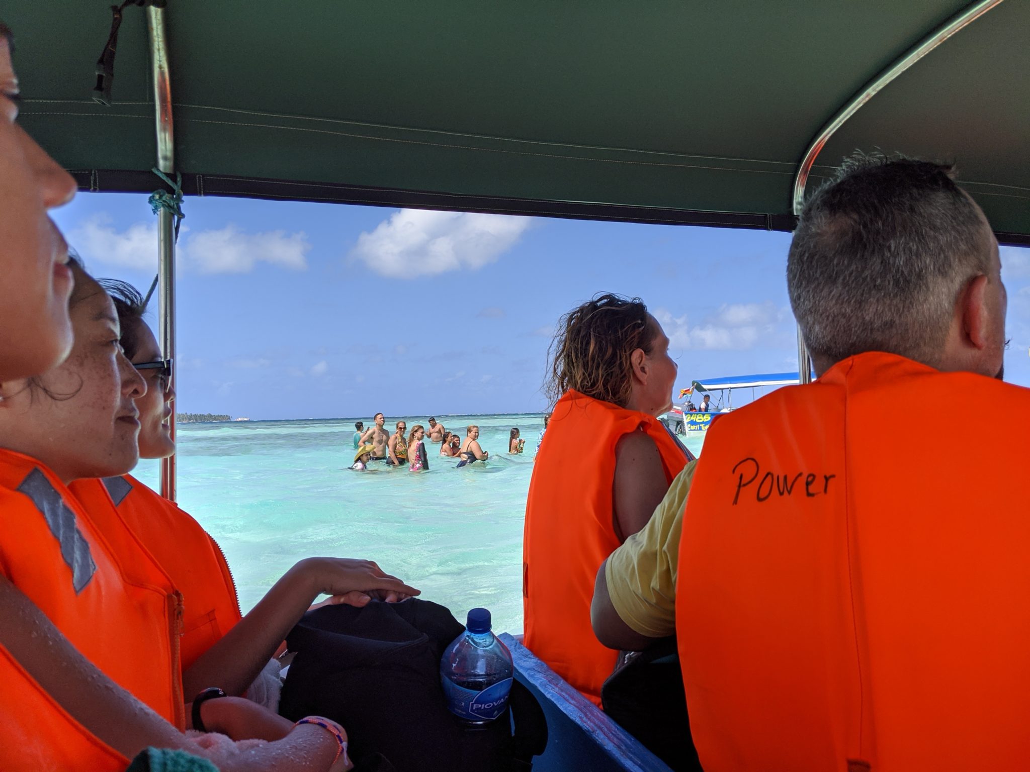 As we neared our next stop, the absence of land is the first thing we all noticed. But there were several boats in the area and lots of people were about “waist” deep in the middle of the ocean. We learned that our next stop would be this cool sand bar in the middle of the ocean. Every direction you look is water, but you’re standing on ground and so its a very unique perspective and location to be in!