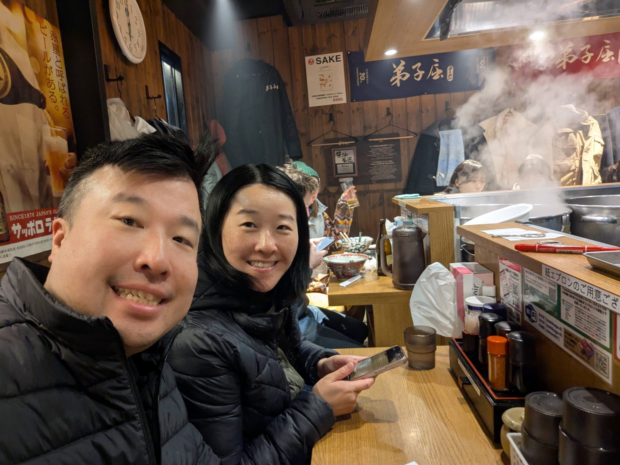 After walking through the entire Odori site, we head back to our hotel to check in. We rest a little before heading out to Ramen alley for dinner. There are several stores with lines and we end up lining up for Ramen Teshikaga and waiting about 20 minutes before being seated. We order ramen with some karaage and gyoza to share. After a long day out in the cold, some tasty tasty ramen really hits the spot.