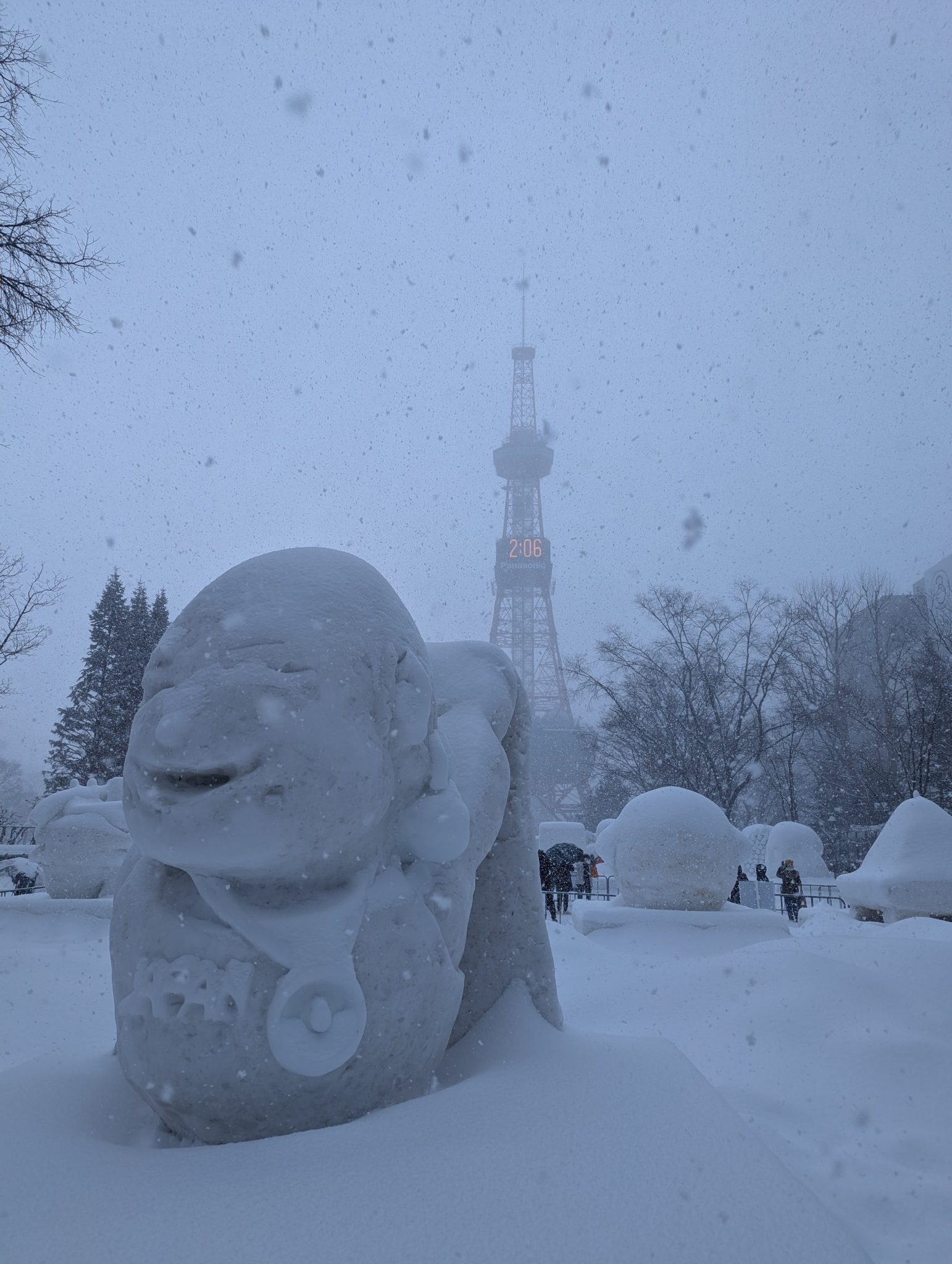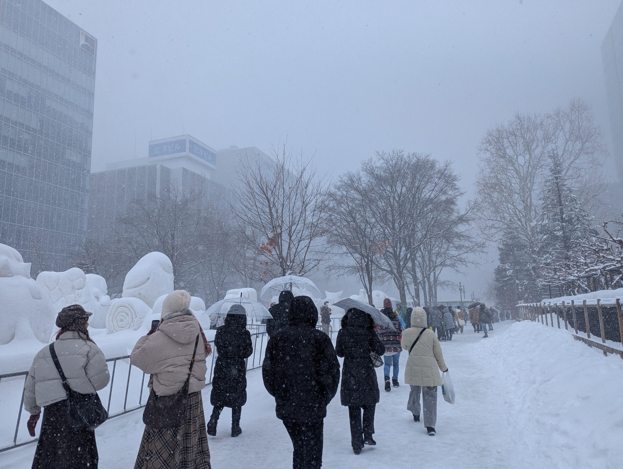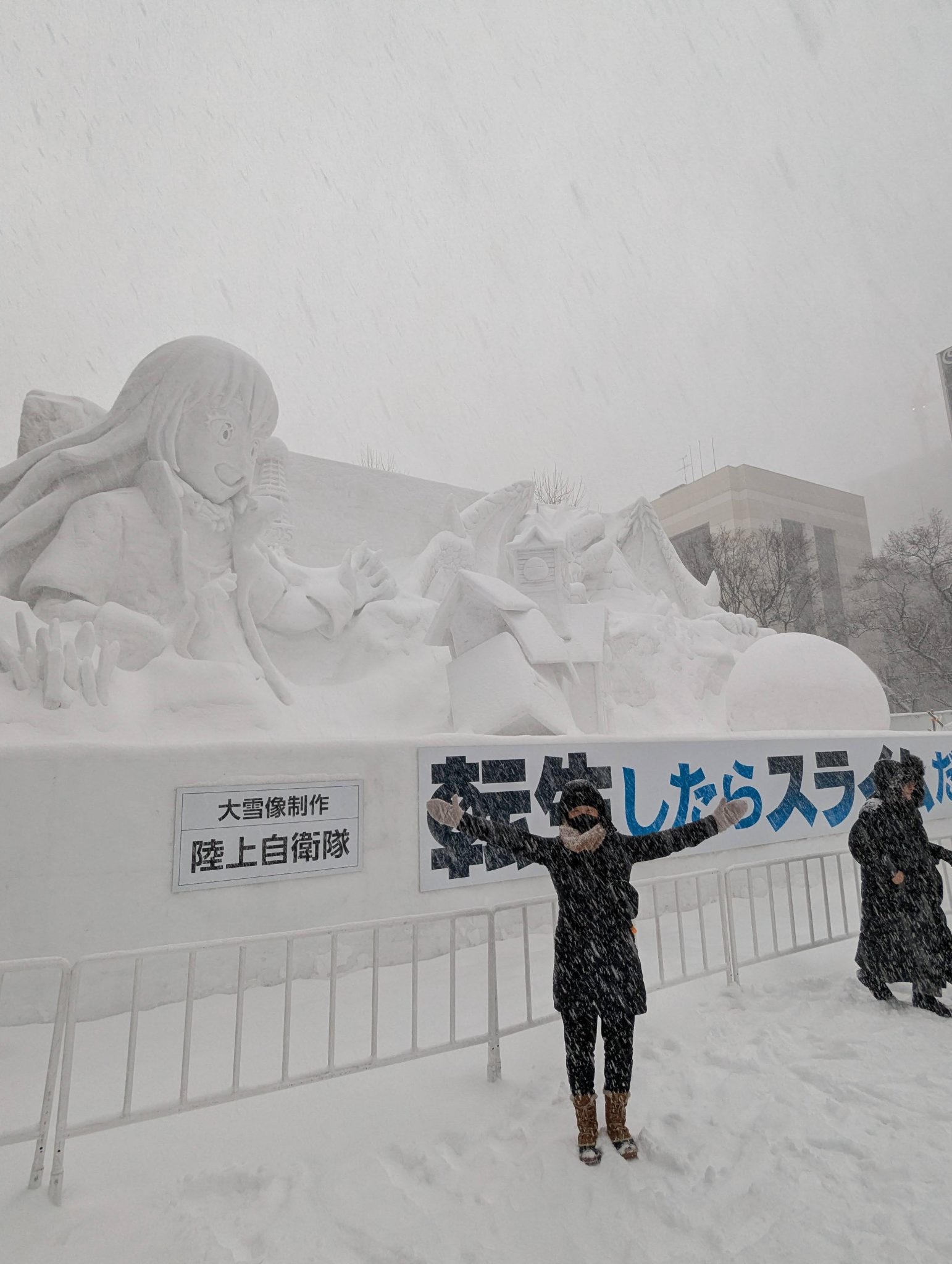 After dropping off our luggage at our hotel, we quickly head to the Sapporo Snow Festival. It’s the last day of the festival and we want to try and experience as much of it as we can. It’s the Sister’s first time at the Sapporo Snow festival but the second for me. Experiencing it in heavy snowfall though is pretty unique in its own right!