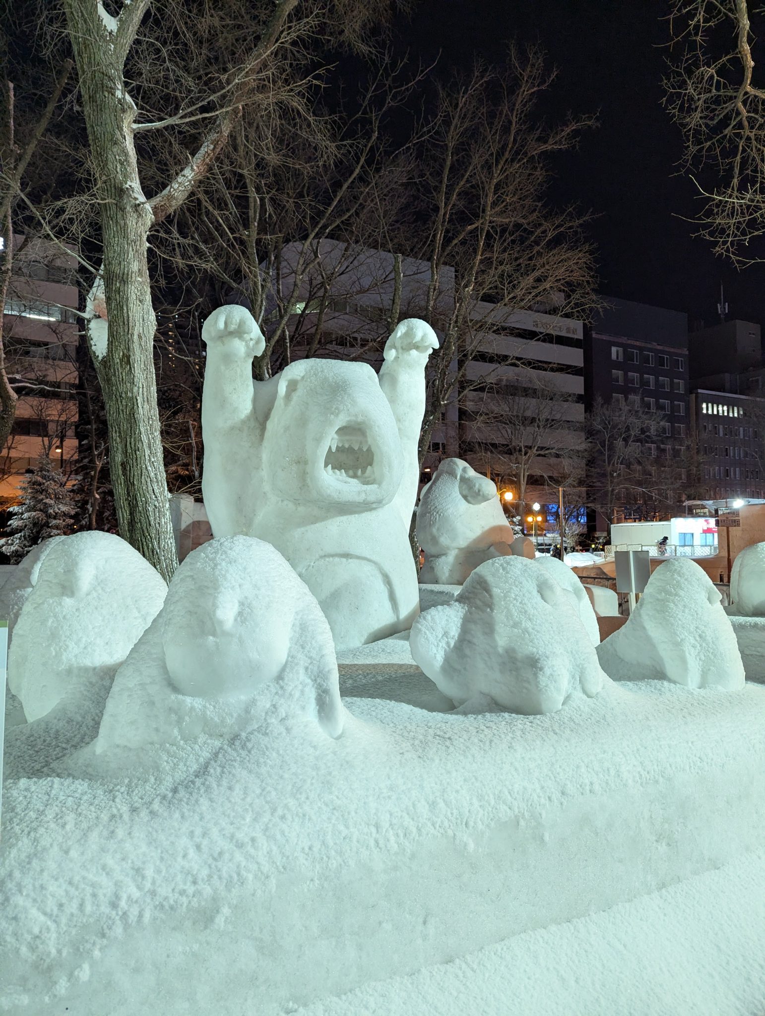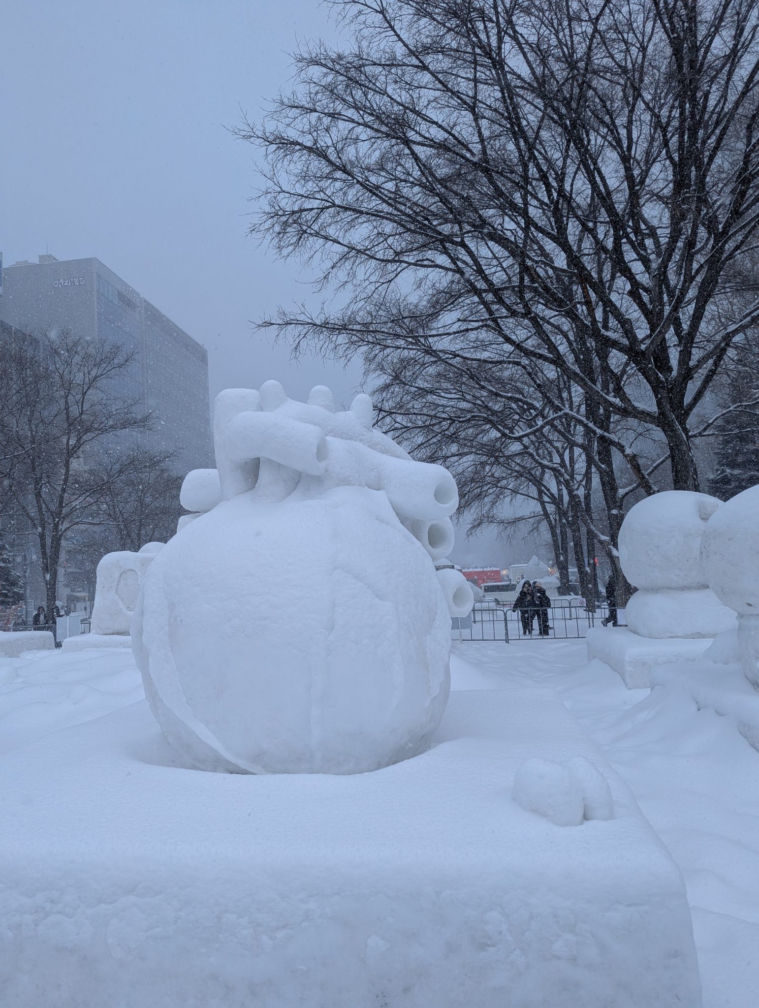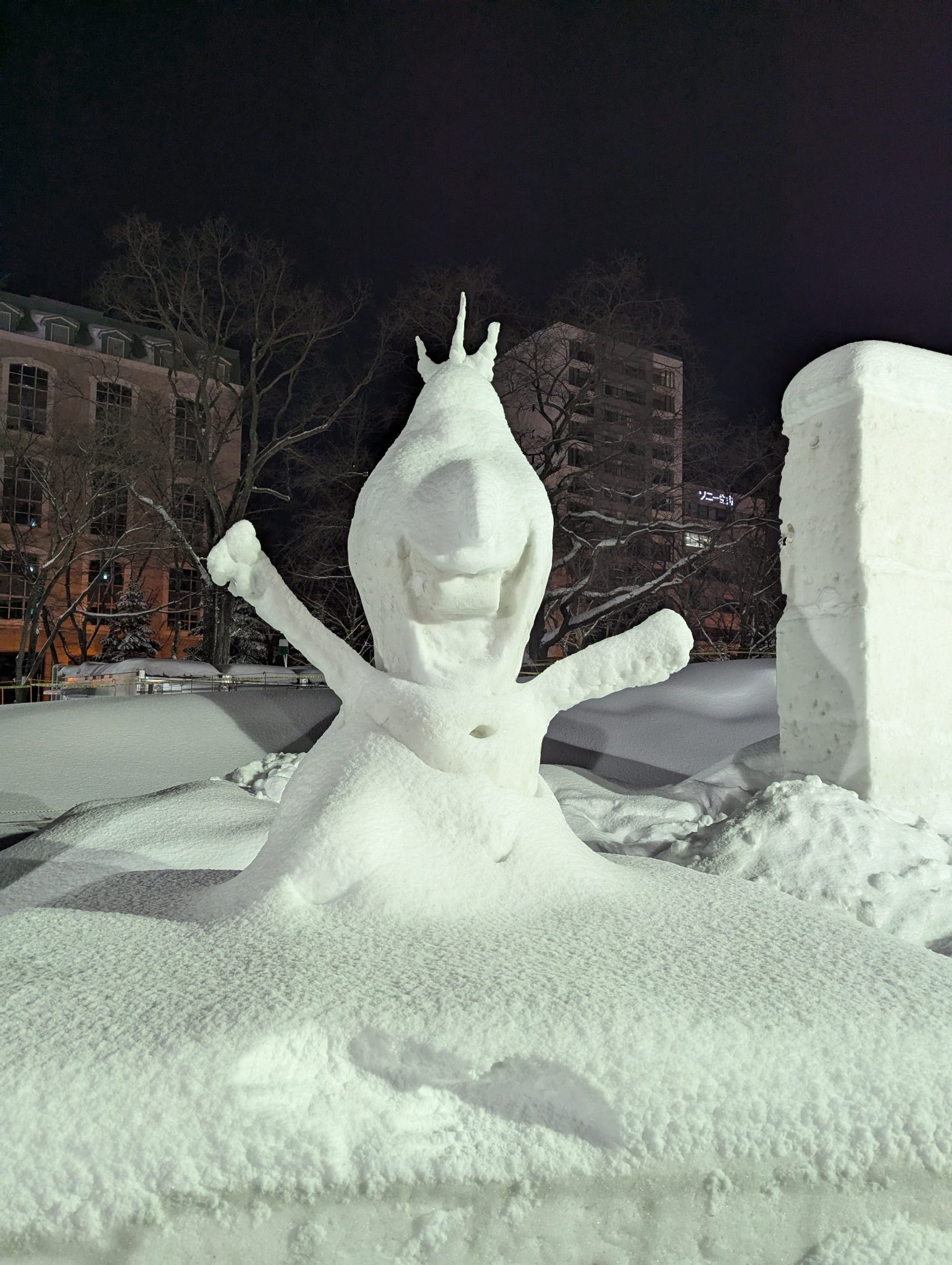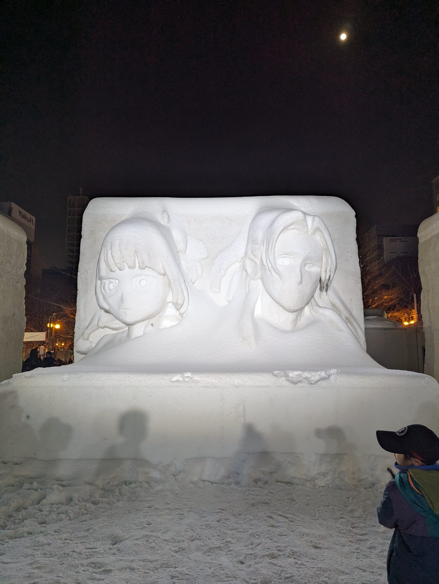 One of the standout draws of the Sapporo Snow Festival are the numerous snow sculptures on display throughout the Odori site. There are sculptures of all shapes and sizes and themes. The Sister and I enjoy walking through the “garden” of sculptures and trying to see if they’re familiar to us or are completely “out there” artistically.