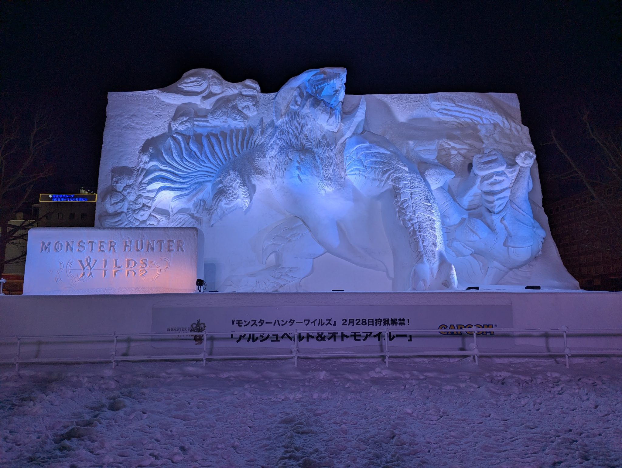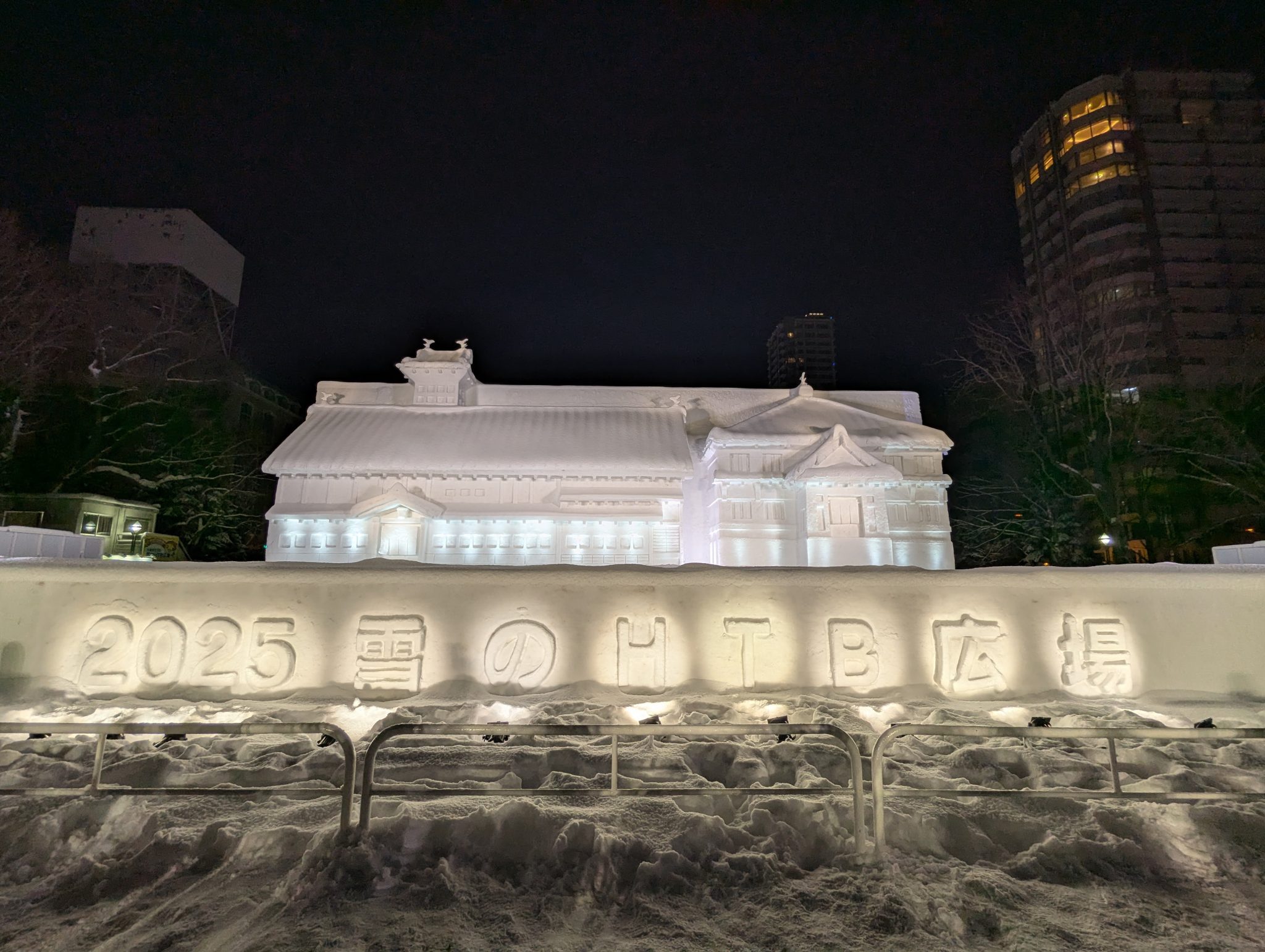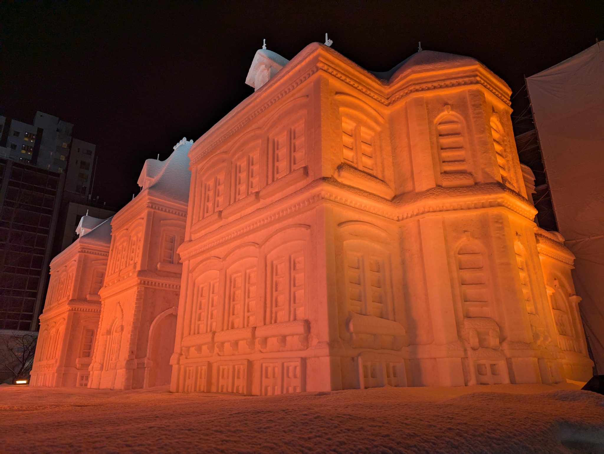 Upon returning to the Odori site, we once again start strolling through the different sculptures. We observe how it can be a bit more magical at night with different coloured lights illuminating the massive sculptures. It gives some of them a bit of a different feeling of atmosphere even. We spend our remaining time trying to soak up as much of the Sapporo Snow festival as we can before making our way back to our hotel. We’re both super tired after a super long travel day but also very glad we get to catch the last half day of the festival and now have a full lazy day in Sapporo to rest.