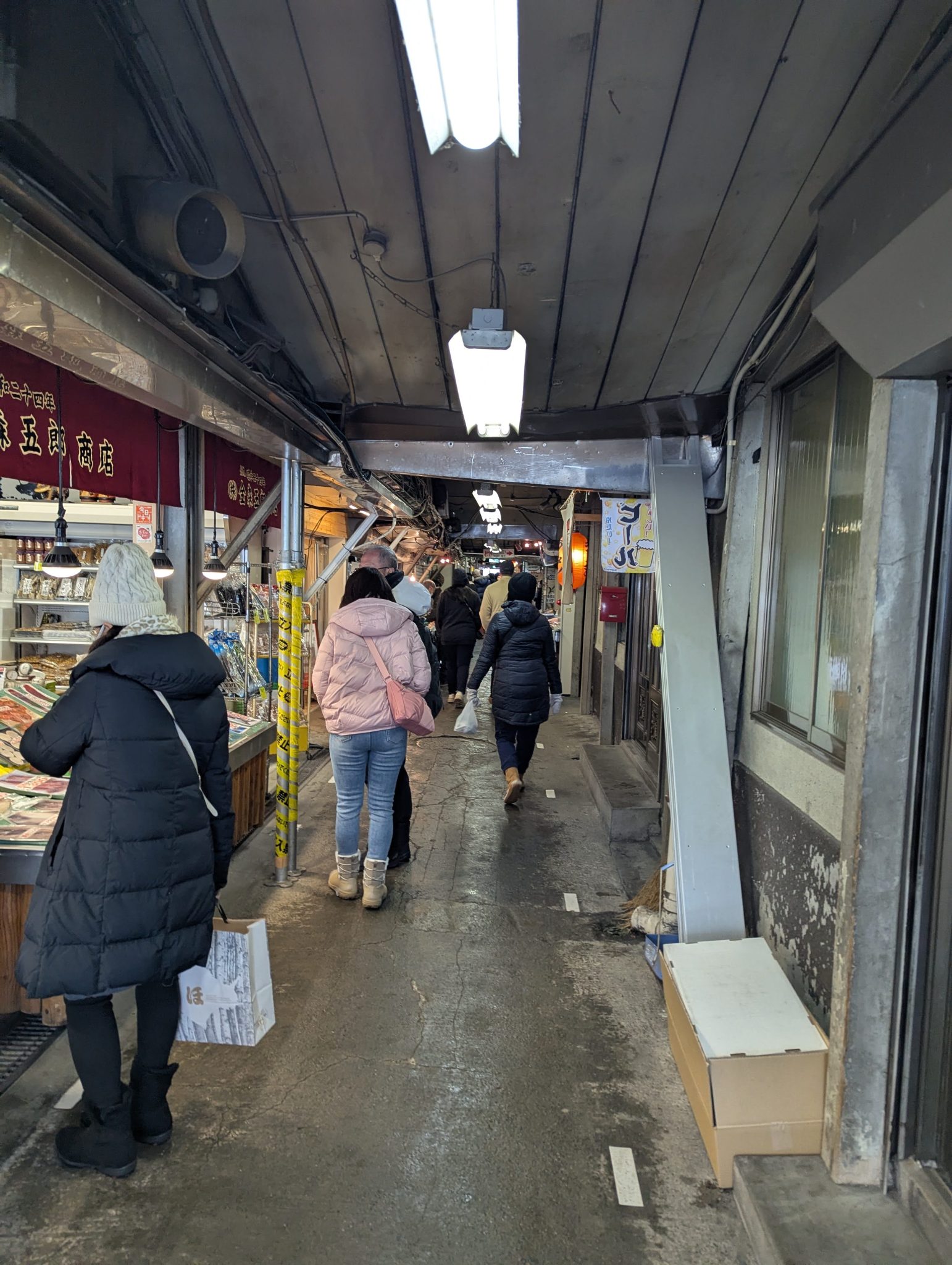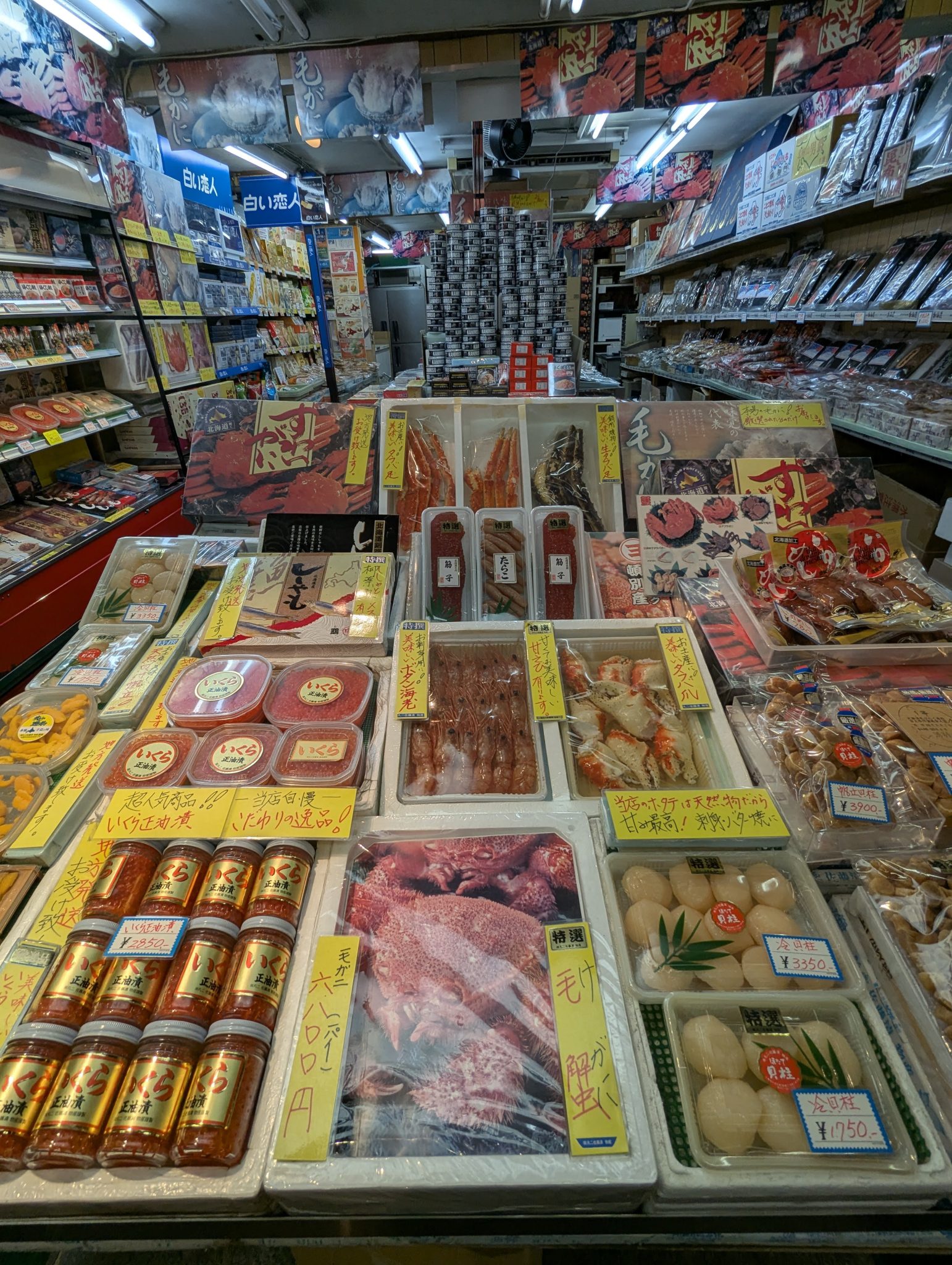 After a bit more walking we find ourselves at the Nijo Market. This fish market near Odori park and has been around for the past 125 years. Along the outside are a lot of stores that have lots of different seafood options on display. However, a majority of it is now restaurants looking to lure hungry patrons in with the promise of tasty seafood eats.