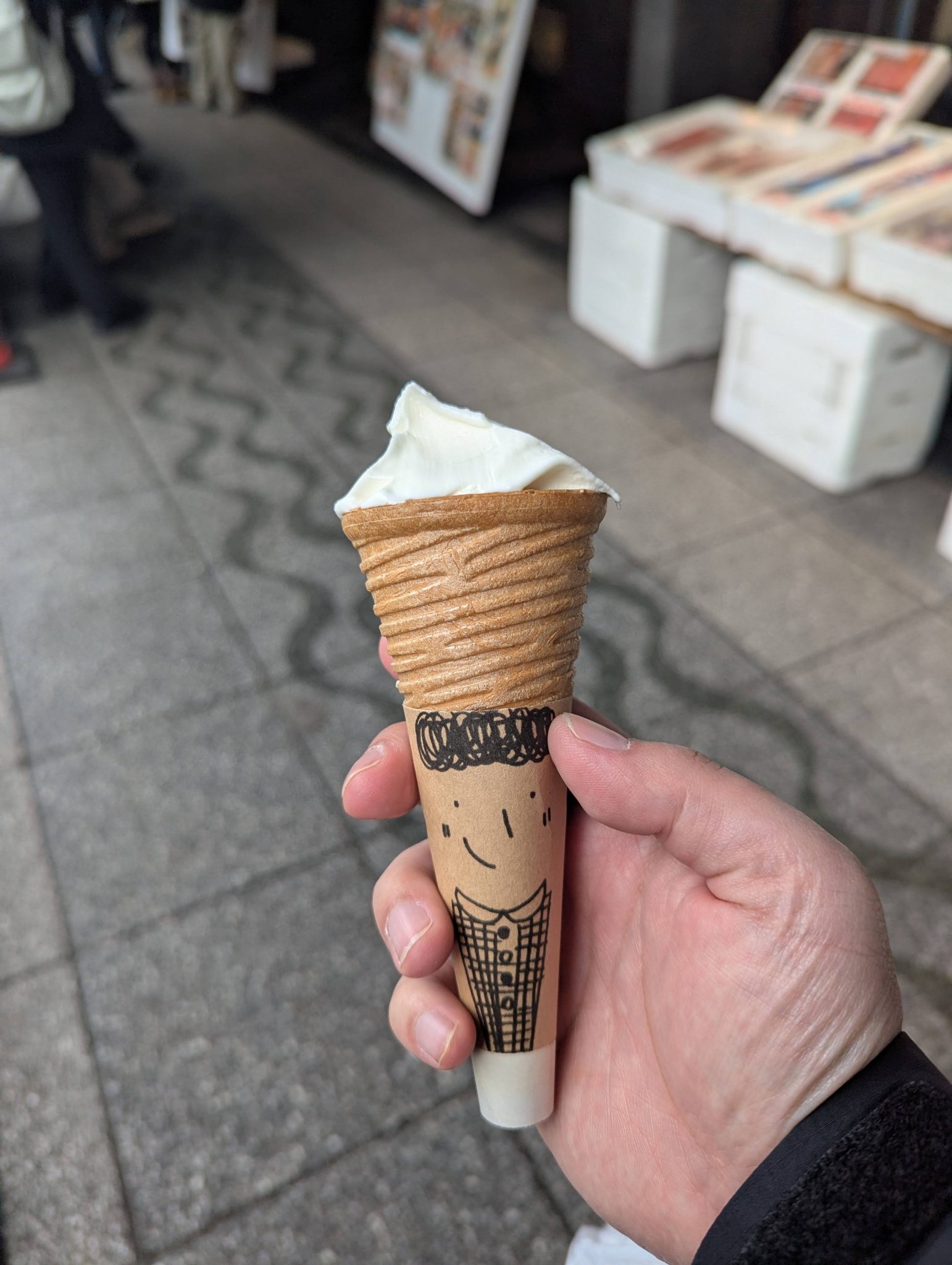 We don’t really have much of a plan today. We figure that after a very hectic two days of travel and festival we’d be pretty tired today. So after taking our time to wake up, we simply want to wander and see where adventure takes us! The first interesting stop is Ice Cream! Hokkaido Ice cream is legendary in its own right and it’s always on my list whenever I’m in the region. So seeing a store that has it on offer, we quickly stop in and have it as our first “meal” of the day!