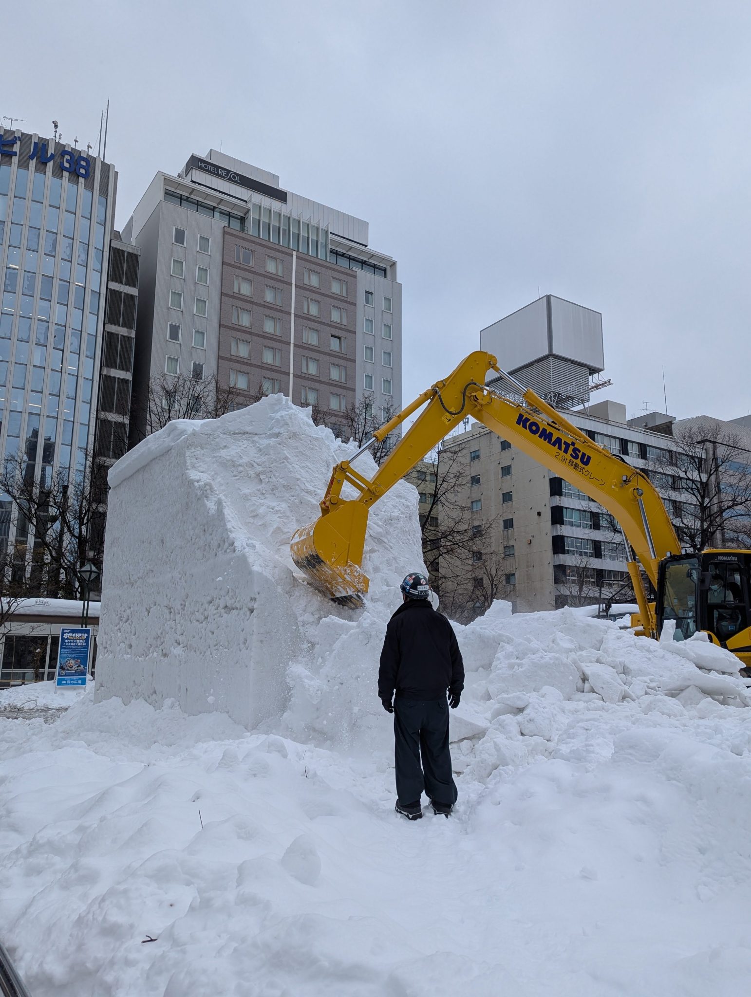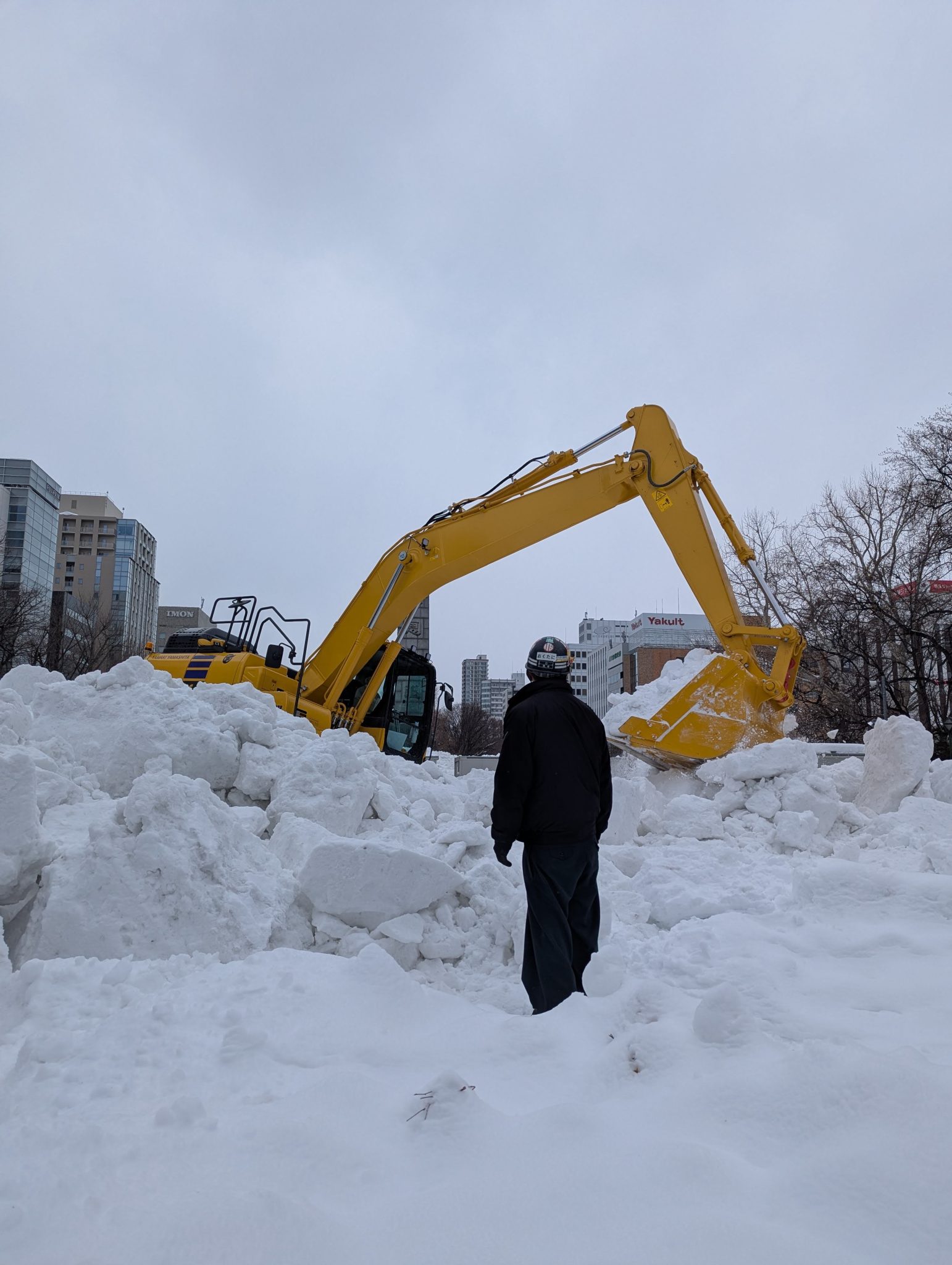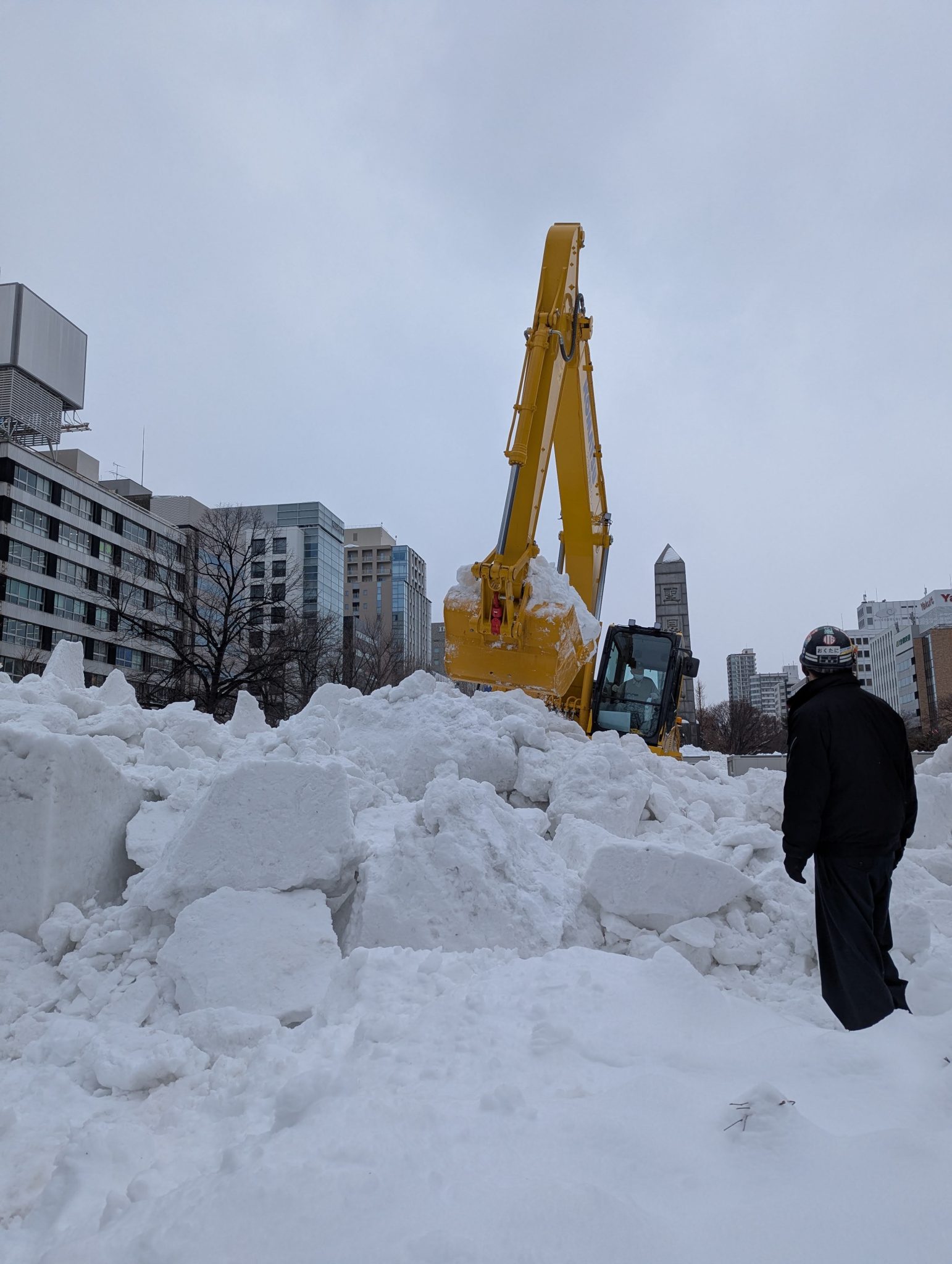 There were rumours that the Japanese are ultra efficient when it comes to the tearing down of the Sapporo Snow Festival. The Sister and I didn’t believe it but once we arrive at the Odori Site, or what’s left of it. We are now believers. What was once massive ice sculptures not just 18 hours ago are now just piles of snow! Talk about efficiency! It’s wild to me that the amount of effort and care that goes into building such elaborate and beautiful snow sculptures are so quickly and ruthlessly taken down so quickly! The Sister and I even get to witness a buldozzer demolishing one of the last remaining structures. And I have to admit, its almost as interesting and entertaining as any of the acts and shows of the actual snow festival itself!