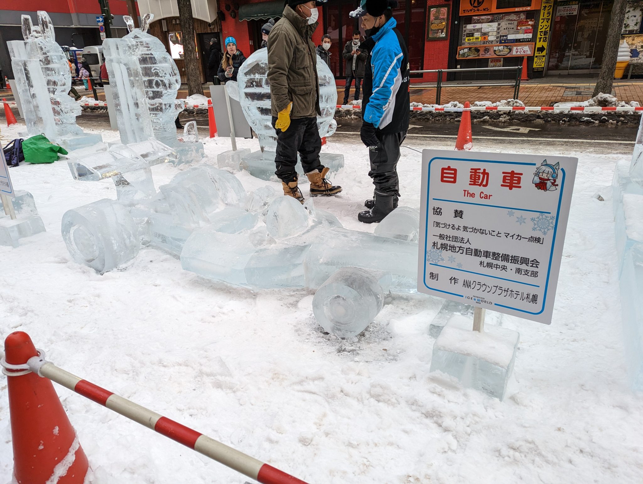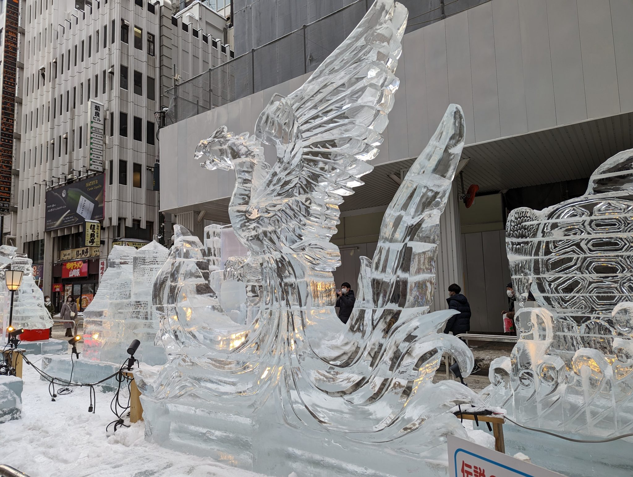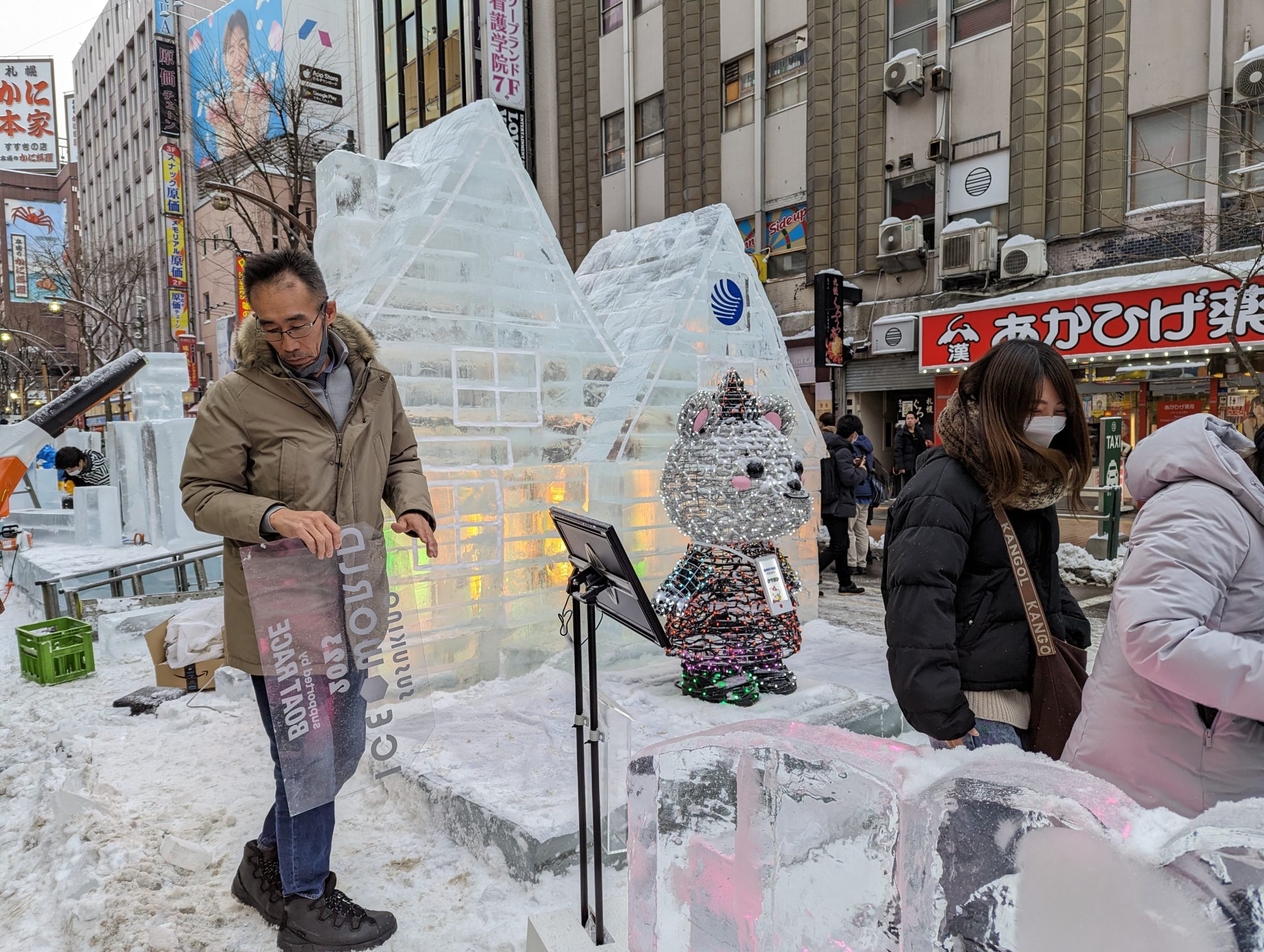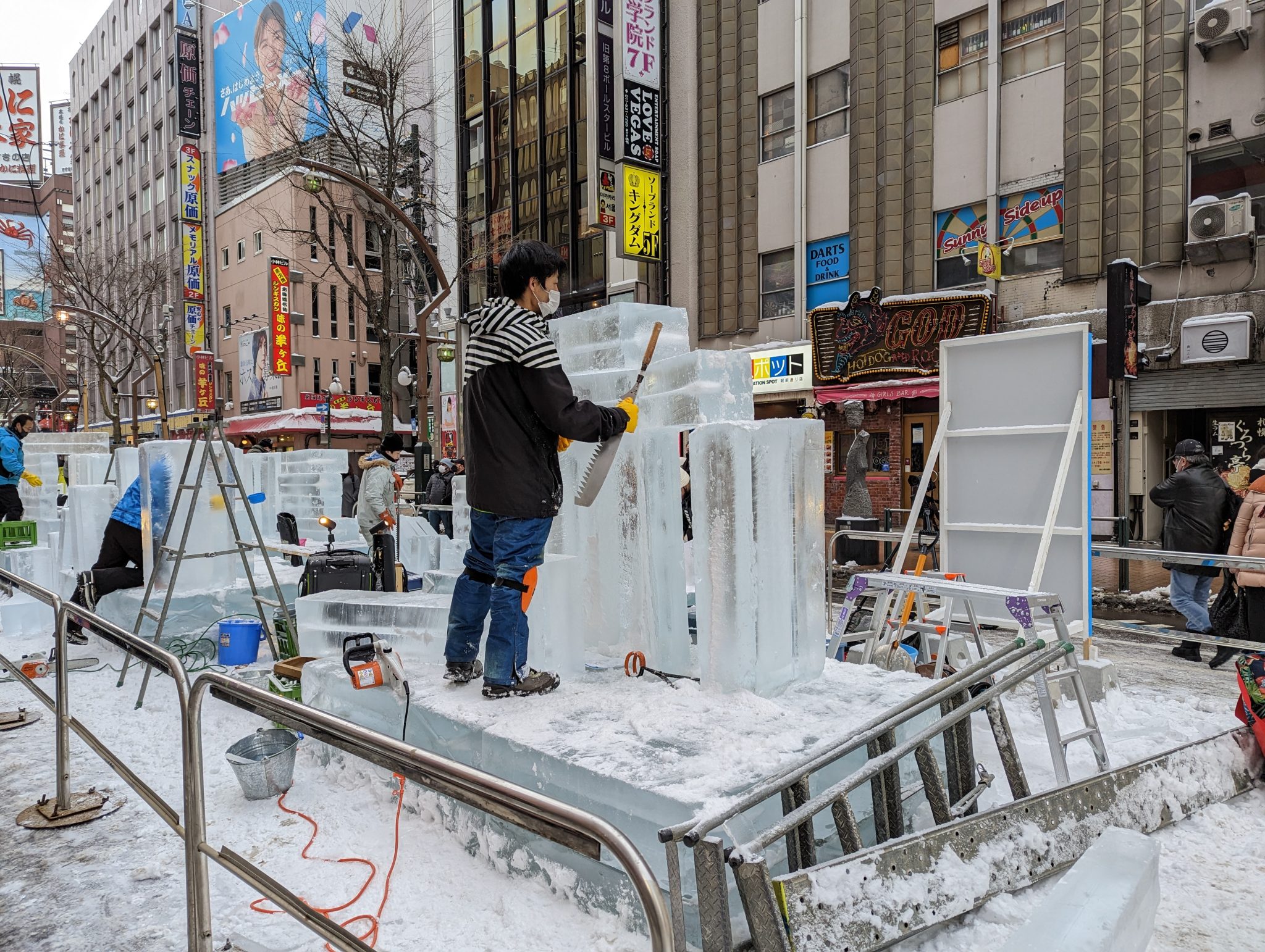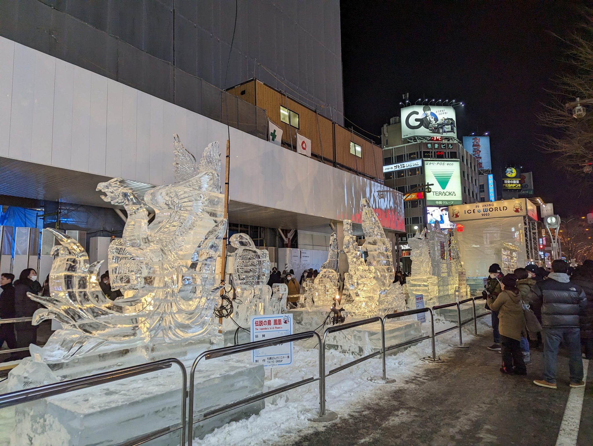 After leaving McDonald’s I wander over to the Susukino Site. This site is the home to all the Sapporo Snow Festival Ice Sculptures. There are some fairly elaborate sculptures on display here. There are also some that raise an eyebrow or two as well! I think what’s cool about visiting the Susukino site, is that you still see some of the sculptures being worked on. So you get to see some of the carvers exercise their craft for all to see!