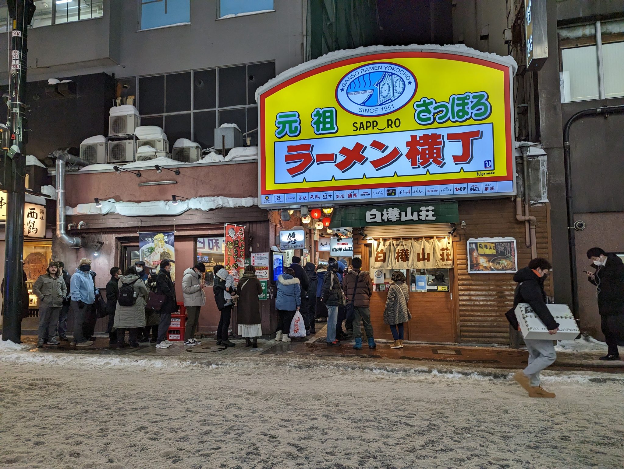 After walking the full loop around the Odori Site, I start to think about food. I make my way towards Ramen Alley. This is a famous alley in Sapporo that is home to over 15 Ramen shops in a very small space. What’s crazy is that almost all of them have fairly long lines to get in. Not having done much research about which specific store to go into. I line up for one that looks to have a reasonable line.