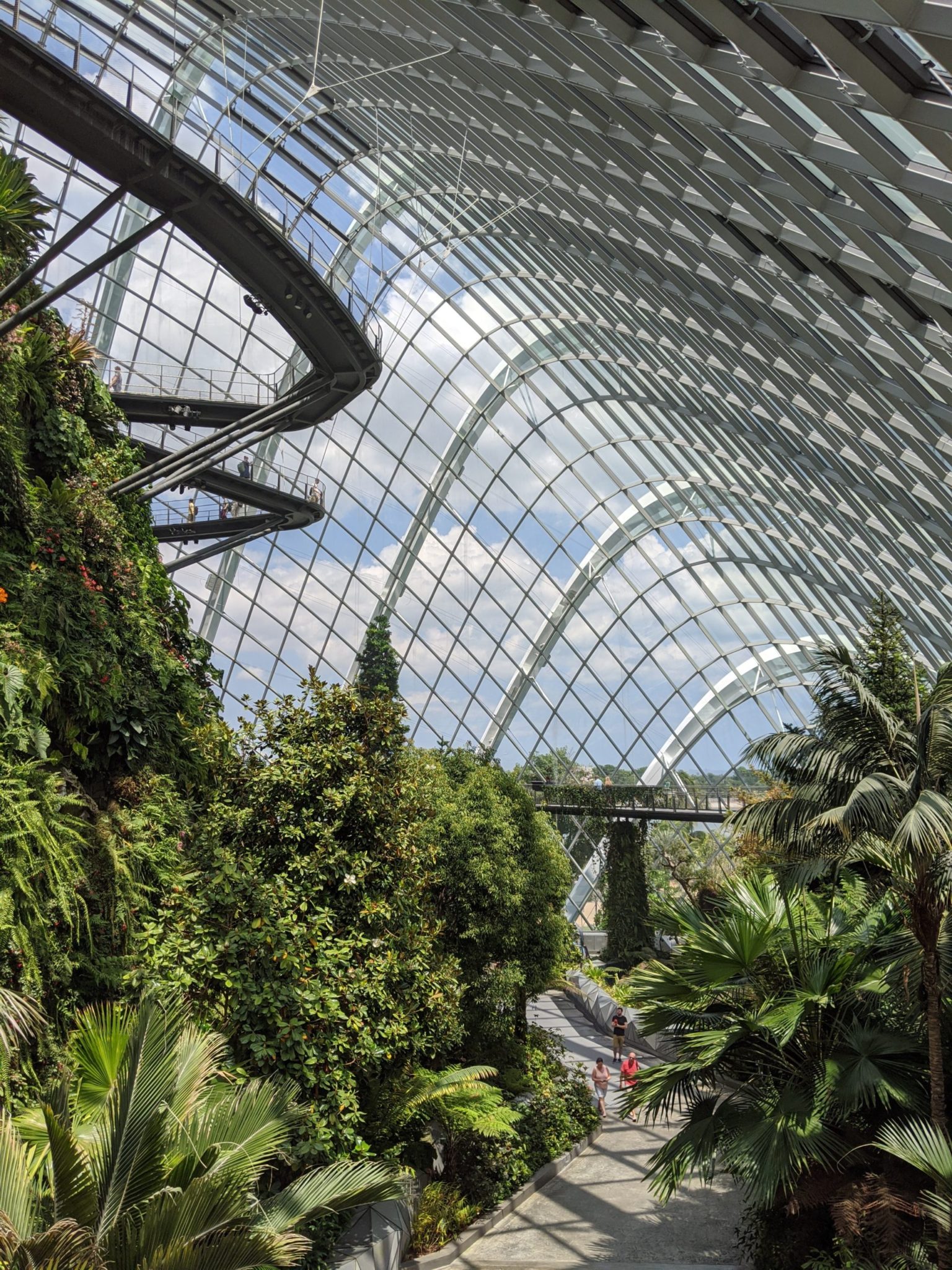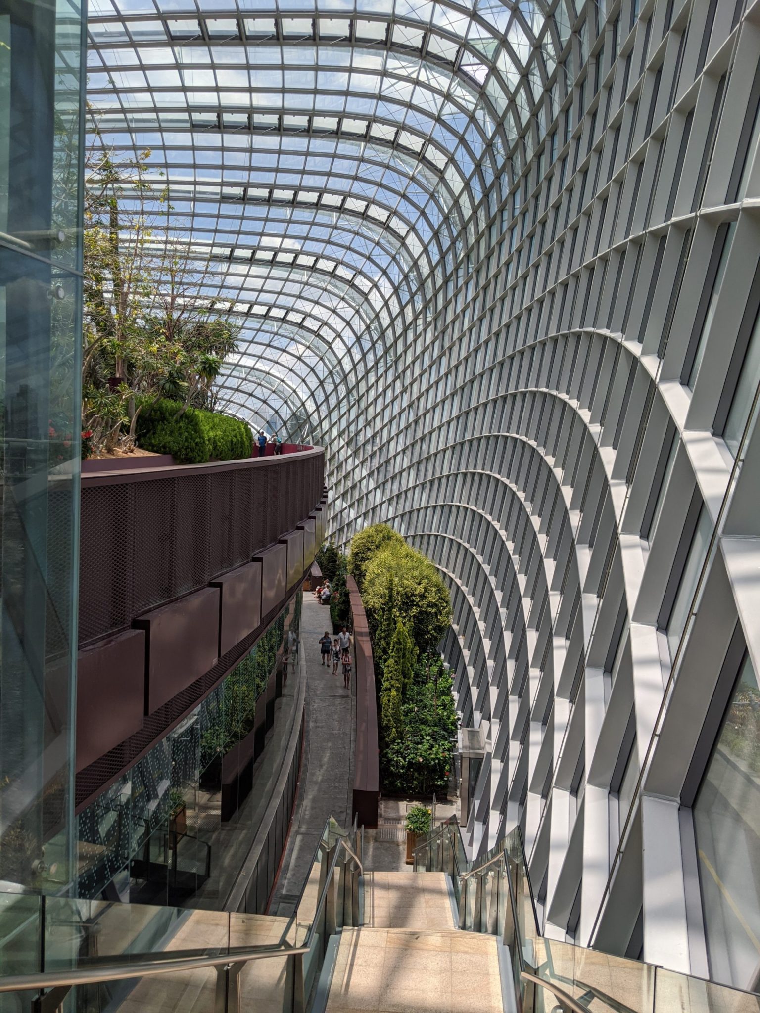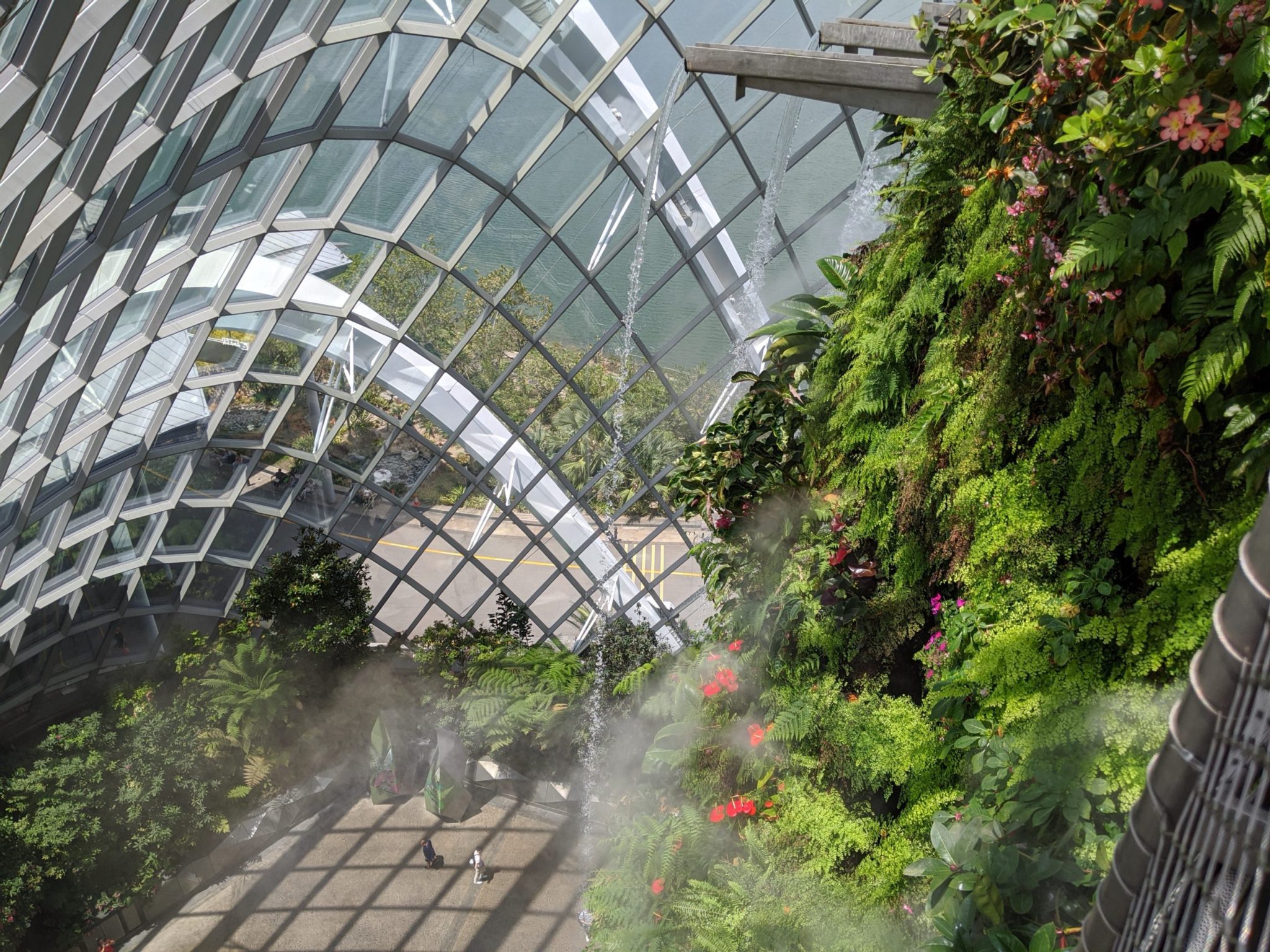 After walking around the base, I took an elevator to the top of the waterfall and made my way through the different paths down. Its truly remarkable some of the climate that this building can produce despite the heat of Singapore.
