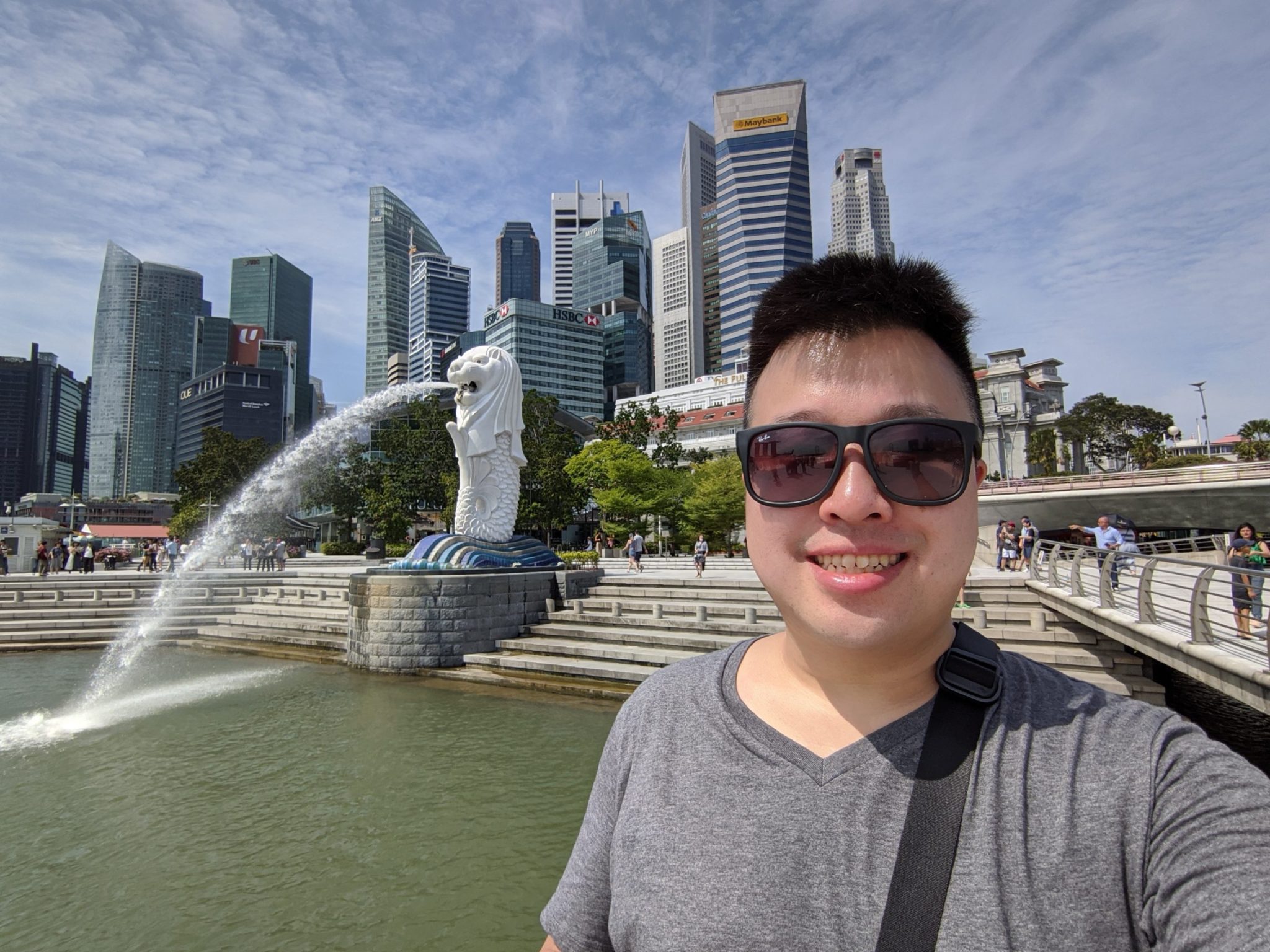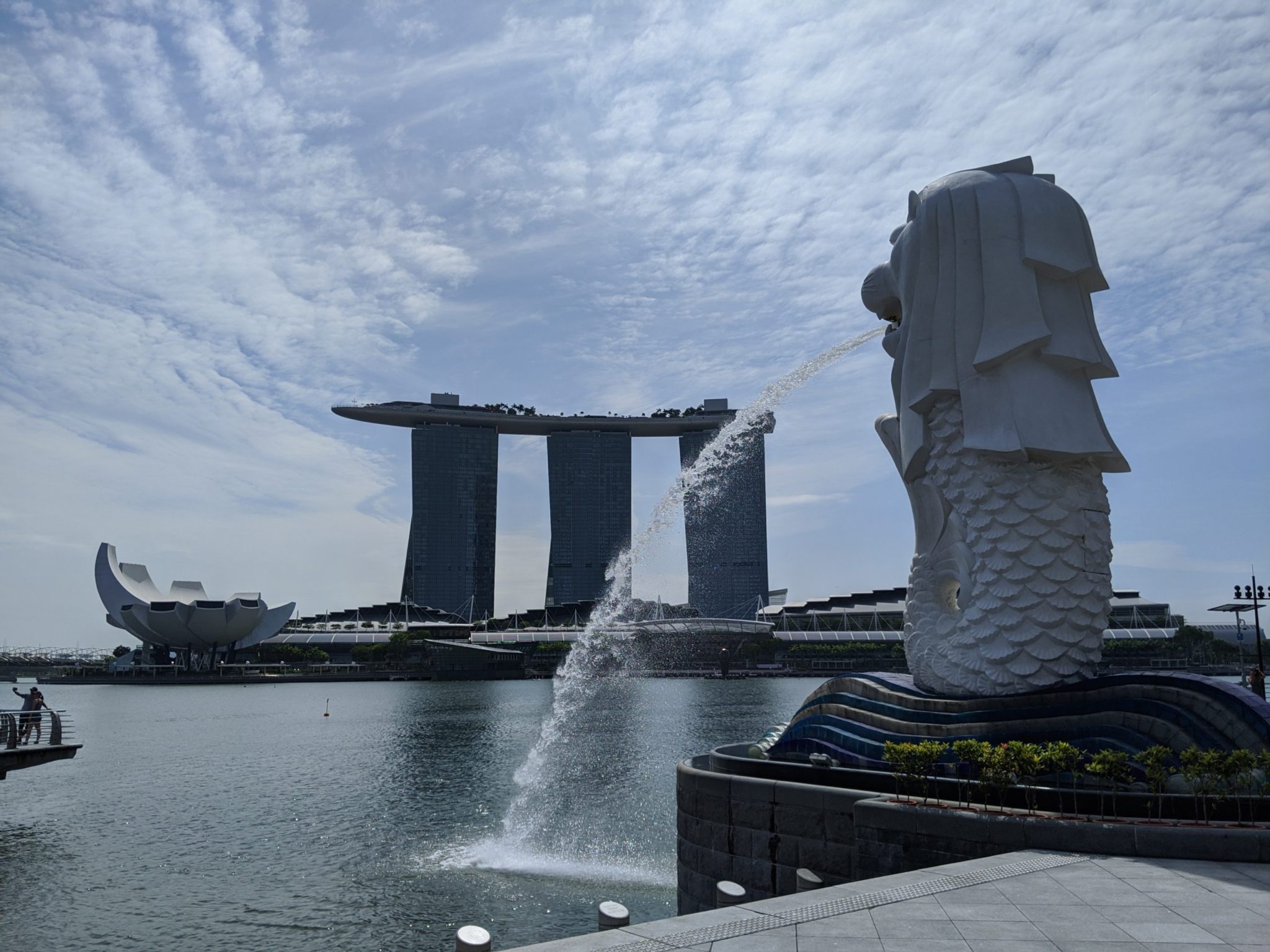 Once the river opens into the bay, I walked along the side of the bay until I ended up at the Merlion. The Merlion is considered a mascot of Singapore and is a statue of a fish body with a lion head.