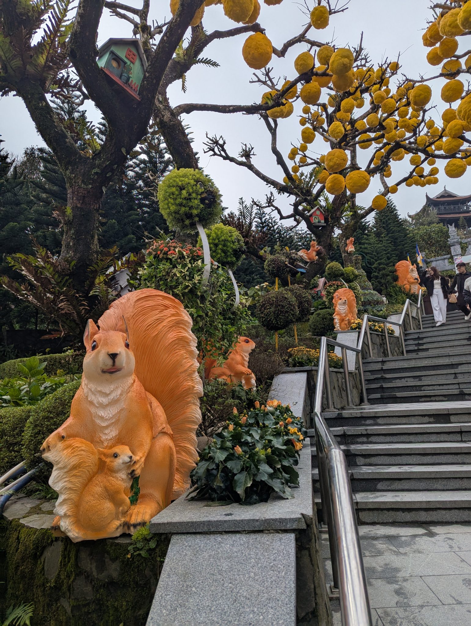 Nearby to the swing ride is a path that leads to the Ba Na Hills Summit. It’s also an area of Sun World that’s deemed the “Spiritual” area of the park. There’s a collection of different shrines, monasteries and temples along the path. At first the Sister and I anticipated a more serious tone to this part of the park. However, as with all things at Sun World we soon realize that there is an element of randomness even to this part of the park. As statues of turtles, squirrels, and monks line the path to the top. Even the buildings are replicas of actual spiritual buildings and you soon realize that none of it is actual real, let alone serious. I’m starting to get a grasp of this place!