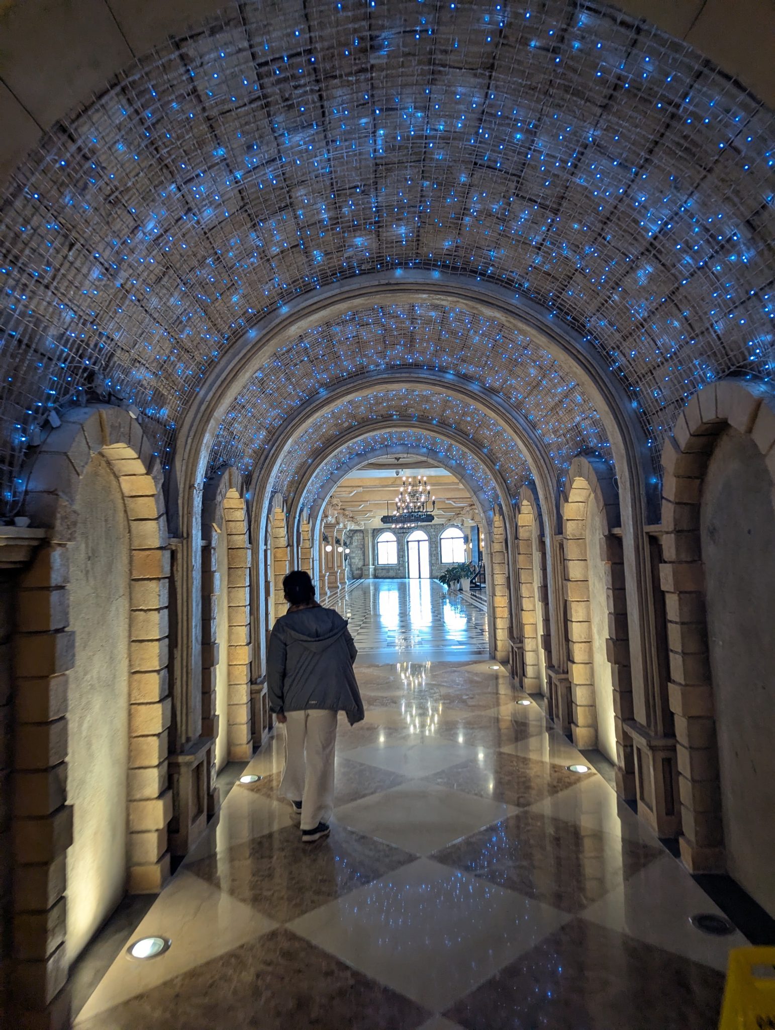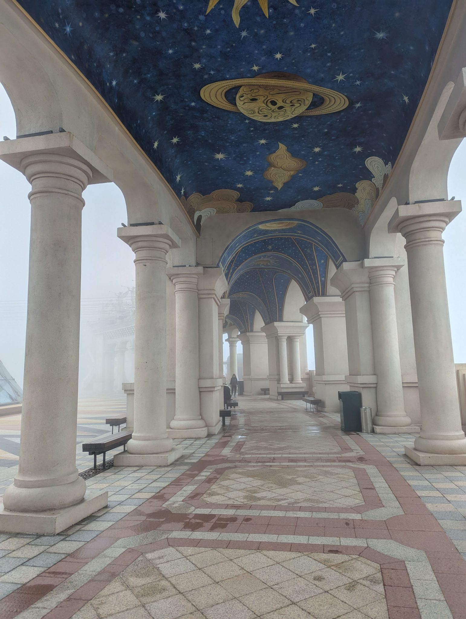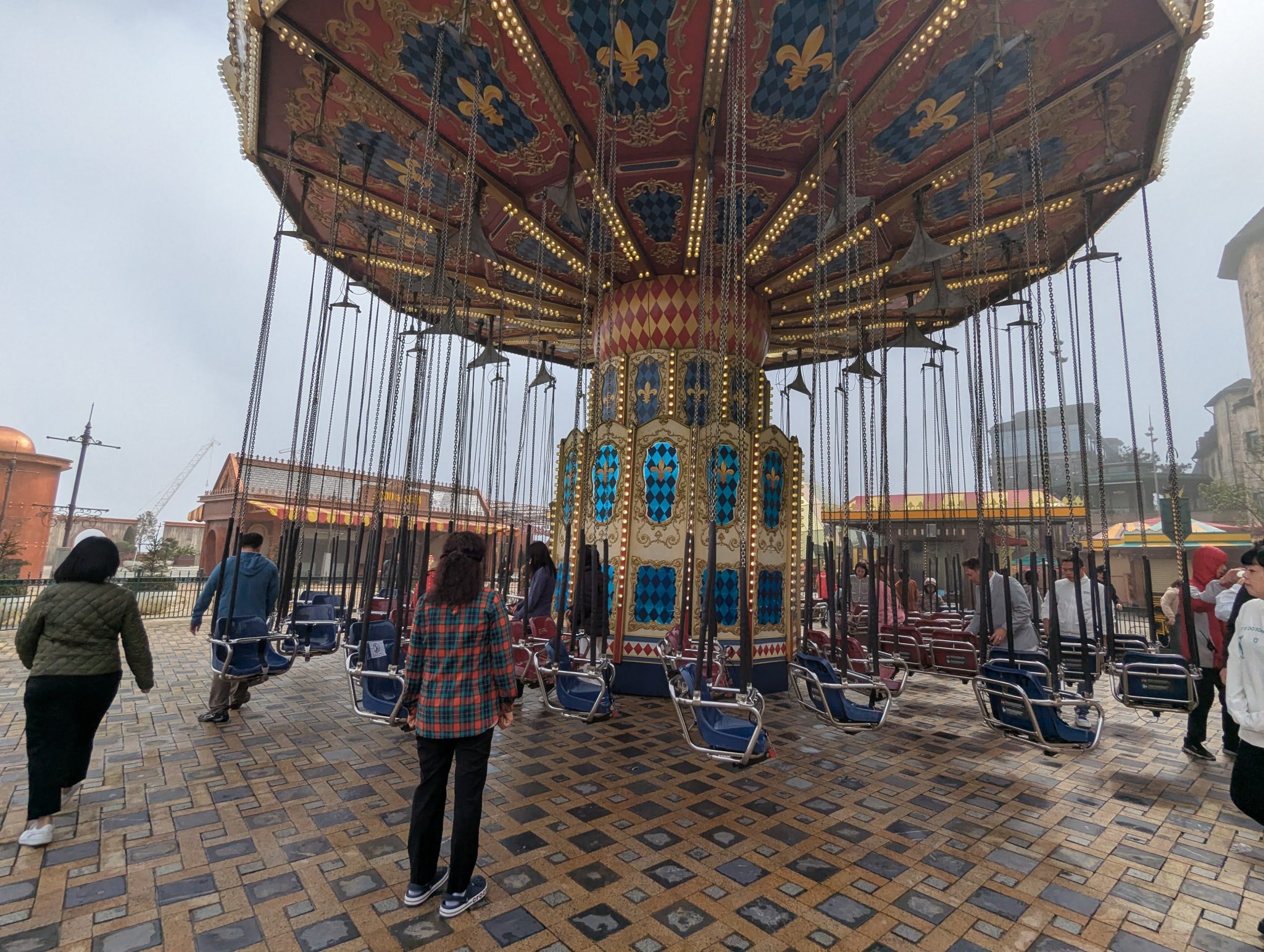 From the pop mart store we continue on our Journey towards Eclipse Square. It’s this very elaborate plaza which actually looks beautiful! But I’m not entirely sure what its meant for. This particular area looks to generally be a gathering point. If you move beyond this area towards Luna Castle, you’ll see some greenery and eventually a booth or two that could be used for retail or food. But Overall this area looks to simply be a nice artistic space. On the day of our visit, it’s also quite foggy which adds an additional sense of mystery to the square which I happen to quite enjoy!
