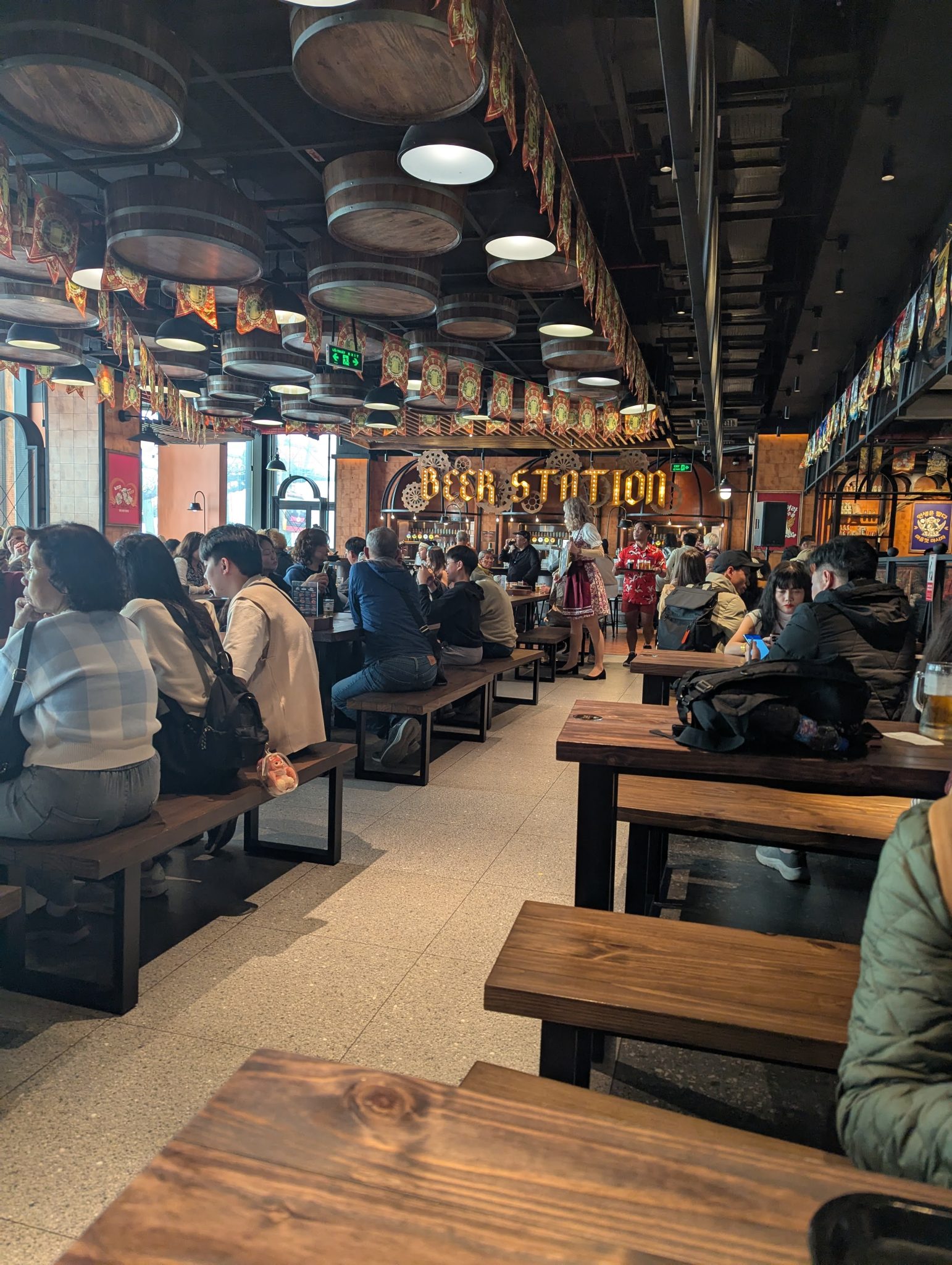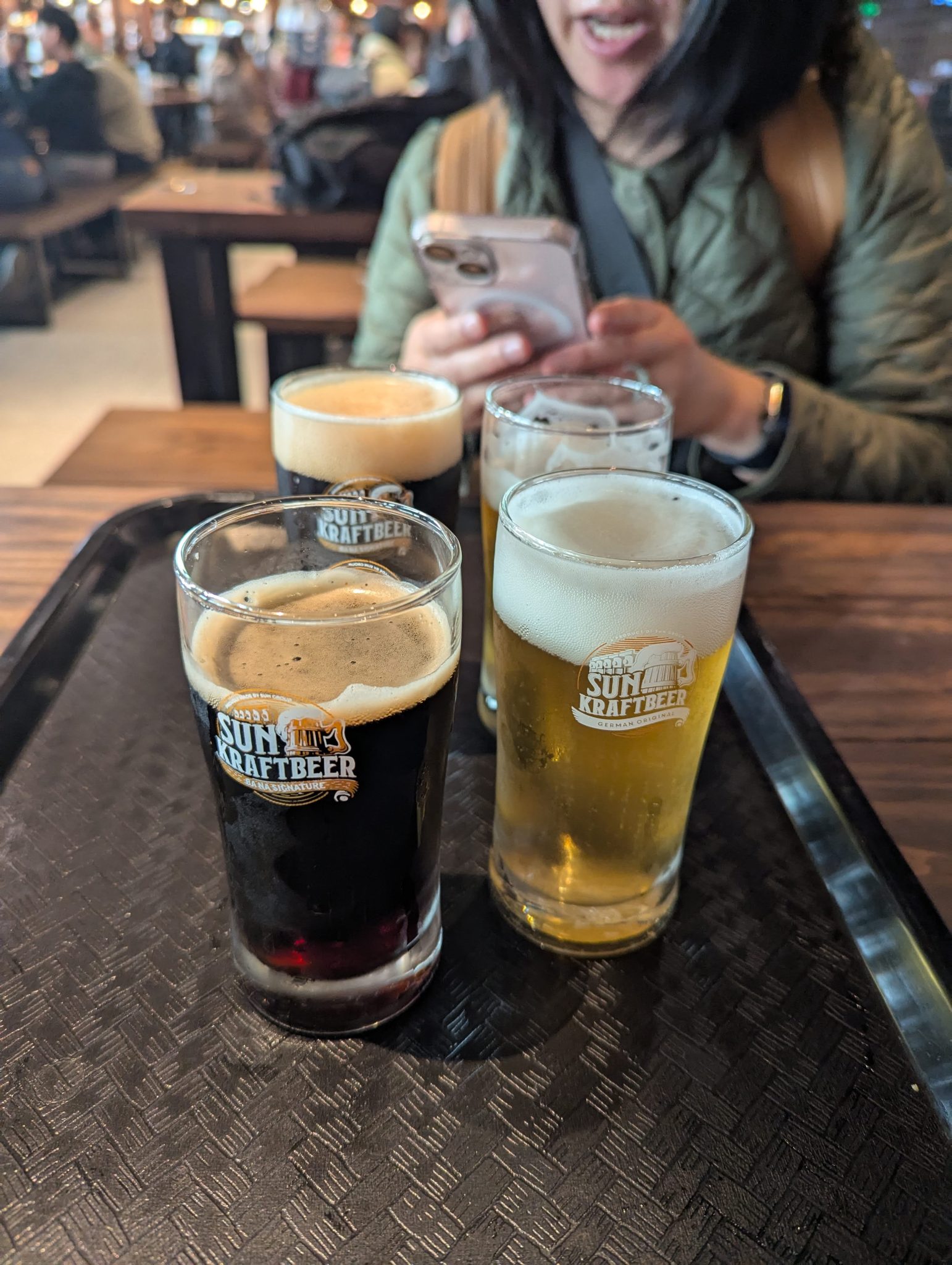At this point the Sister and I needed a drink. Thankfully as part of our admission, Sun World gives you two free samples of their Suncraft beer! So we make our way back to the French Village where a section of it seems to be dedicated to Suncraft Beer as “Beer Plaza“. It seems odd there’s a whole area that’s focused on alcohol where even a ride is beer themed. We head into the main brew hall and find a seat and redeem our free drinks. It must be the complimentary drinks but the entire hall is packed so it kind of makes it a pretty festive atmosphere!