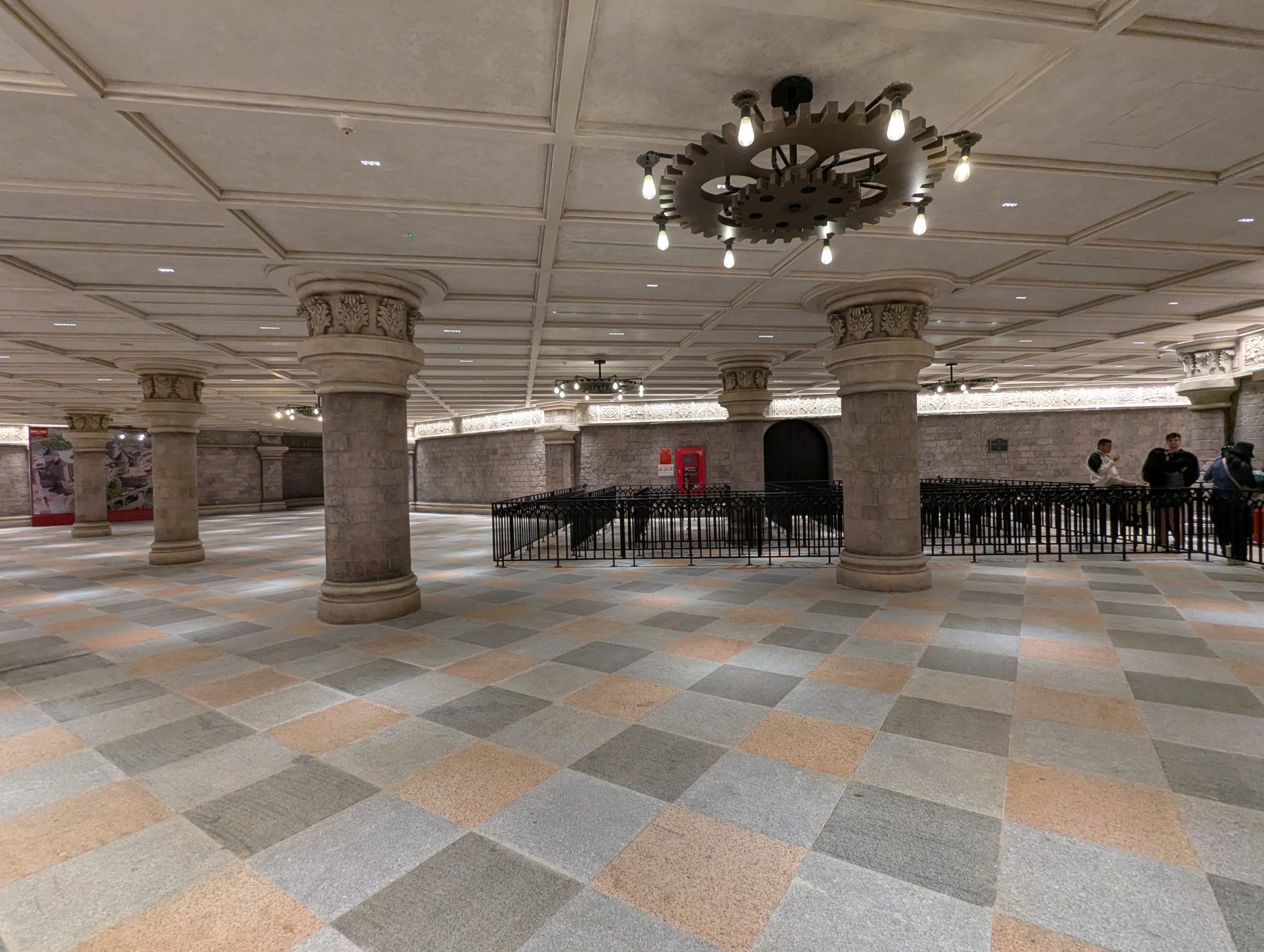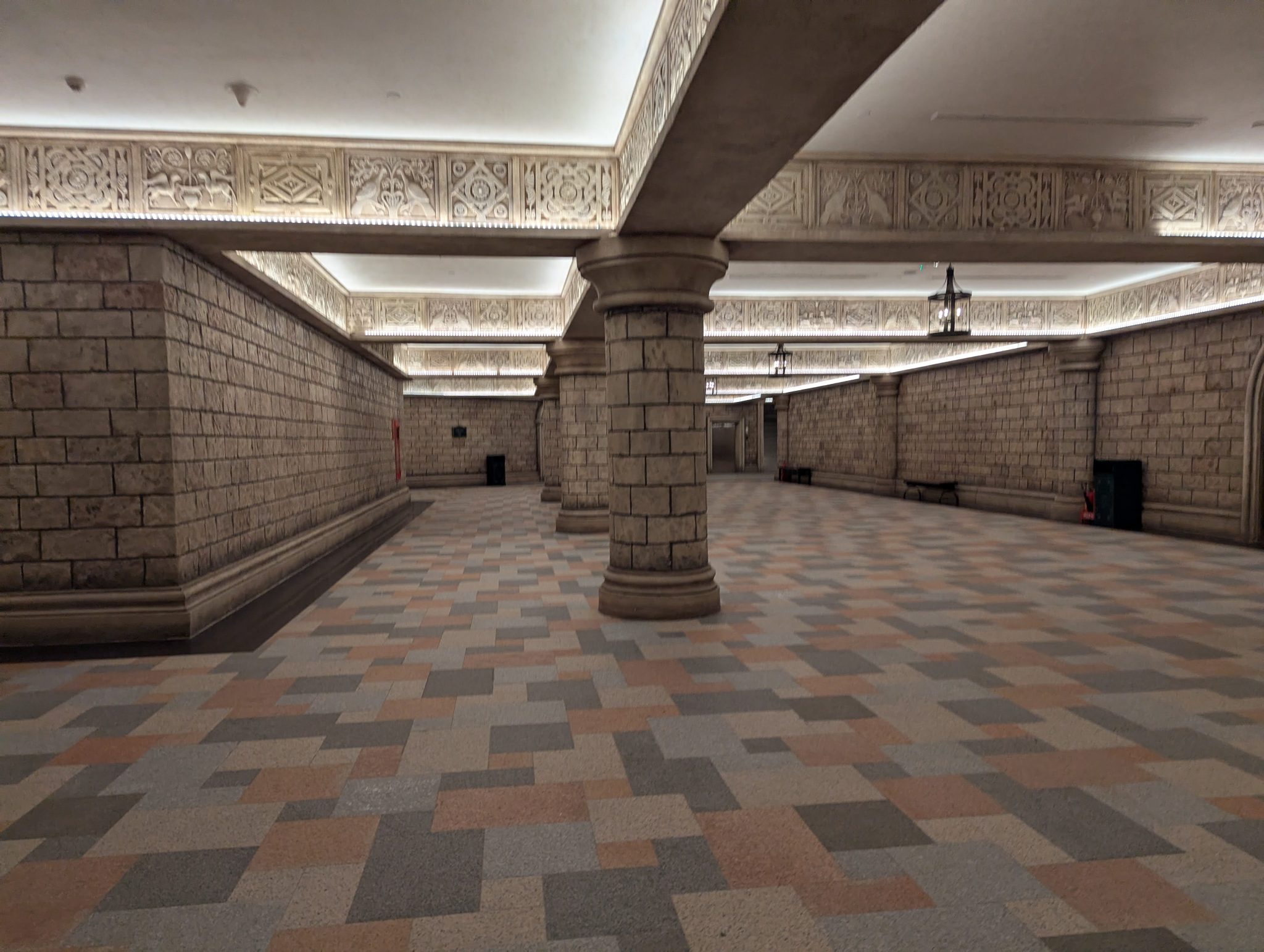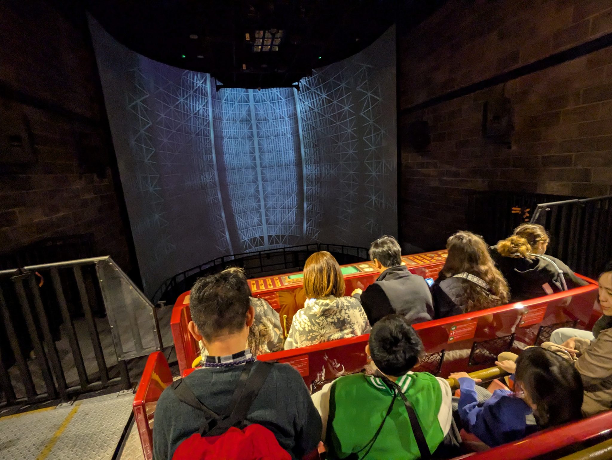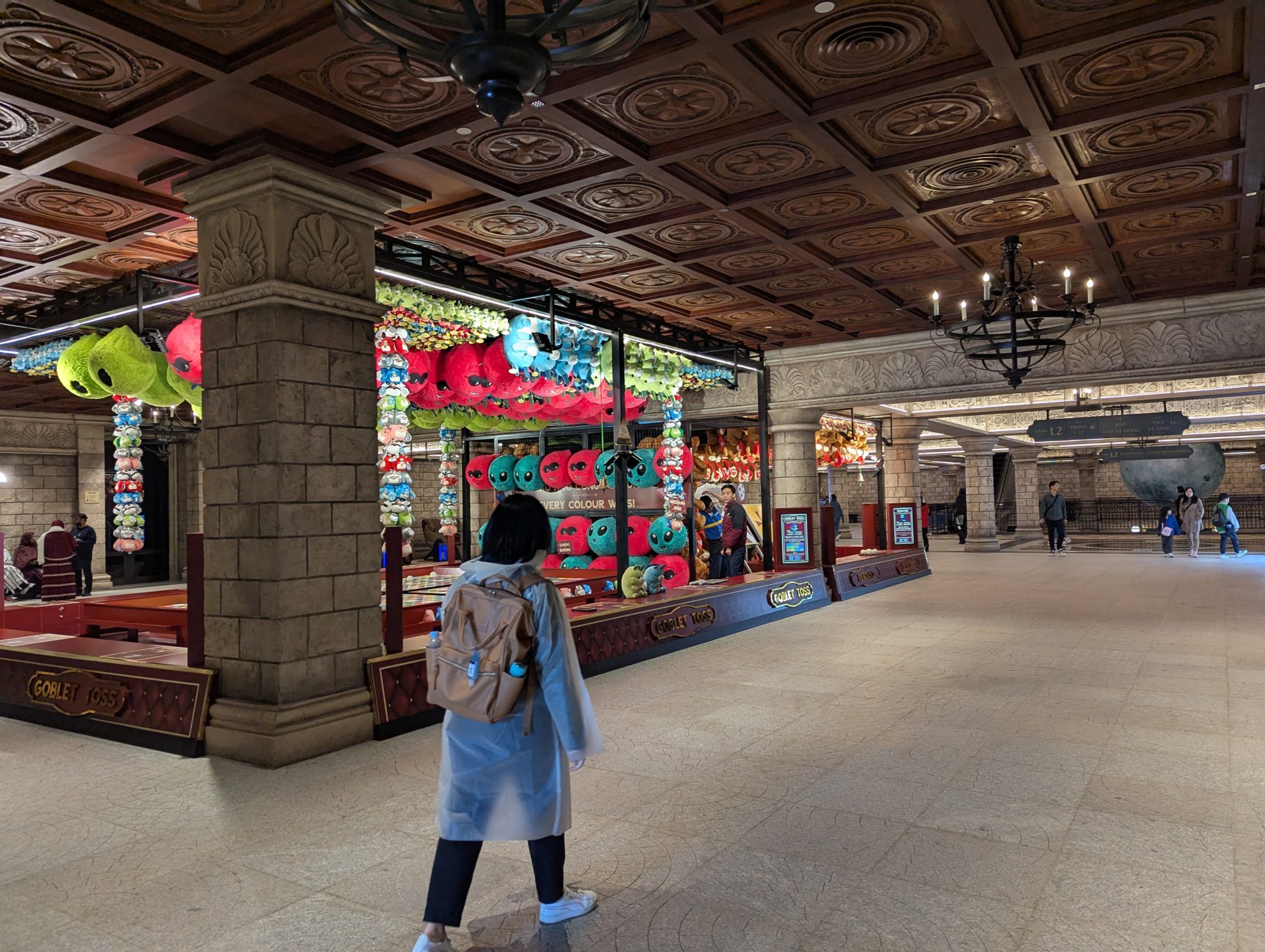 With great anticipation of entering the castle. I can only say that what we find inside only reinforces the general theme of the day. “This place makes no sense”. The first thing we see is a carnival game in the lobby of the castle. Where you would expect some kind of grand ball room or entry way you get games and coin operated massage chairs. Then there are these huge swaths of empty unused space all over the interior of the castle. There are two big theatres, a 4d theatre showing a German animated short and an airship theatre which is moving platform with a screen. That’s about all that’s inside this castle. For something SO GRAND looking on the outside, the inside is so not what I expected it to be. Which, at this point, really feels par for the course.