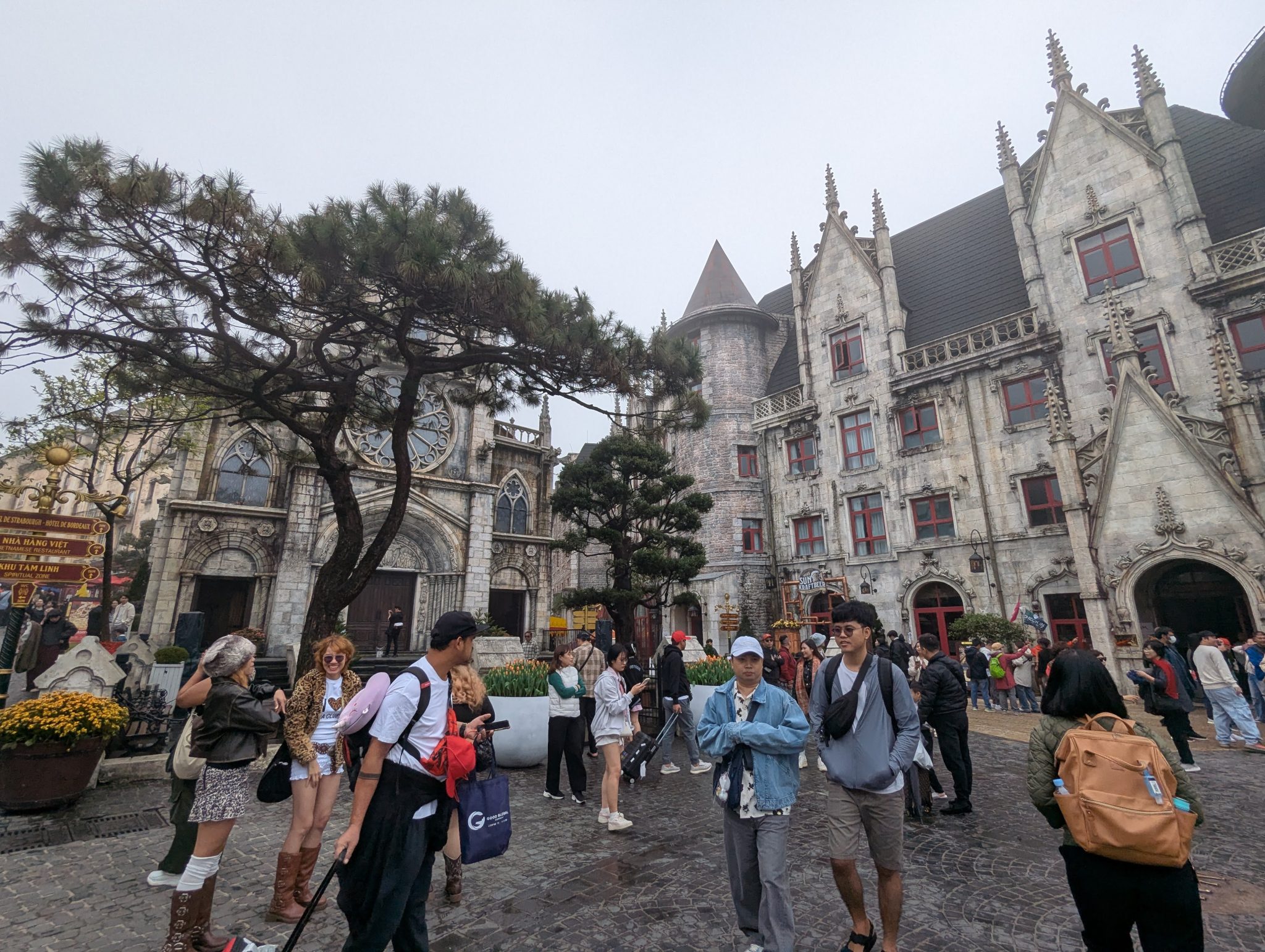 Upon disembarking from the cable car, I’m very surprised to find myself in Sun World’s French Village. I had seen some pictures of this in my initial research, but I didn’t expect it to be this elaborate. It’s literally an entire European town built at the top of a hill in Vietnam. It’s very elaborate and very detailed but there’s still pockets of random art that doesn’t quite fit with the European theme. I think its safe to say that The Sister and I spend our first few moments wandering the streets of the French village with a sense of amazement and bewilderment. There’s a lot of asking each other “what is going on?” or “why is this here?” But its also an oddly satisfying experience because its so unique and so unexpected!