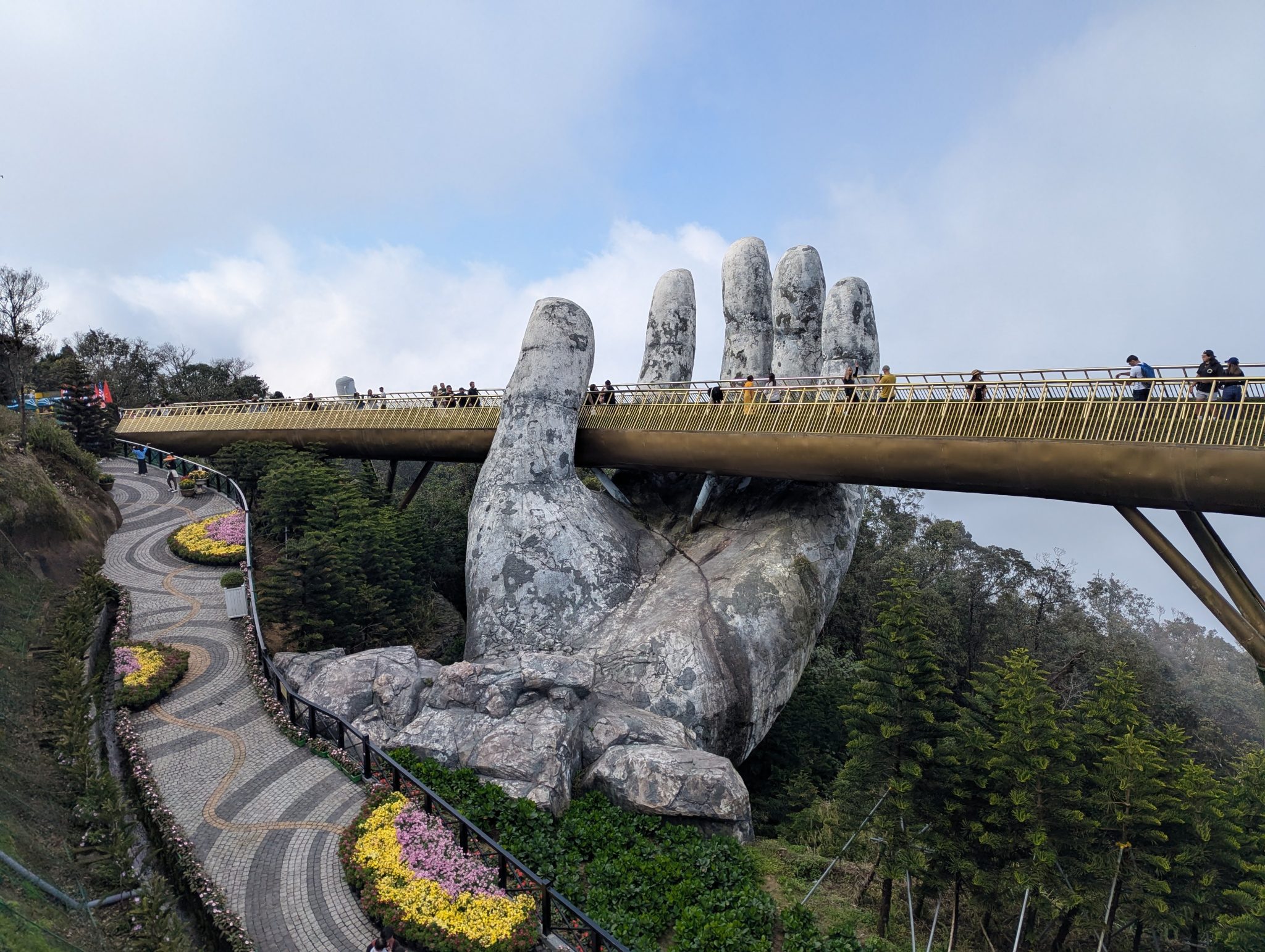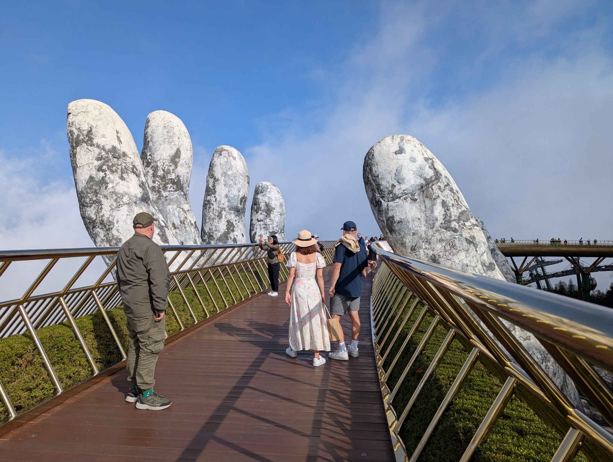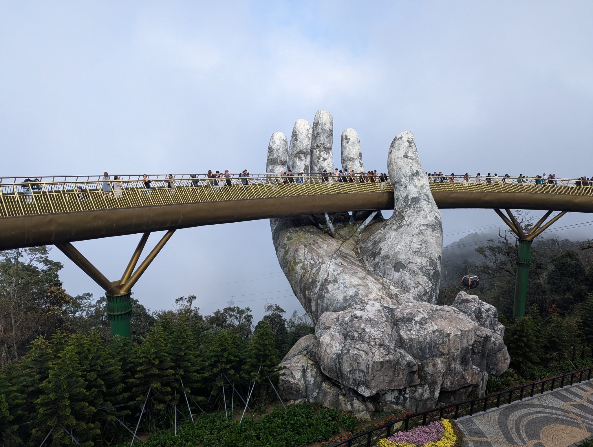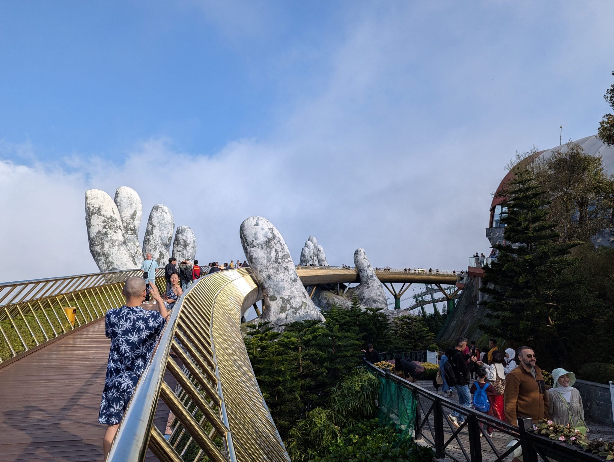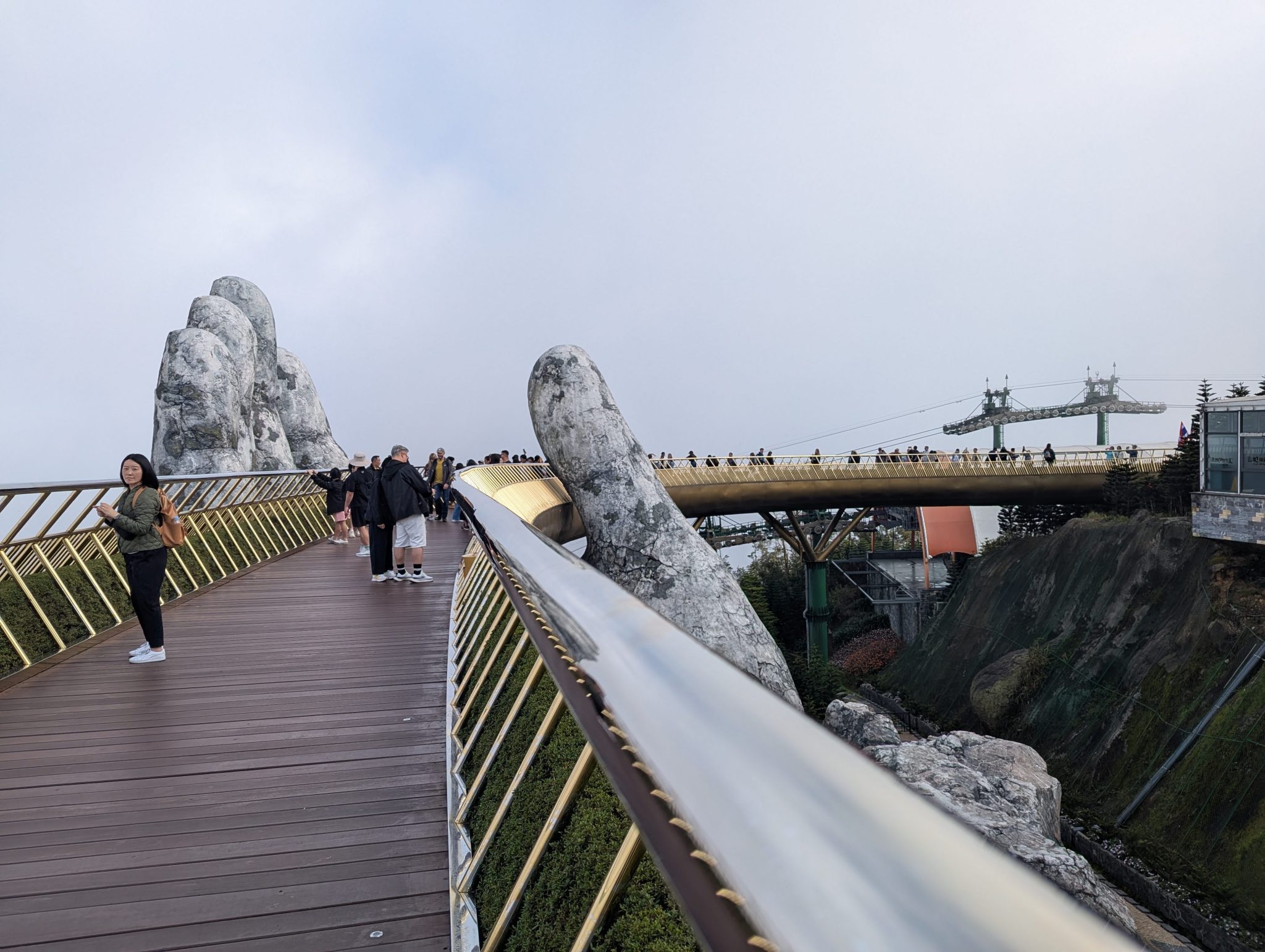 After some drinks, its finally time for us to visit the Golden Bridge. We hop on a cable car and head the peak where the bridge is. There’s a crowd, but the bridge comes as advertised. The bridge is made from a gold-like metal and two concrete hands are holding it up. It’s obviously unnatural, very unique, clearly touristy and very weird. The hands look like they jut out from the mountain and really don’t belong! Personally I’m glad to experience attraction and feel like it aligns with the overall theme of the amusement park. However, I think the entire experience of the park is much more valuable than just the bridge itself. I think a lot of people come just for the bridge. But I actually enjoy the park as a whole more simply from the randomness and the confusion and bewilderment that stems from it! So for others that would be my recommendation: Come for bridge, stay for the park!