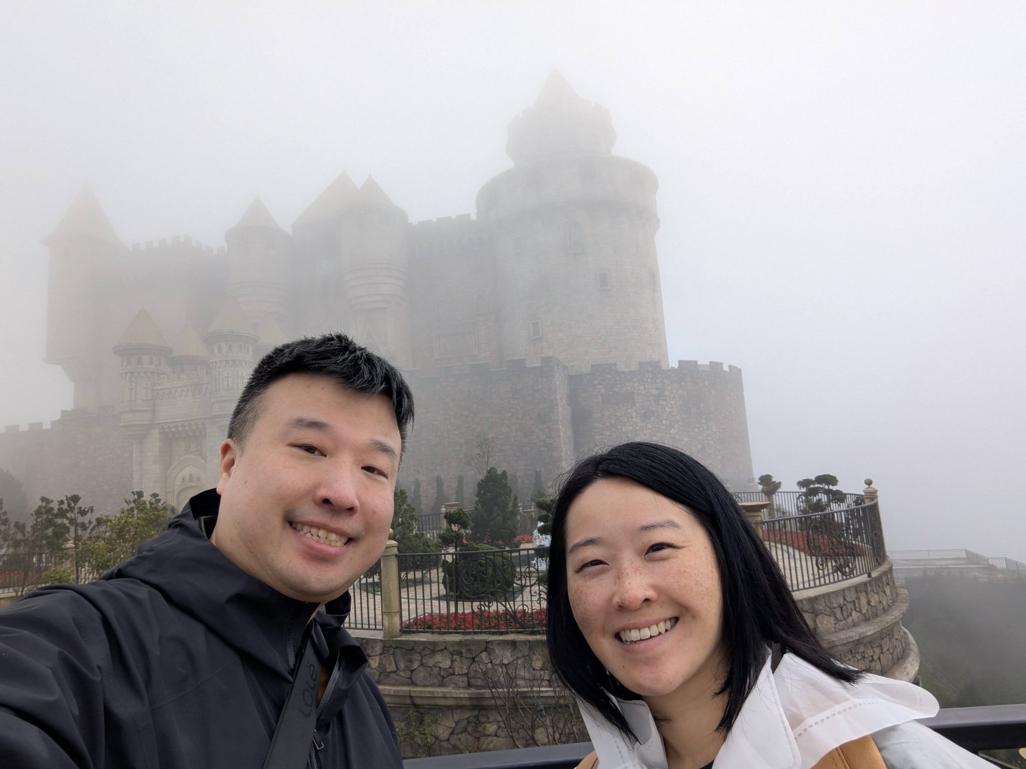 Today we are heading to Sun World Ba Na Hills. It’s a a huge Vietnamese amusement park and originally our main purpose is to visit the Golden Hands Bridge. But after doing a bit more research, we realize that there’s a lot more to the park than just the bridge. So we’re excited to check it out today. After a hearty hotel breakfast we hop into a Grab car for the hour long journey from Hoi An to Ba Na Hills.