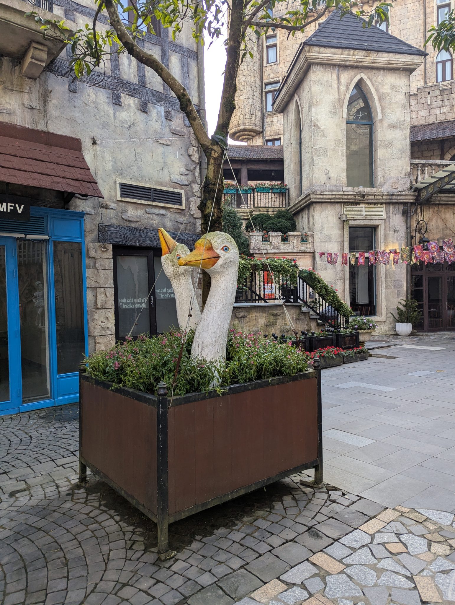 After lunch we continue exploring this wild and wacky place. We head towards this huge looking castle which has this cool anime character perched atop. As we get closer we realize that the castle itself is a huge Pop Mart store. I’m not a big Pop Mart person myself, but the mix of this very current cultural store inside a very medieval looking castle needs to be checked out! So we spend a little time exploring this multi floor store. I didn’t end up buying anything but overall this store simply adds to the theme of the pure randomness of this entire Sun World experience!