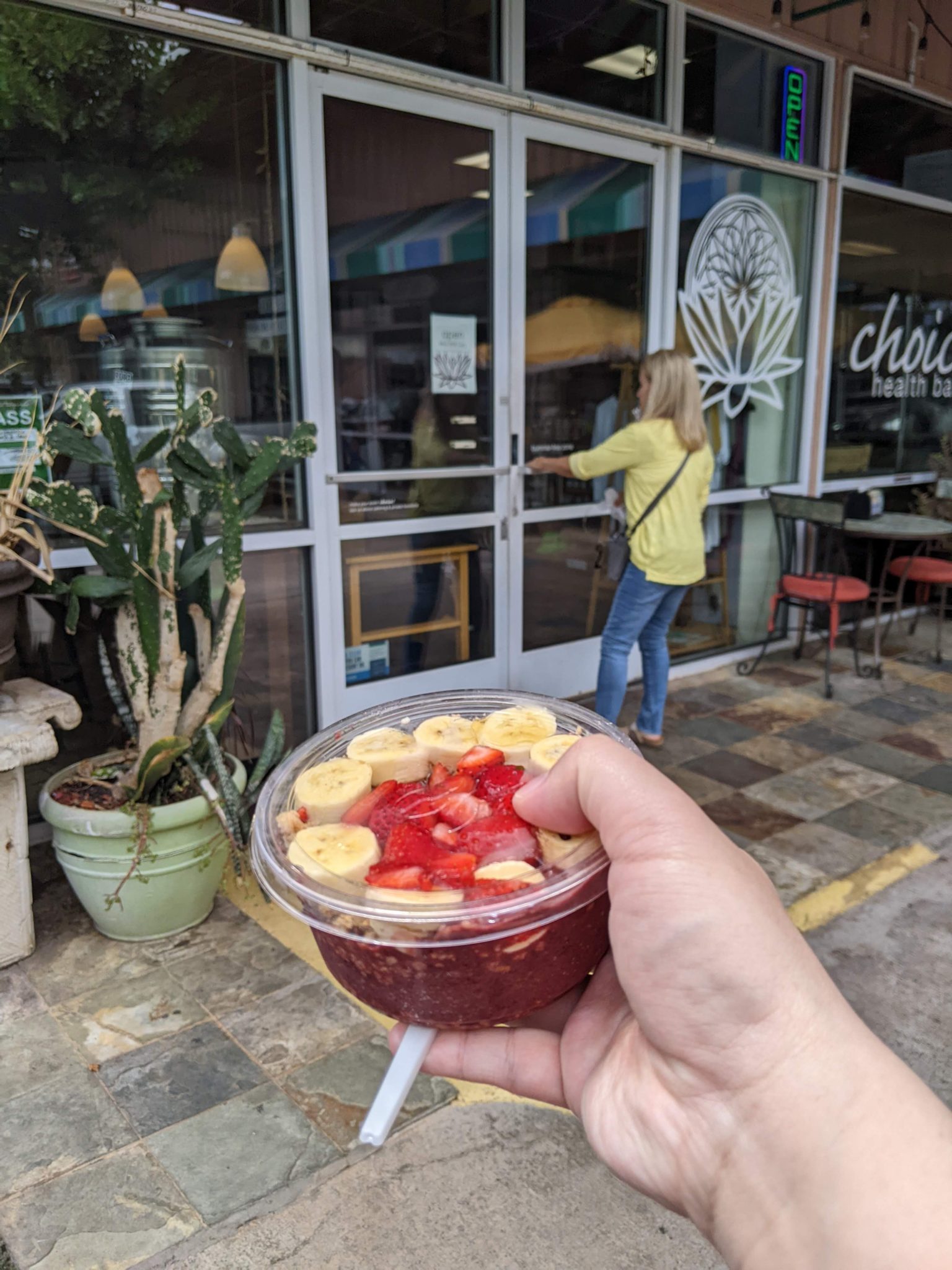 Almost like we didn’t just stuff our faces with food, our next stop is Choice Health Bar. This is another place on our list for good Acai bowls, so I guess you could call this dessert! We each get our own Acai bowls to take back to our AirBnB where we proceed to devour them pretty quickly!