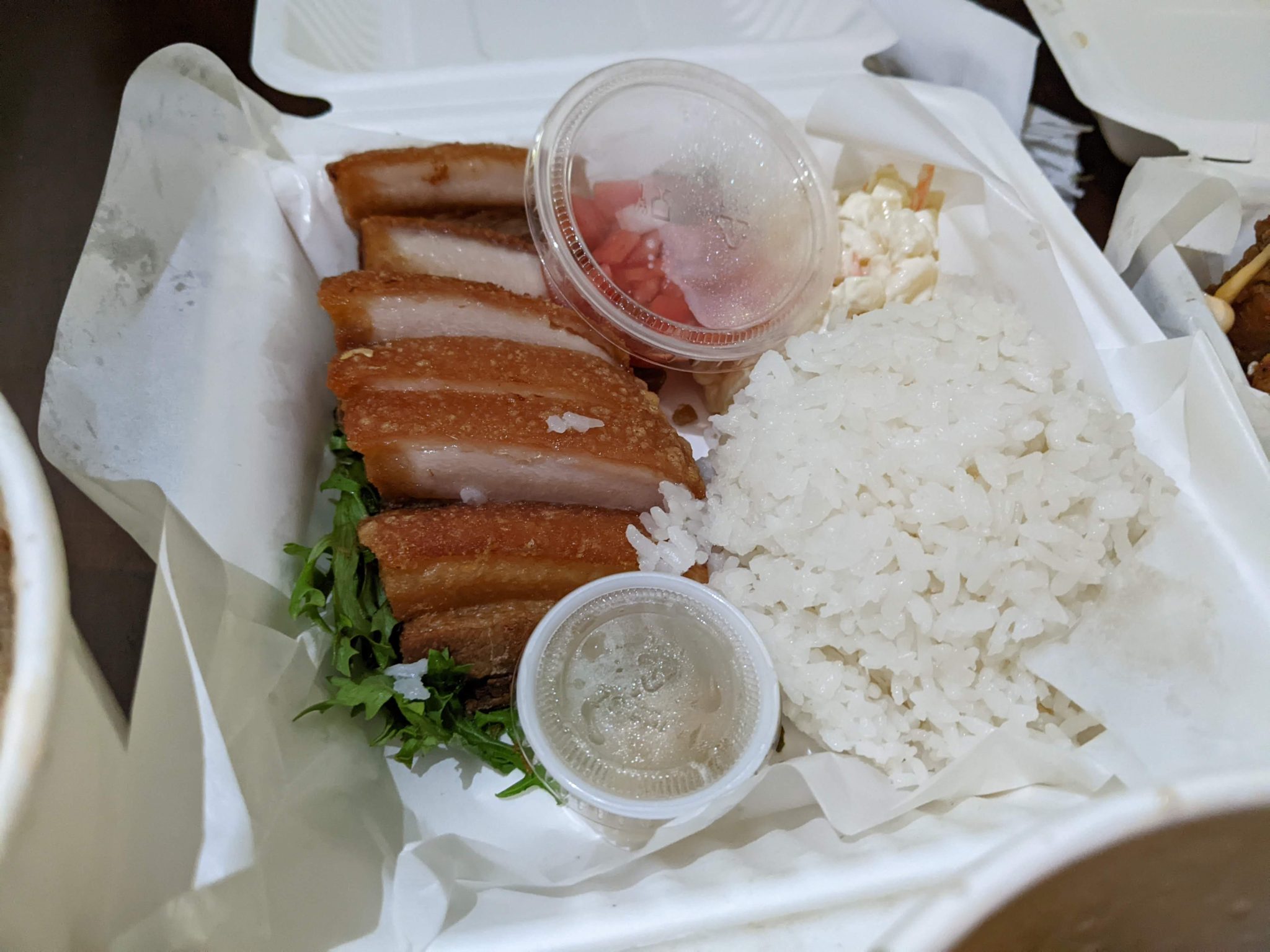 While none of the restaurants in Lahaina jumped out at us that evening, we did head north to pick up some food from Joey’s Kitchen in Napali. This is a filipino inspired restaurant with some pretty stellar food offerings. For the group we end up with an order of clams, another loco moco, crispy pork belly, garlic chicken and island fish in coconut milk. Sadly the clams were quite sandy, but everything else was pretty delicious!