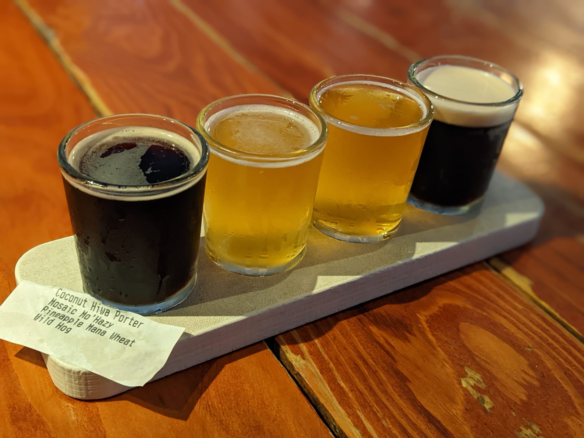 Eventually we all start stirring ready for the late afternoon adventures! Near our AirBnB is the Maui Brewing Company‘s Lahaina location. We decide to drop in for a bit of happy hour! We sample a few flights of their beers and share some flatbread. If the rest of our trip on Maui is going to consist of naps and happy hours, I could totally get used to this!