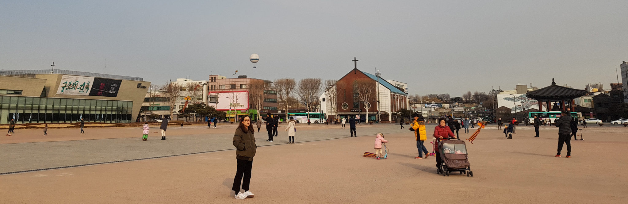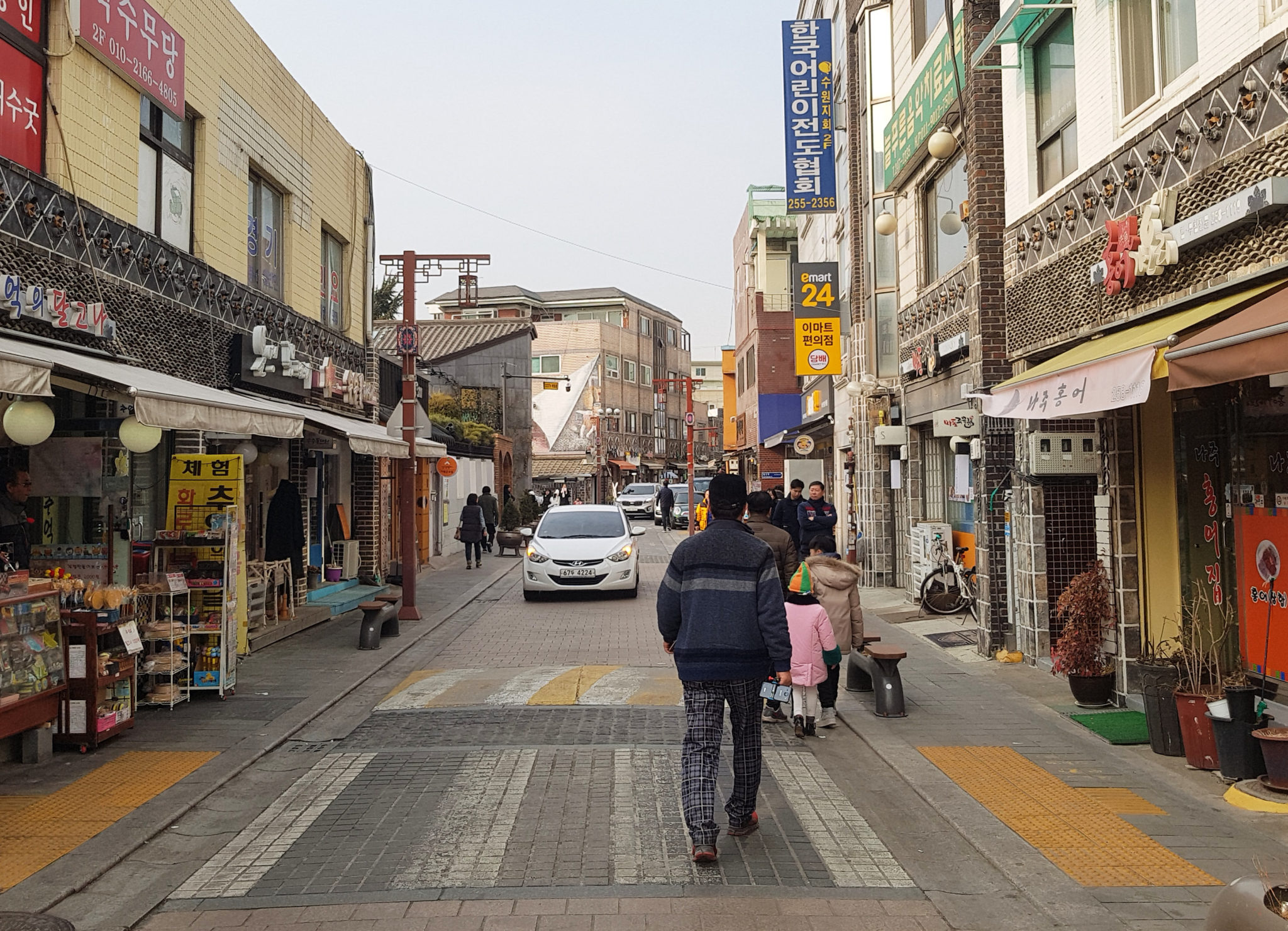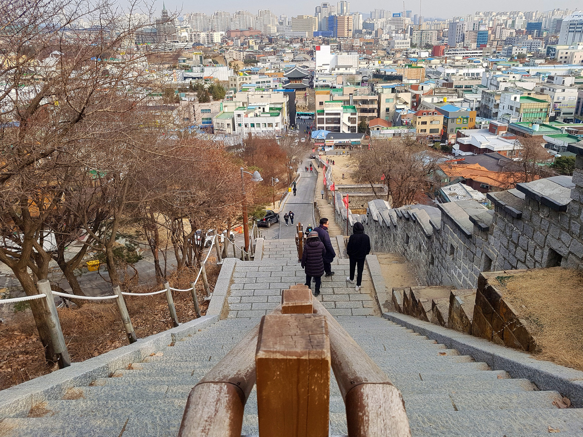 As we walked down the other side of the mountain, you could see that the wall cuts through the city and we were back into the center of Suwon.