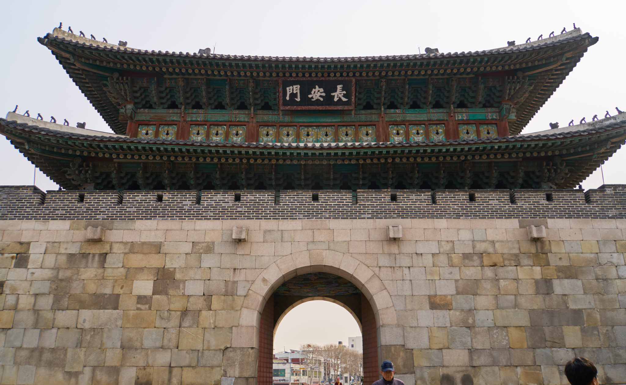 Many of the travel sites we looked at suggested a day trip out to this area to enjoy the well preserved city walls and the view from the top of the hill. When Suzy’s friend agreed to join us, we asked him to plan the day for us. We met him at a local bus stop, hopped on a southward bound bus for the 50 min drive to Suwon. The bus dropped us right in front of the Jangamun Gate which was super convenient.