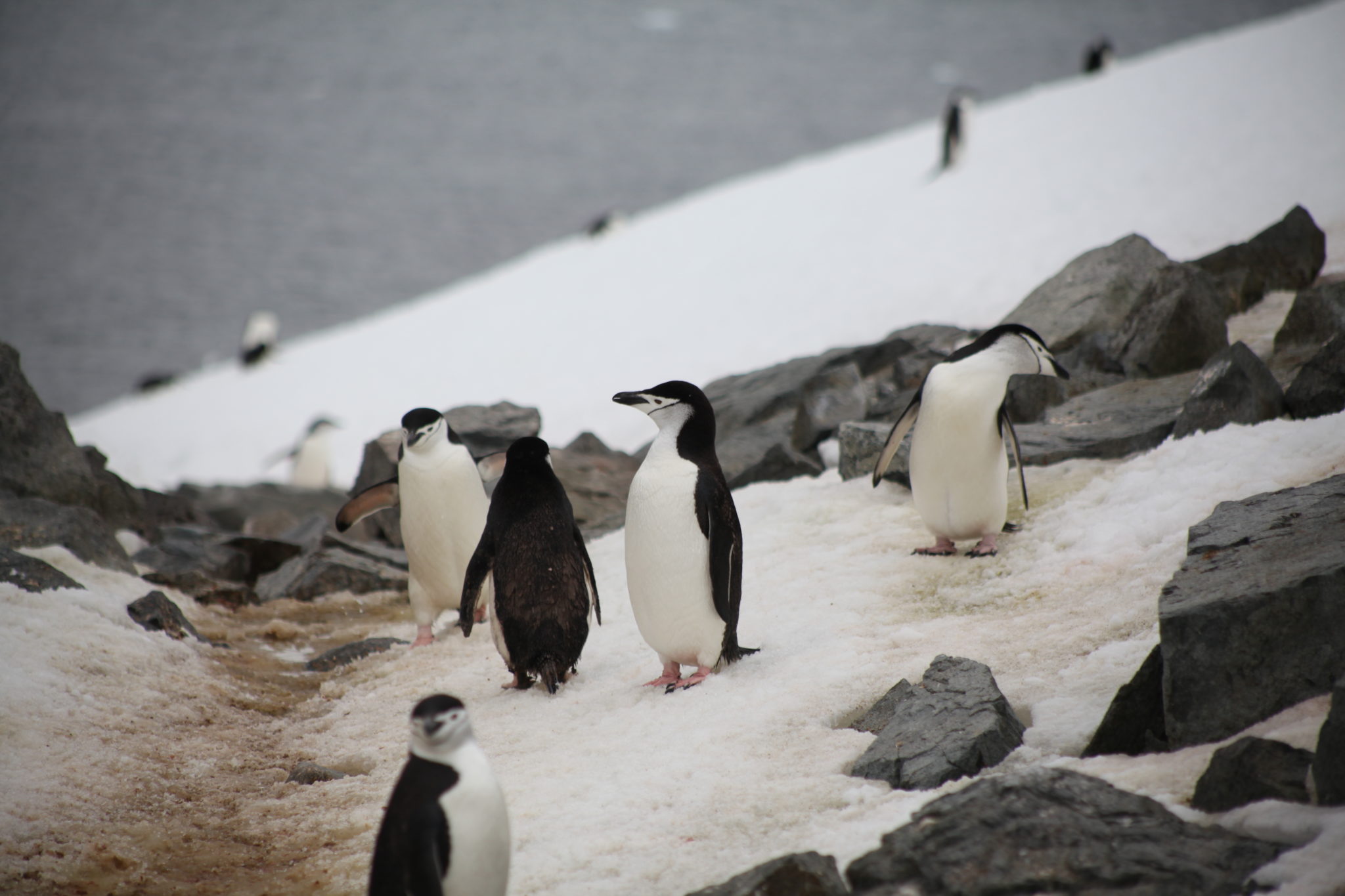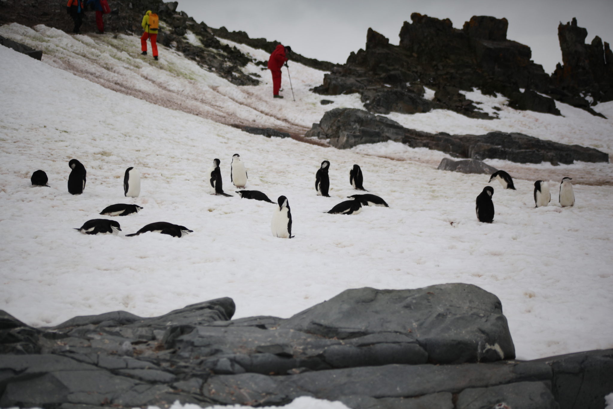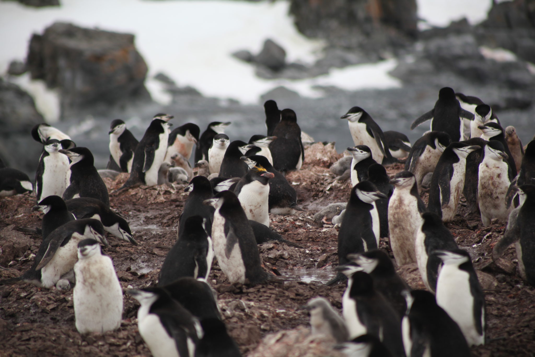 One of the really cool (sad?) stories that we got to see was the story of “Kevin” (lovingly named by our expedition crew). He is a single Macaroni penguin on Half Moon Island. Not totally sure how he got here, but apparently he waits for a mate to come to this colony each season. Maybe one day Kevin will find love, can you spot him in this pic?