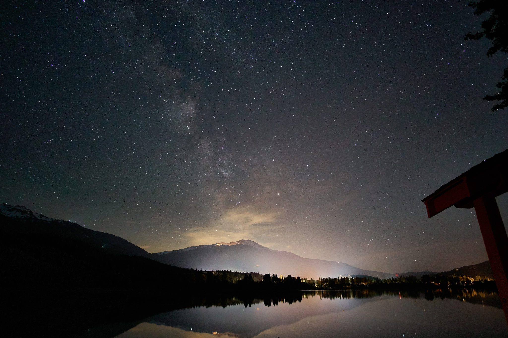As the night wore on, one of the things I wanted to do was take night photos in Whistler. It’s rare that I’m away from the city and being a bit more “remote” was a treat. So near midnight my sister and I drove to the other side of Green Lake and tried our hand at some night photography. We were able to get one or two good shots and were game to get more, but got spooked. First some rustling in the bushes caught our attention and immediately we thought “bear”? Then oddly another car pulled over near ours and we thought it best to jump back into ours. But it got weird because they just stayed in their car while we stayed in ours. Well they waited us out and we eventually left to return back to our place. At first we were a bit anxious but as we waited it was kind of curious and we were perplexed!