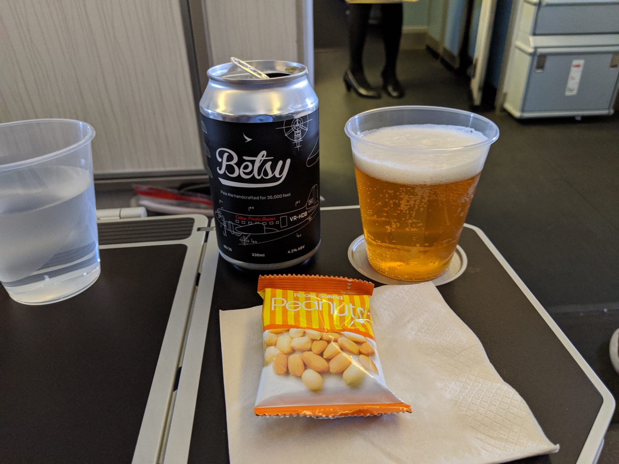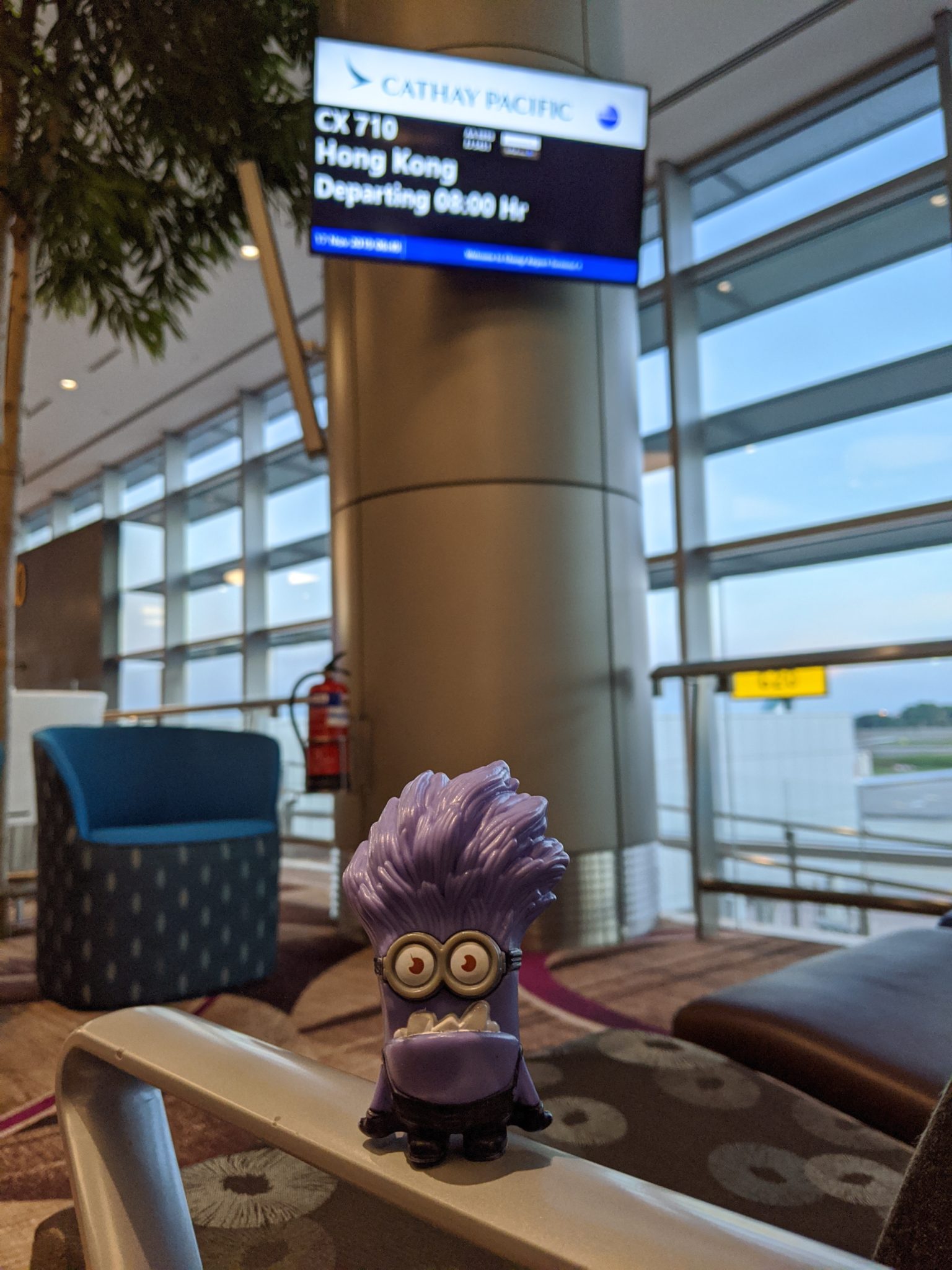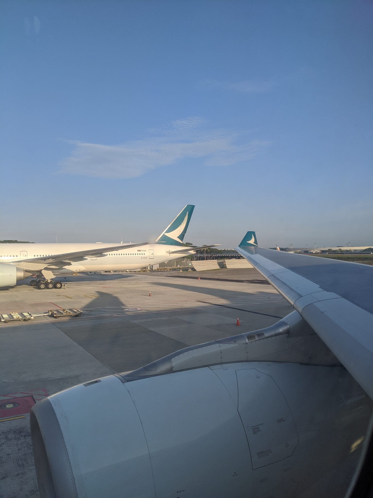 With a early morning flight to Hong Kong, I make my way to my gate where I’m again able to snag a comfy bulkhead seat.