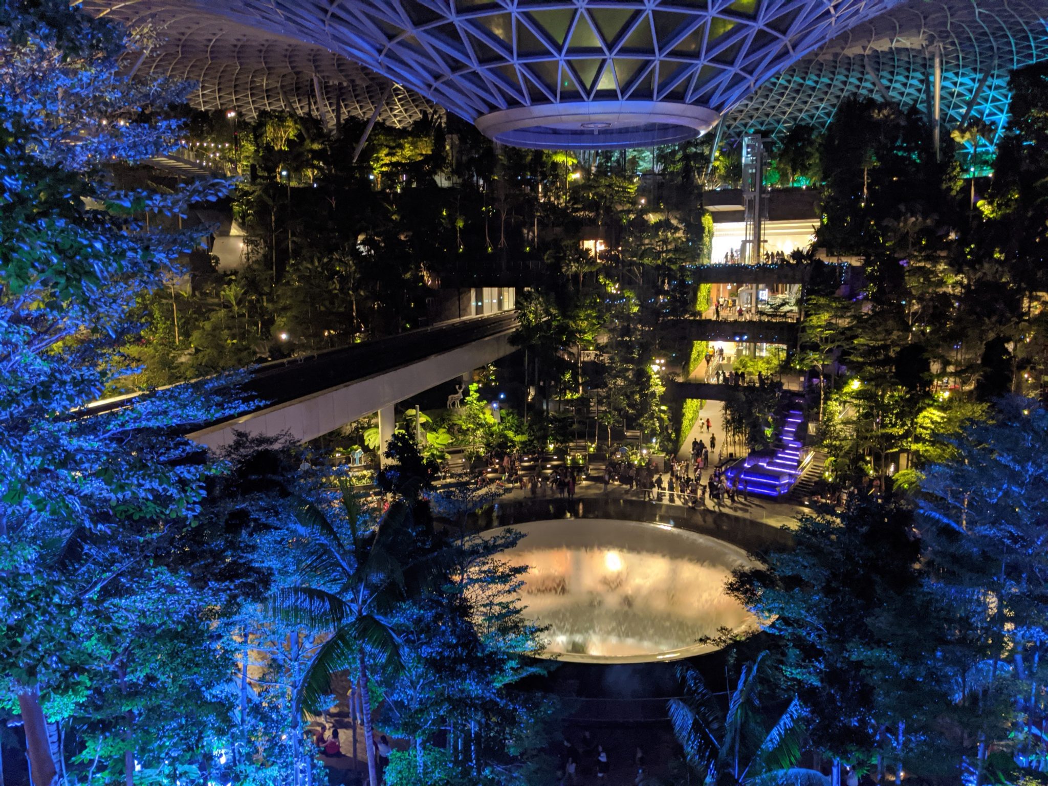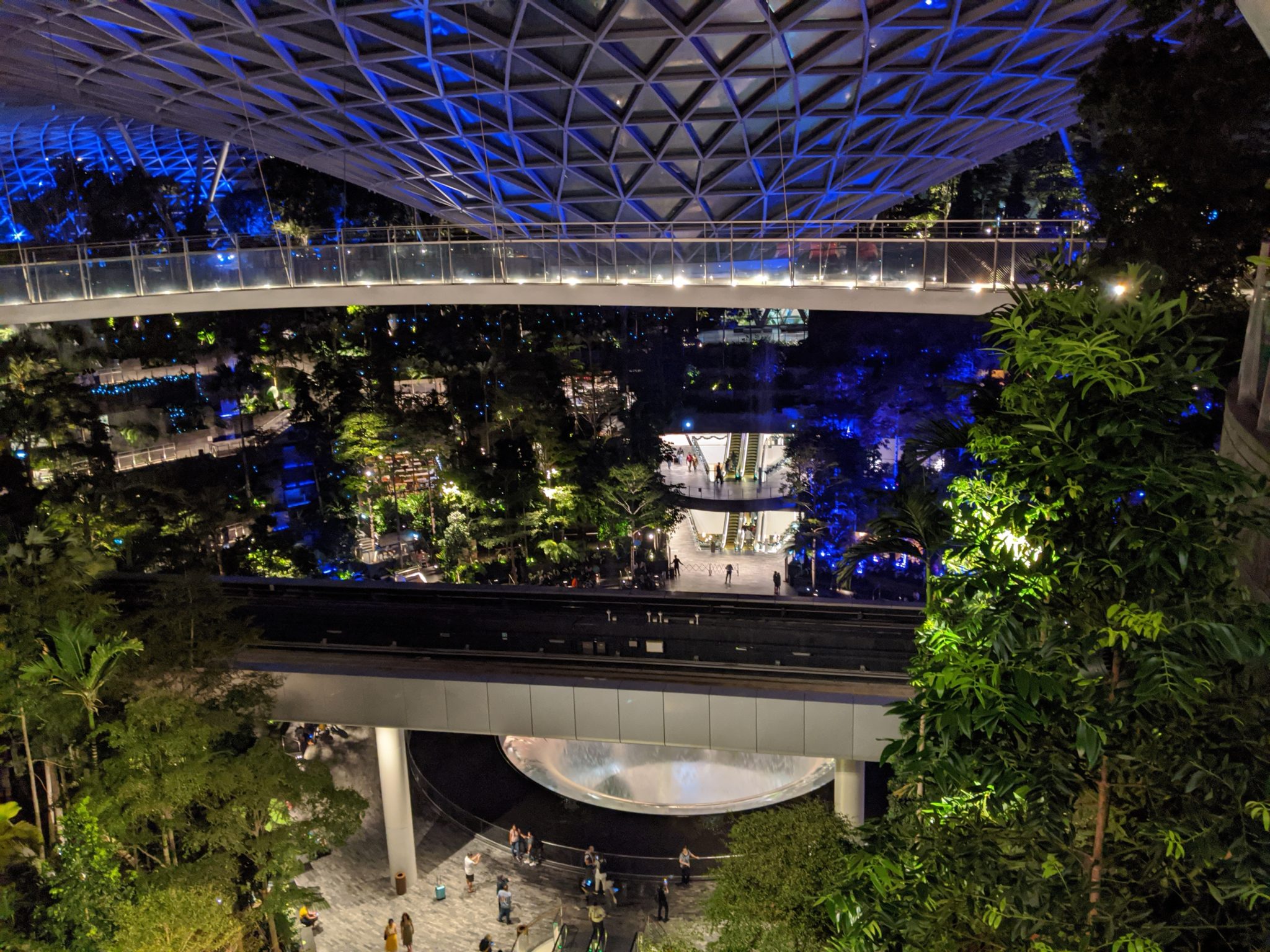 I have another overnight layover in Changi Airport. However unlike the first time, I need to exit security and eventually make my way to the new Terminal 4 building. (Which is separate from the main airport). Fortunately, this means I also get to visit the “Jewel” which is this large entertainment / shopping complex attached to the airport. In my research I have read its a worthwhile visit on layovers and even for many locals. So my intention is to explore it and see what’s up! Unfortunately, I still don’t have “too much” time since my flight arrived later in the evening. So, I quickly hustle over and spend an hour or two walking around the area.
