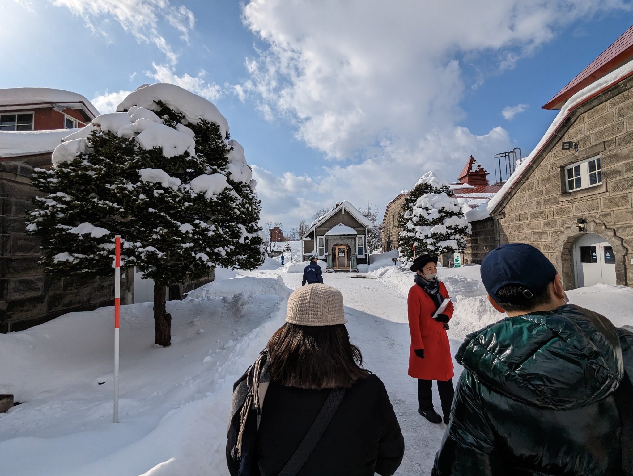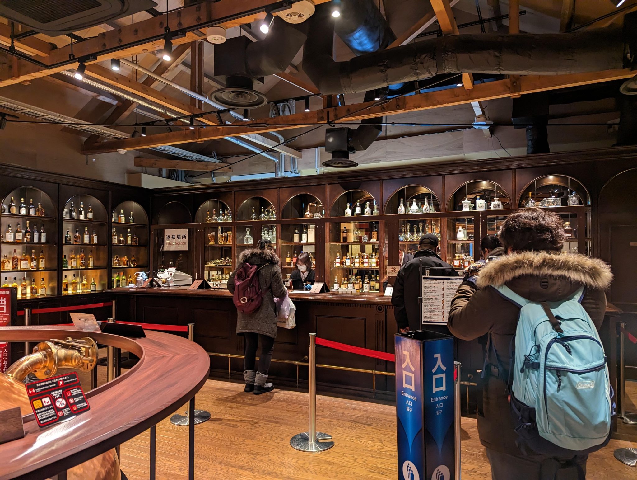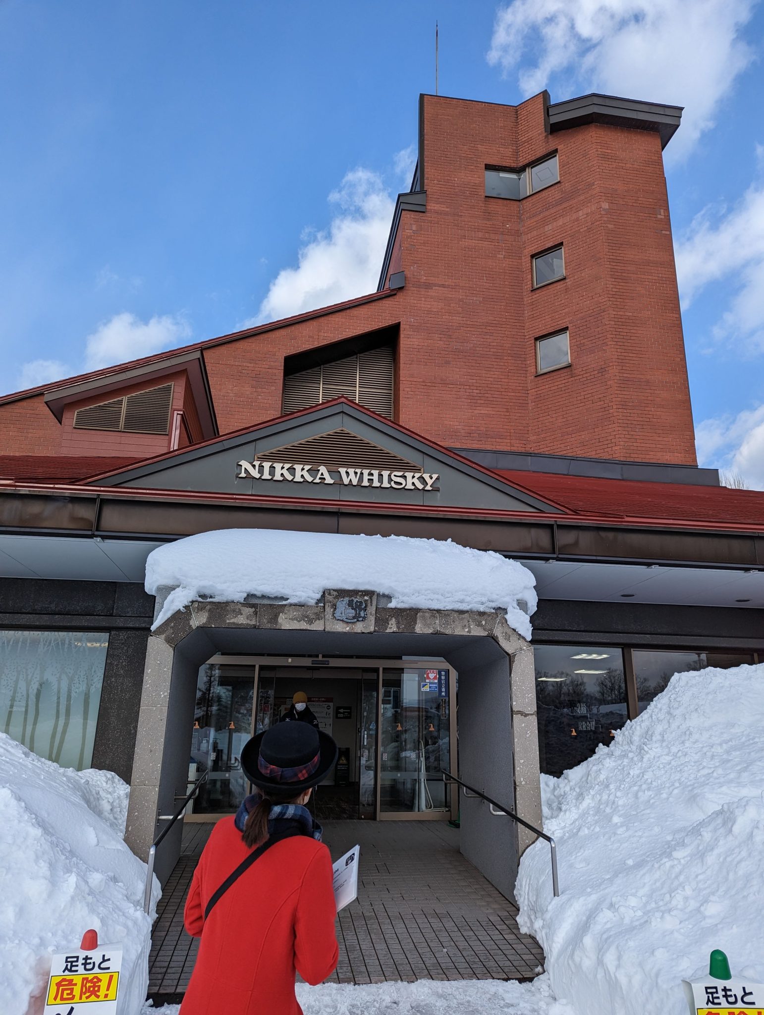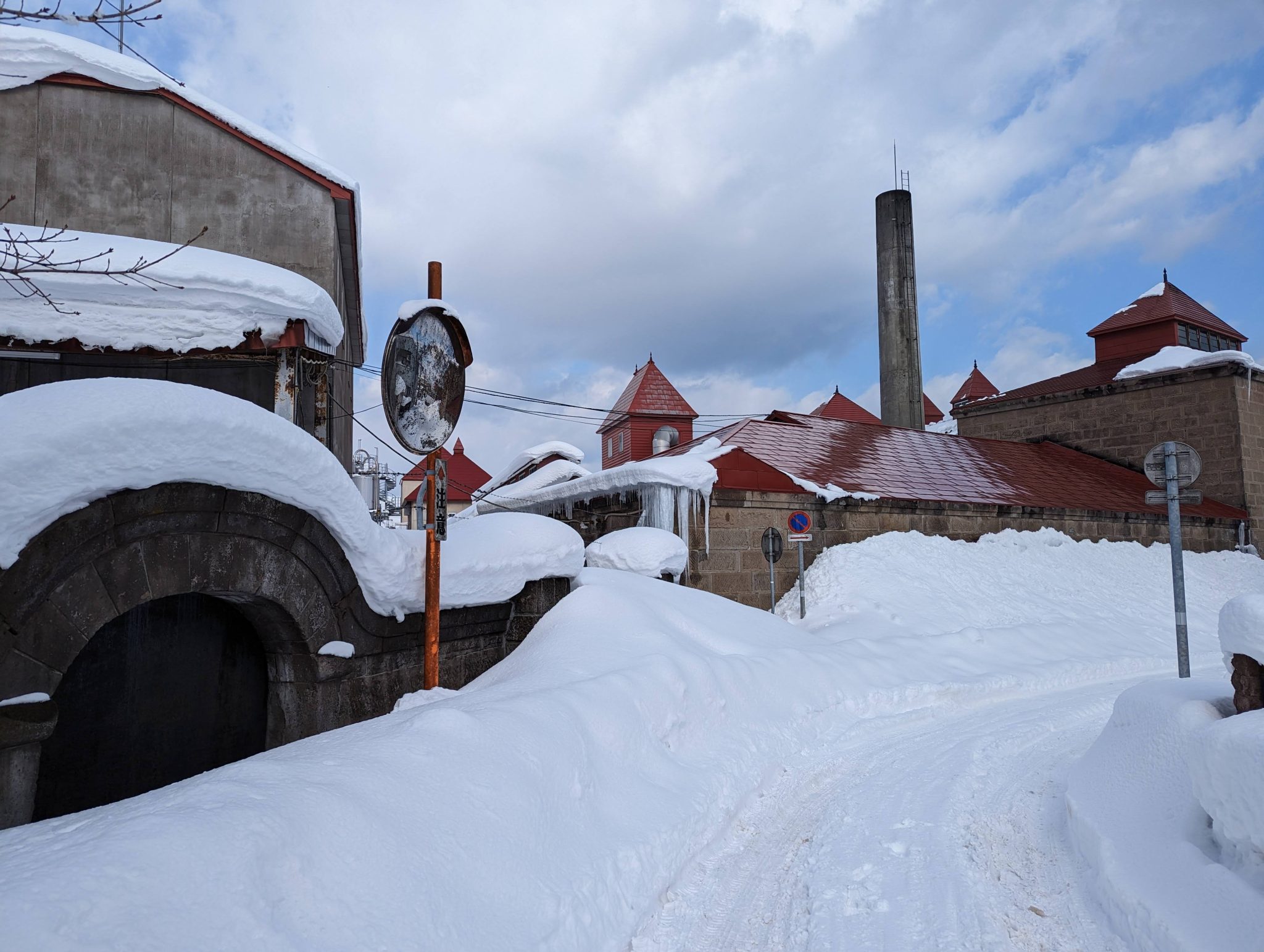 Unfortunately, self guided tours within the Nikka Distillery are not allowed due to COVID. However, there is a Japanese guided tour. So, with the aim of exploring the distillery grounds, I had called in the day before to reserve a spot. Even though language would be an issue, the opportunity to visit these “hallowed” grounds is too good to miss! I arrive at the main gate in time to check in and am led through their snowy courtyard to their welcome center. Here, I am thankful to find that there is a downloadable app that will provide English audio supplements as we walk the grounds. They play a short video that goes through the history of the Nikka Yoichi Distillery. We then walk over a few buildings to their active whisky stills being attended by staff. They go through the Whisky making process and then we move onto some traditional storage locations.