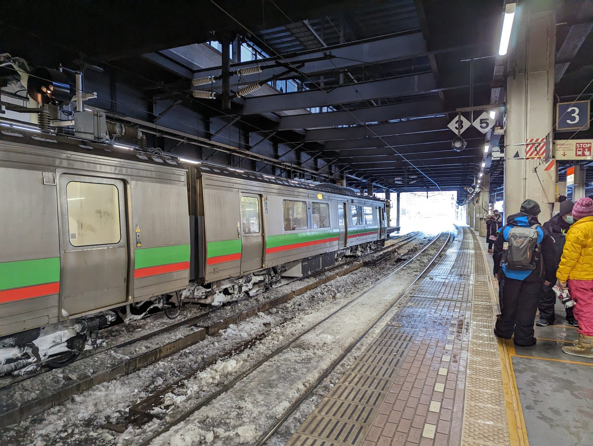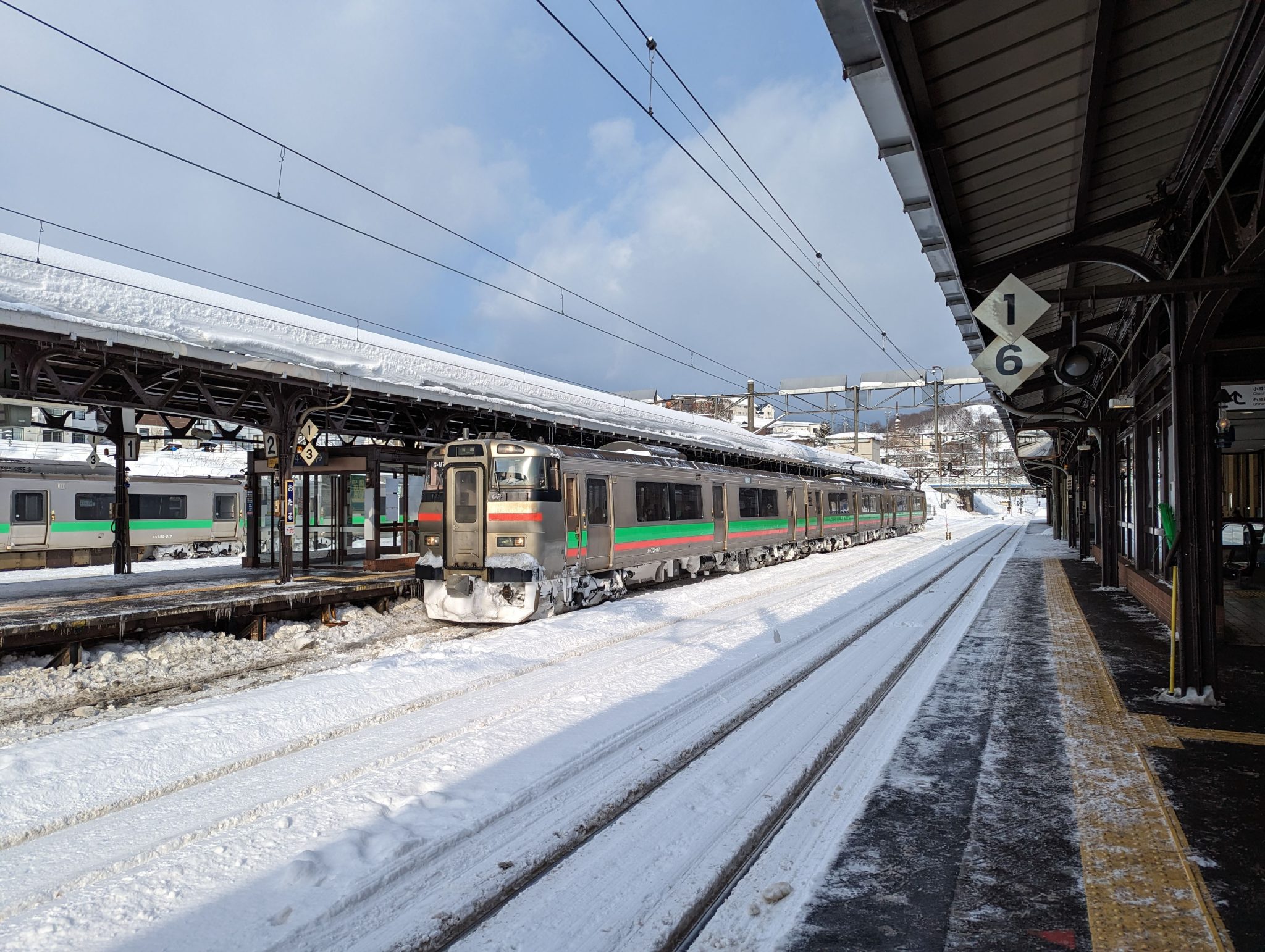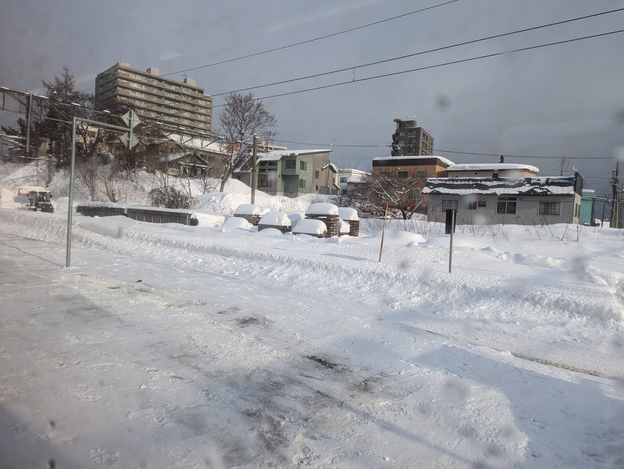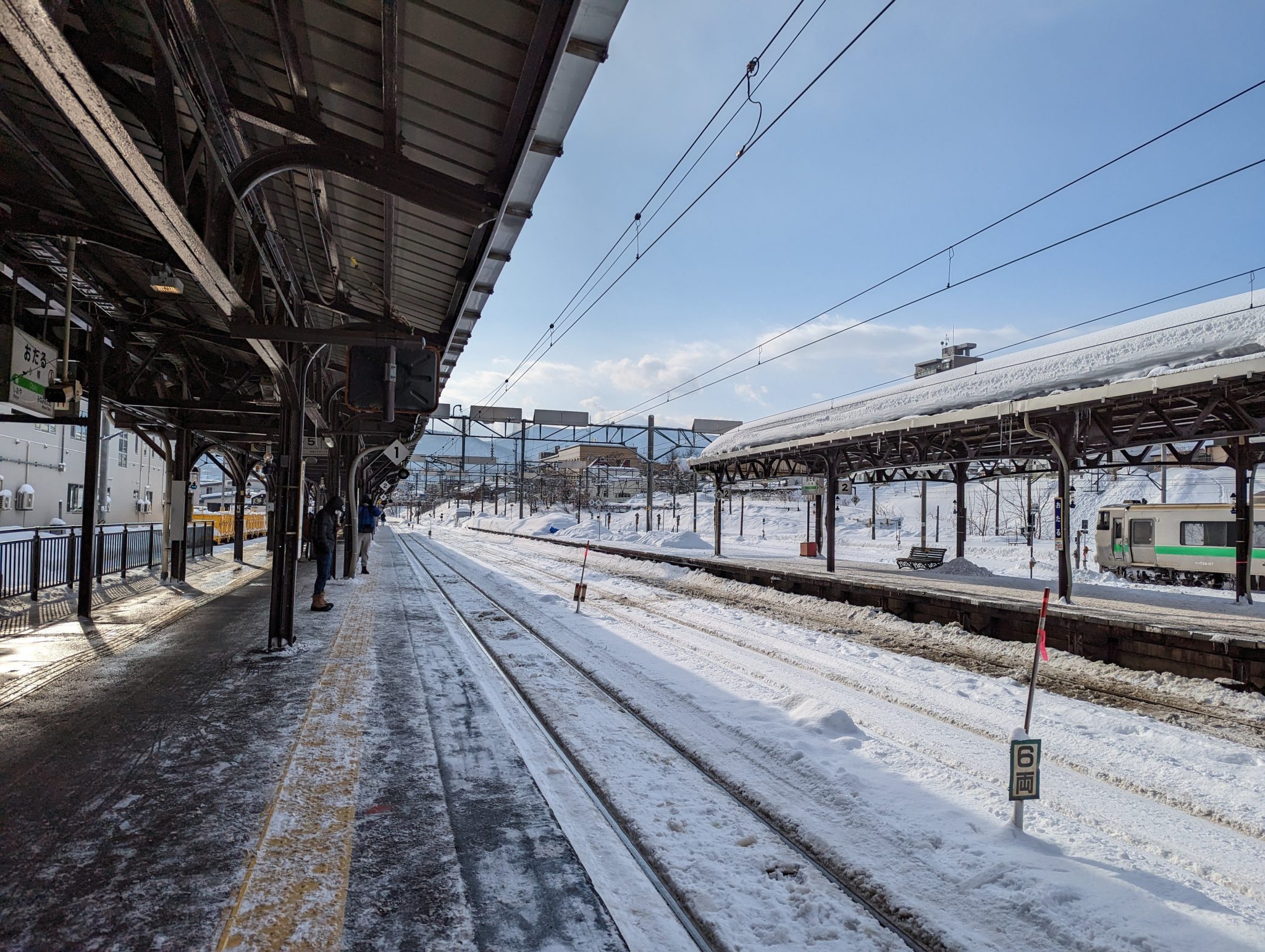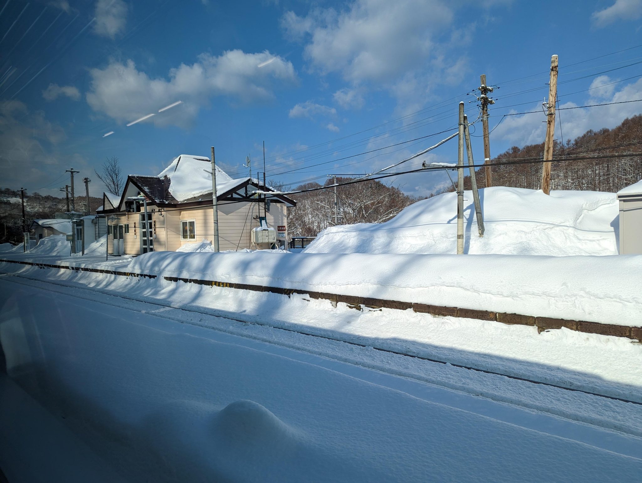 So bright and early, I make my way over to Sapporo Station to catch one of the early trains to Otaru. The train ride itself is smooth. What I didn’t expect is how scenic the trip is. As you can see from the map above, a good chunk of the ride is along the water. Add the snowy backdrop and you have the makings of a beautiful coastal winter train ride! After a short while we arrive in Otaru. I wait about half an hour for the train to Yoichi and we are off again! After more beautiful snowy landscapes we finally arrive in the small town of Yoichi!