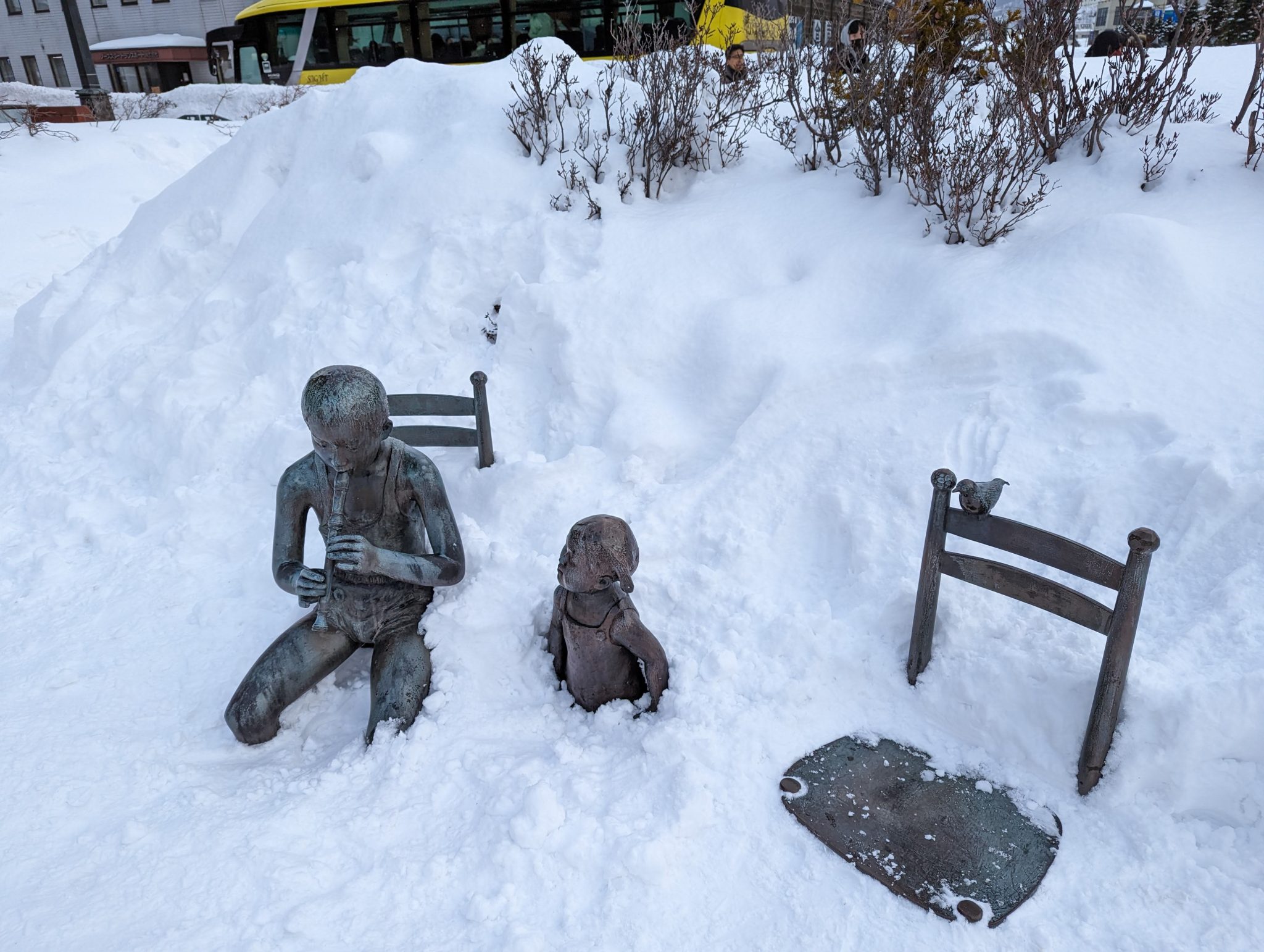 The one other spot I wanted to check out before leaving Otaru is the Canal. This is a beautifully restored area lined with shops and restaurants, or at least that’s what I imagine when its not covered in snow! However, I think the snow presents a different (and dare I say) and more beautiful scene. Early in my planning process I was excited to visit the Canal. I had learned of the Otaru Snow Light Path Festival and wanted to visit both the Sapporo snow festival along with this one. Normally the two run at the same time so visitors of one can see the other. However, I was quite bummed to find that in 2023, the Snow Light Path Festival occurs a week after the Sapporo Snow festival. This means my dates didn’t work. Moving on from that disappointment I still wanted to visit and so here I am. Seeing the canal only reinforces that I want to return again in the winter to see this festival. I can only imagine what it must look like with the snow and lanterns that light the canal. It’s surely a magical sight and on my list to come back to!